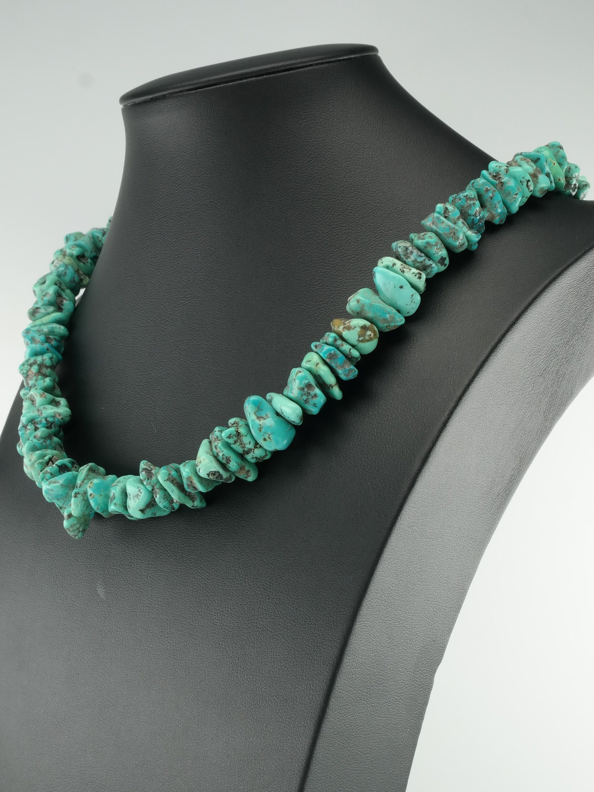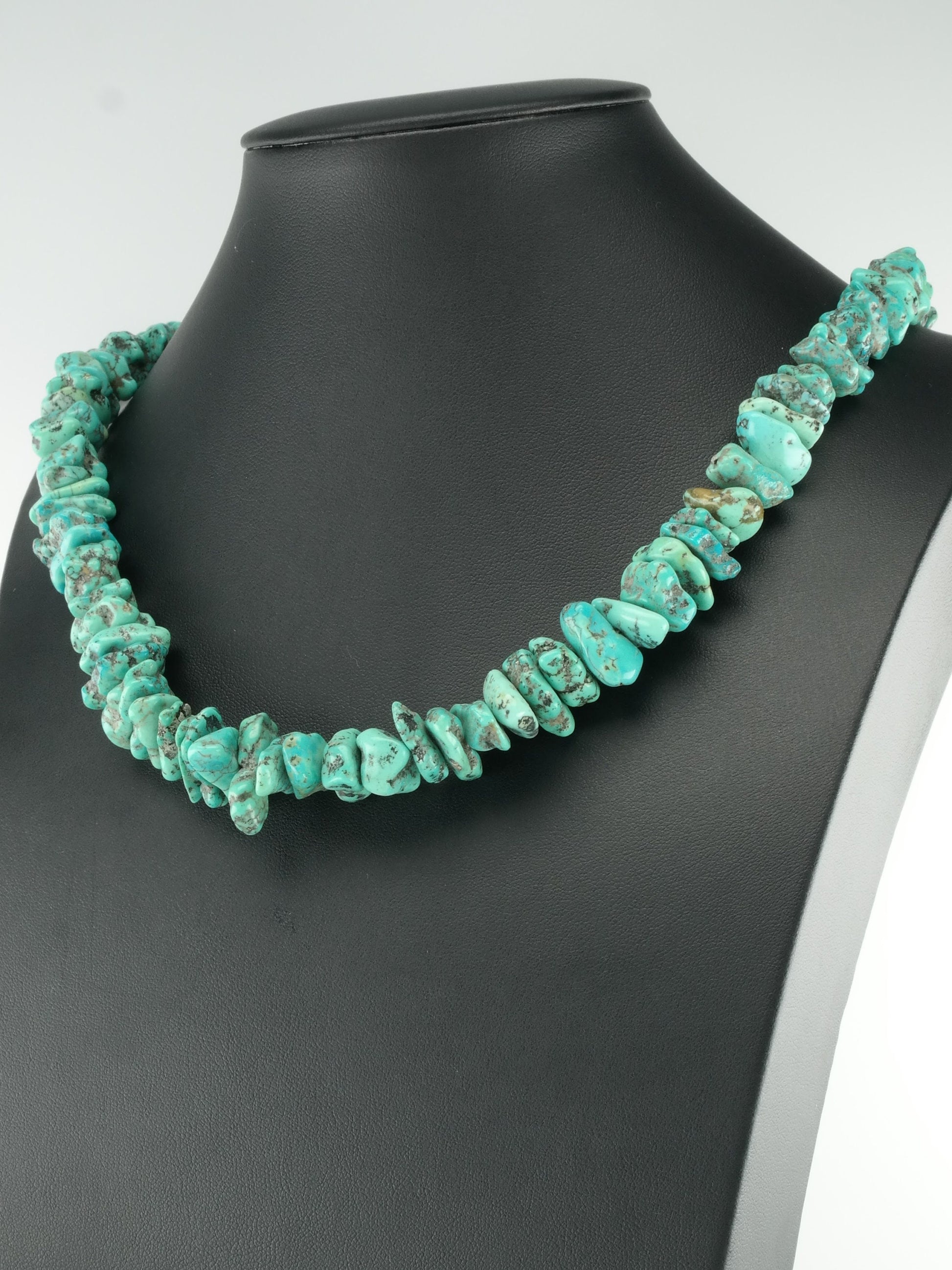 The necklace has Turquoise graduate in size 7-21 mm