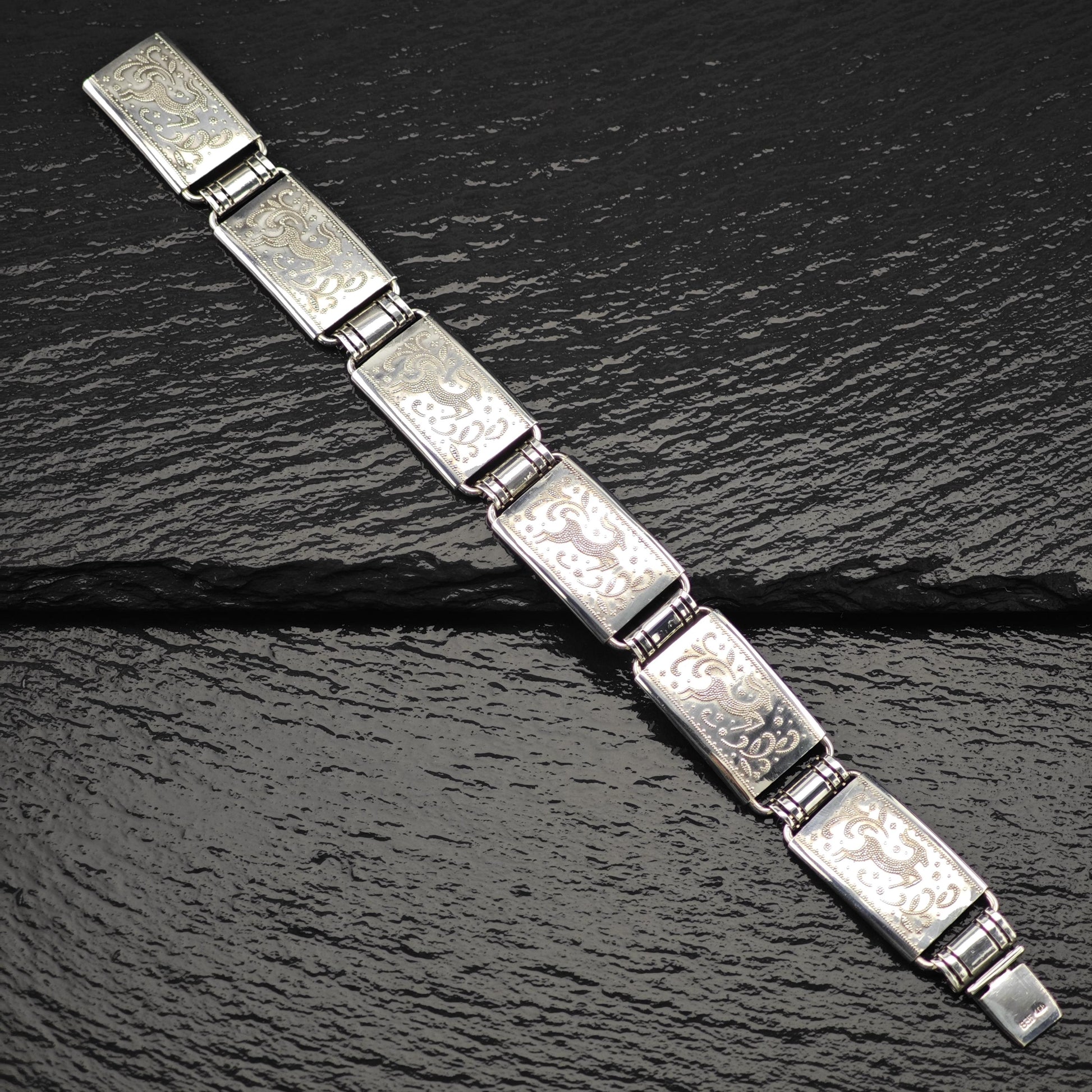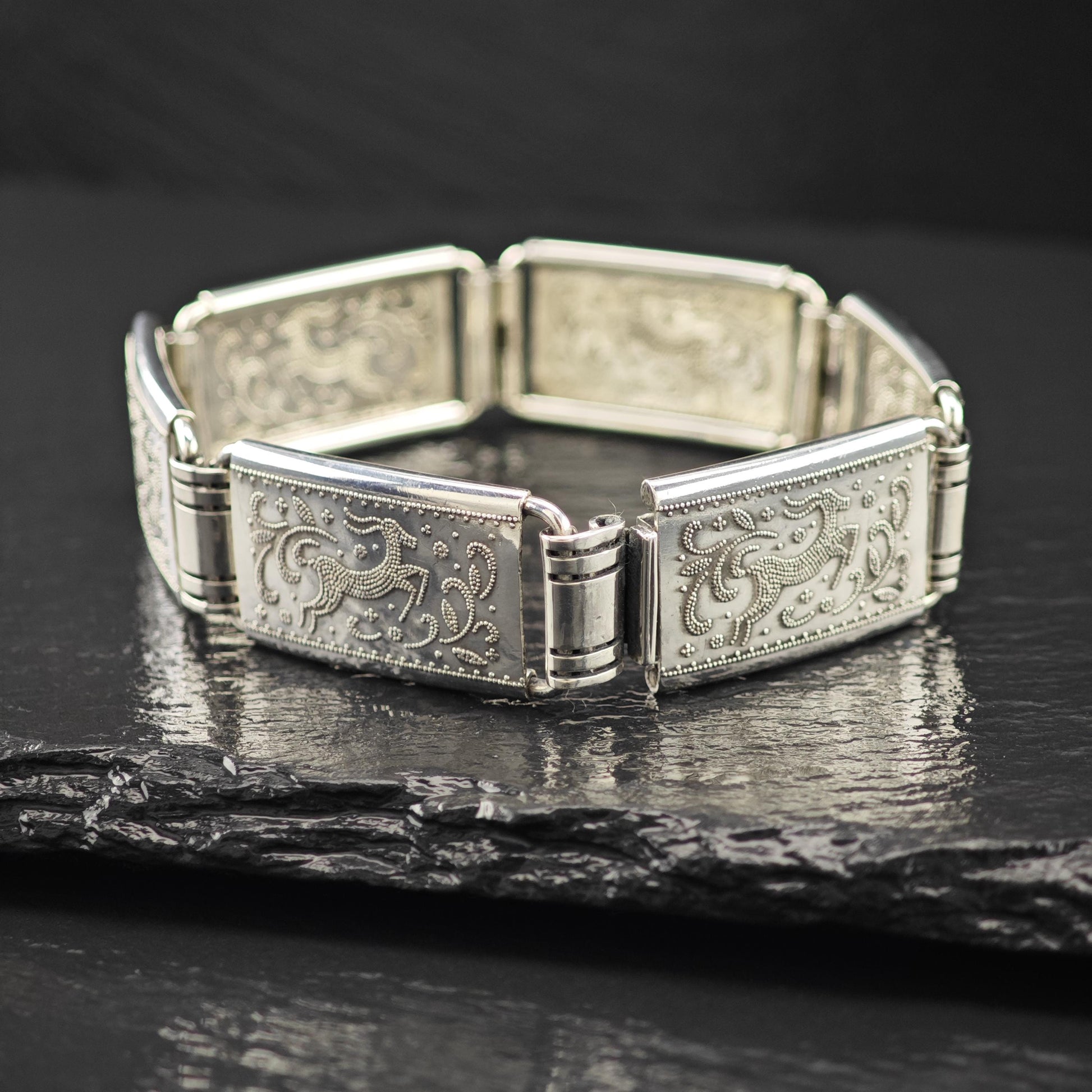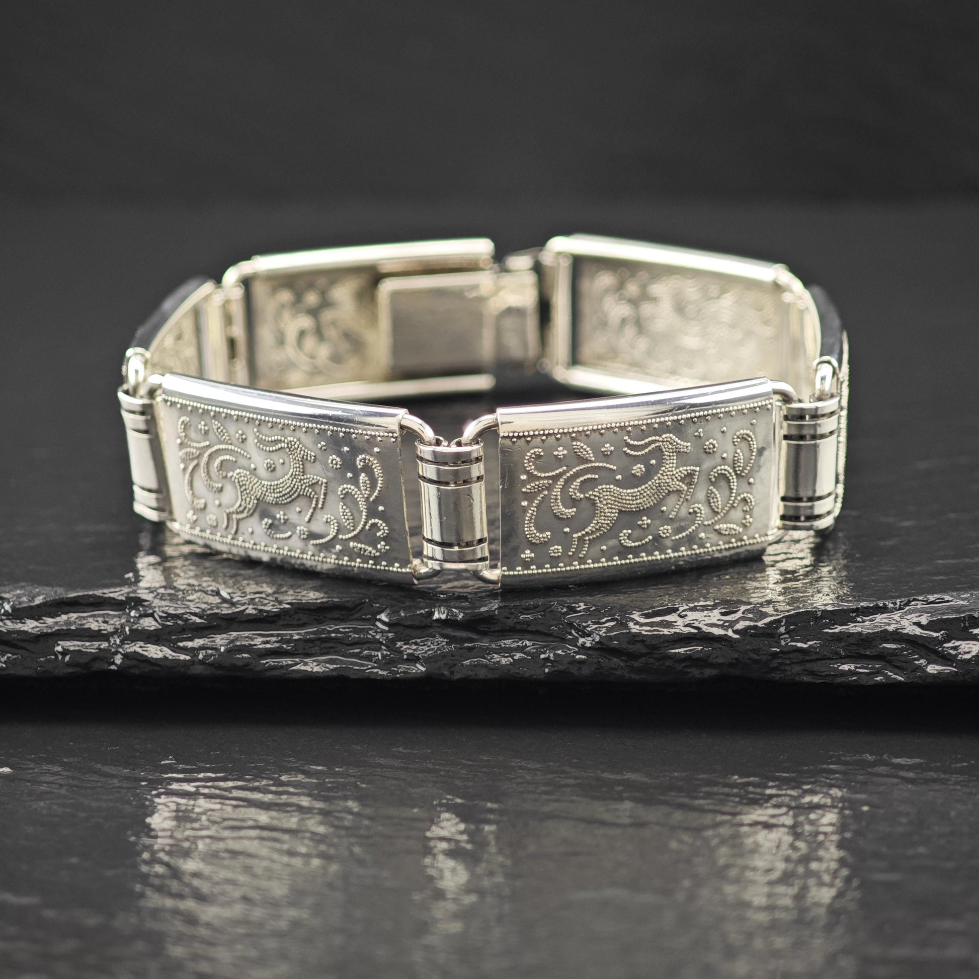 Discover the timeless charm of this vintage jewelry piece, a beautifully crafted 835 European silver gazel link bracelet that makes an exquisite addition to any collection. This sterling bracelet offers a unique blend of classic design and subtle elegance, perfect as a holiday gift or a special treat for yourself. Each link reflects the artistry and quality synonymous with silver bracelets cherished through generations.