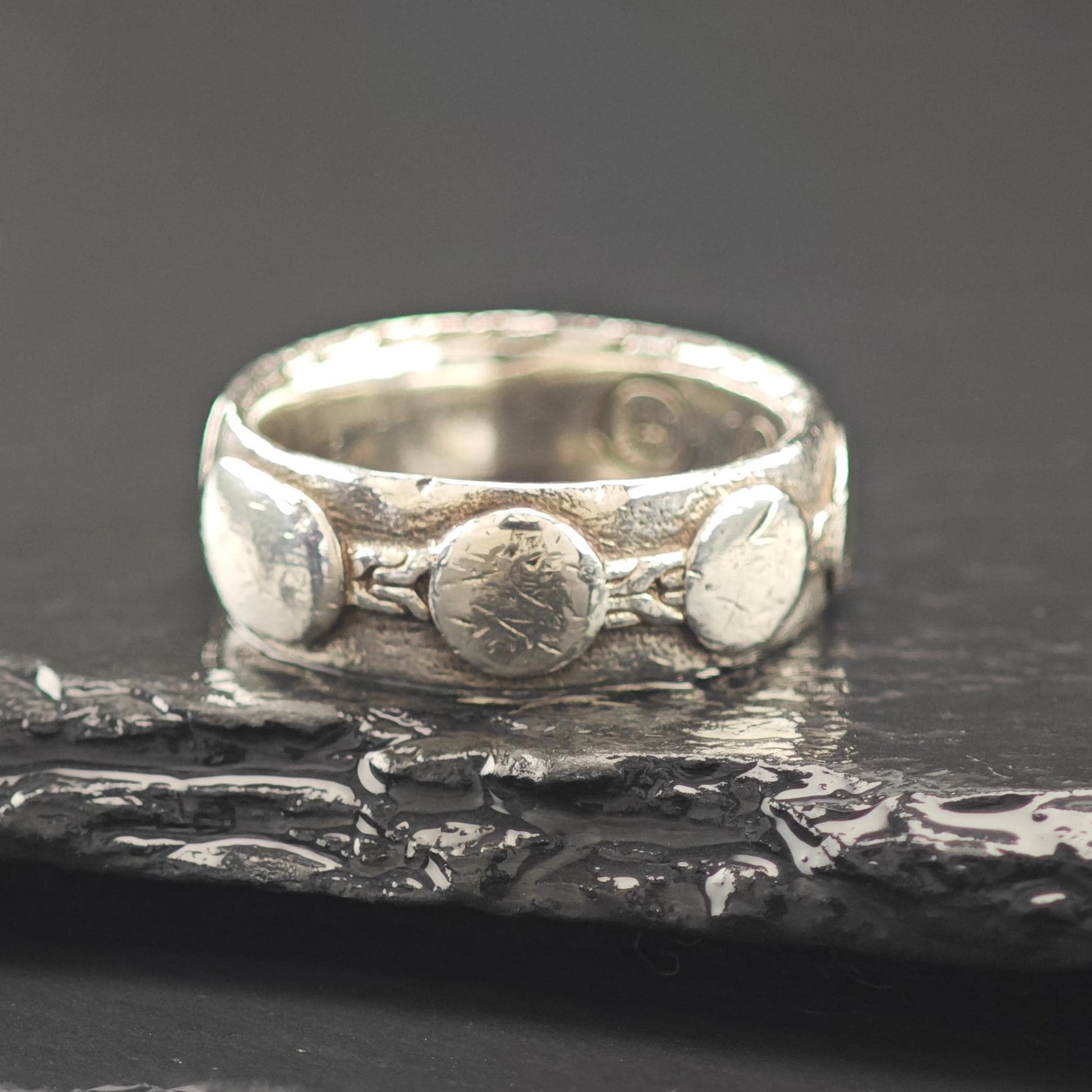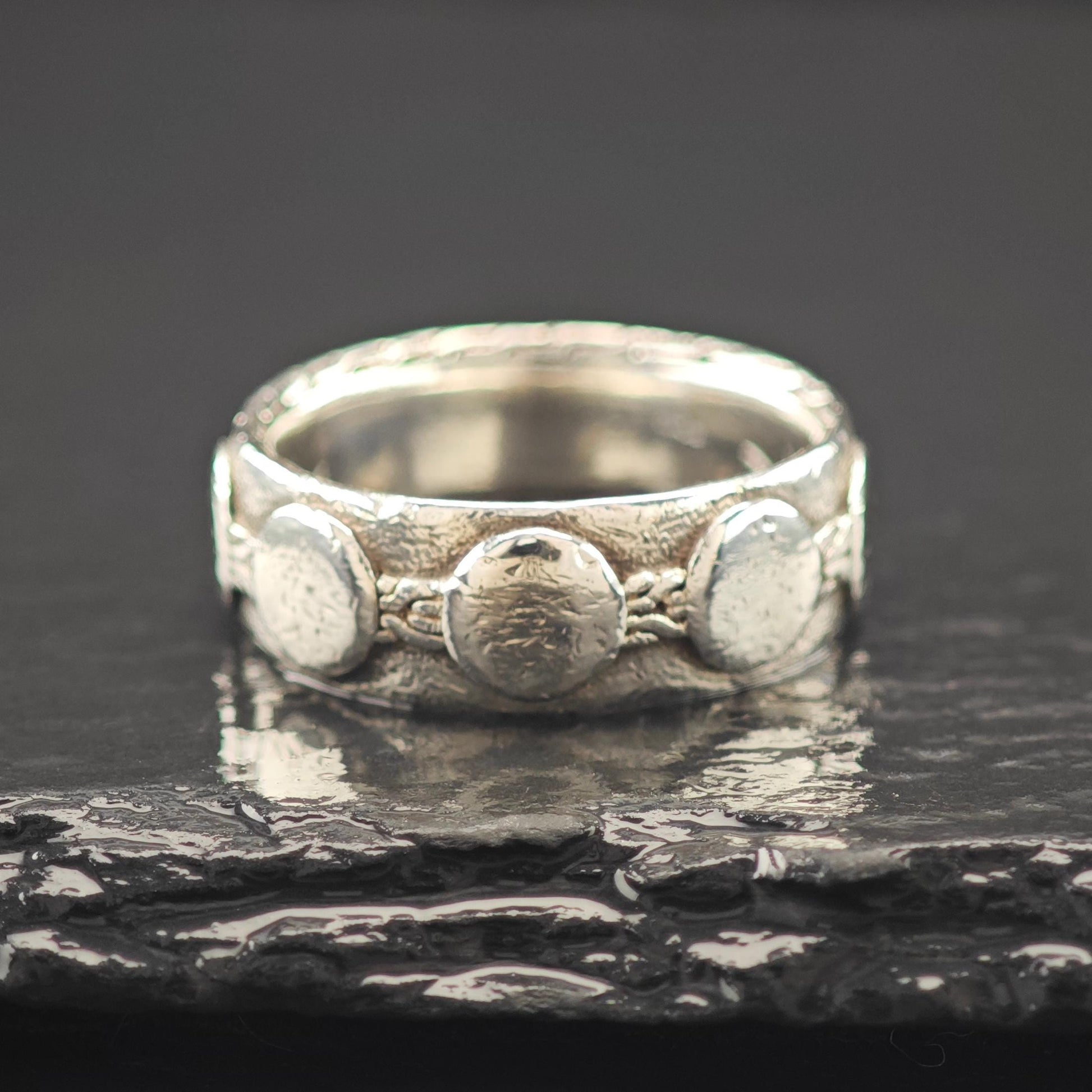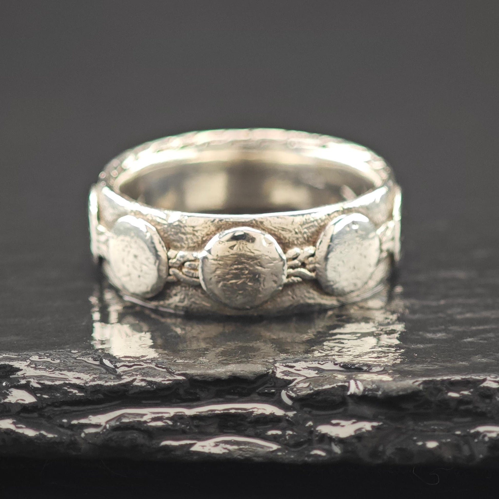 With a ring size of 10, please note that this piece is not resizable. Weighing in at 10.9 grams, it offers a substantial feel while remaining comfortable for everyday wear.