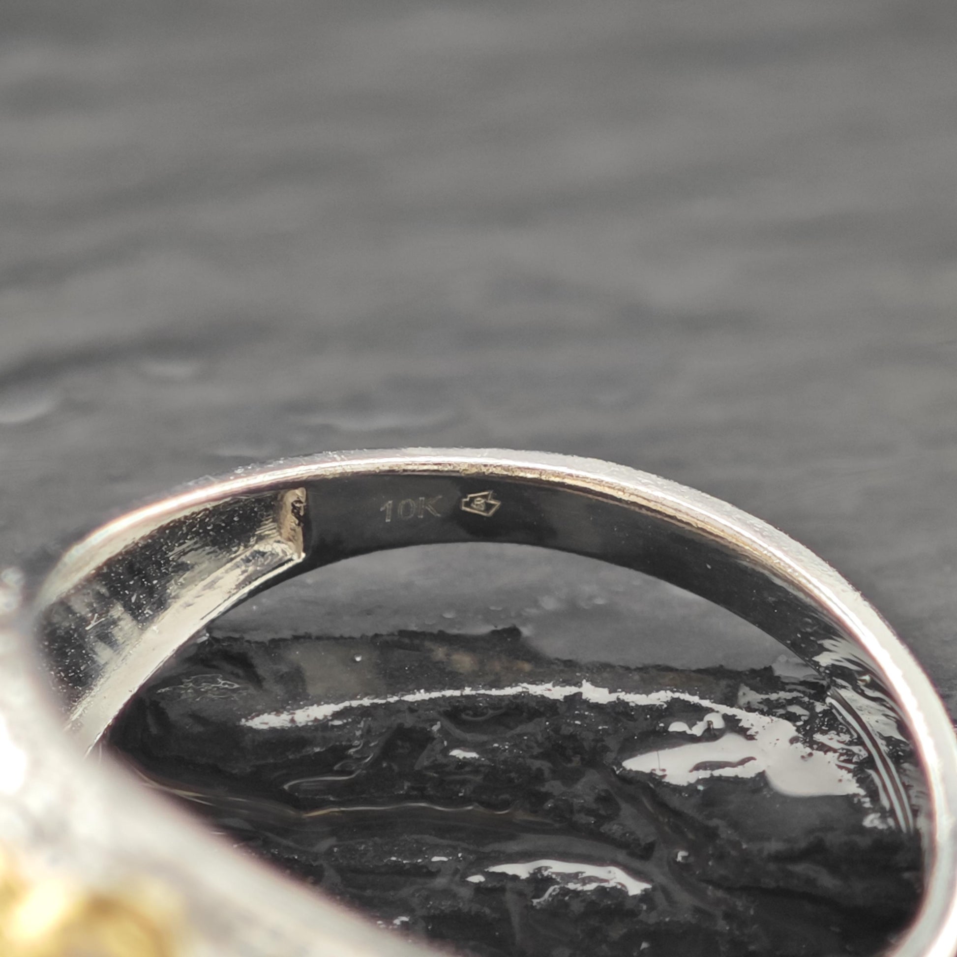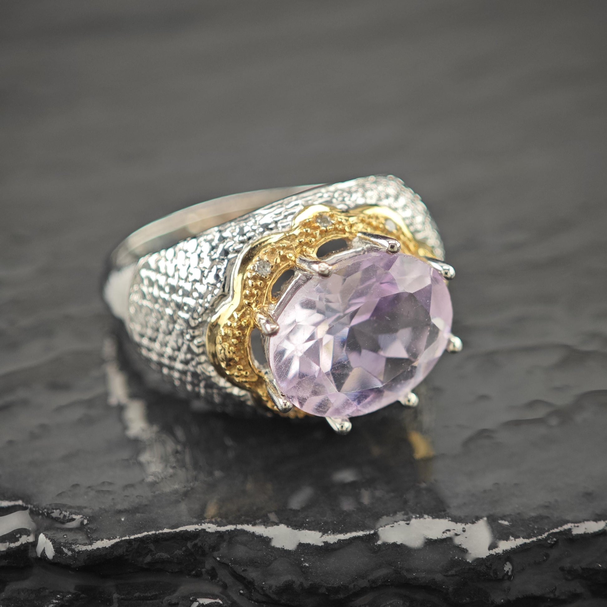 Amethyst 10K Gold Ring, Diamond Chips Two Tone Size 8 1/4