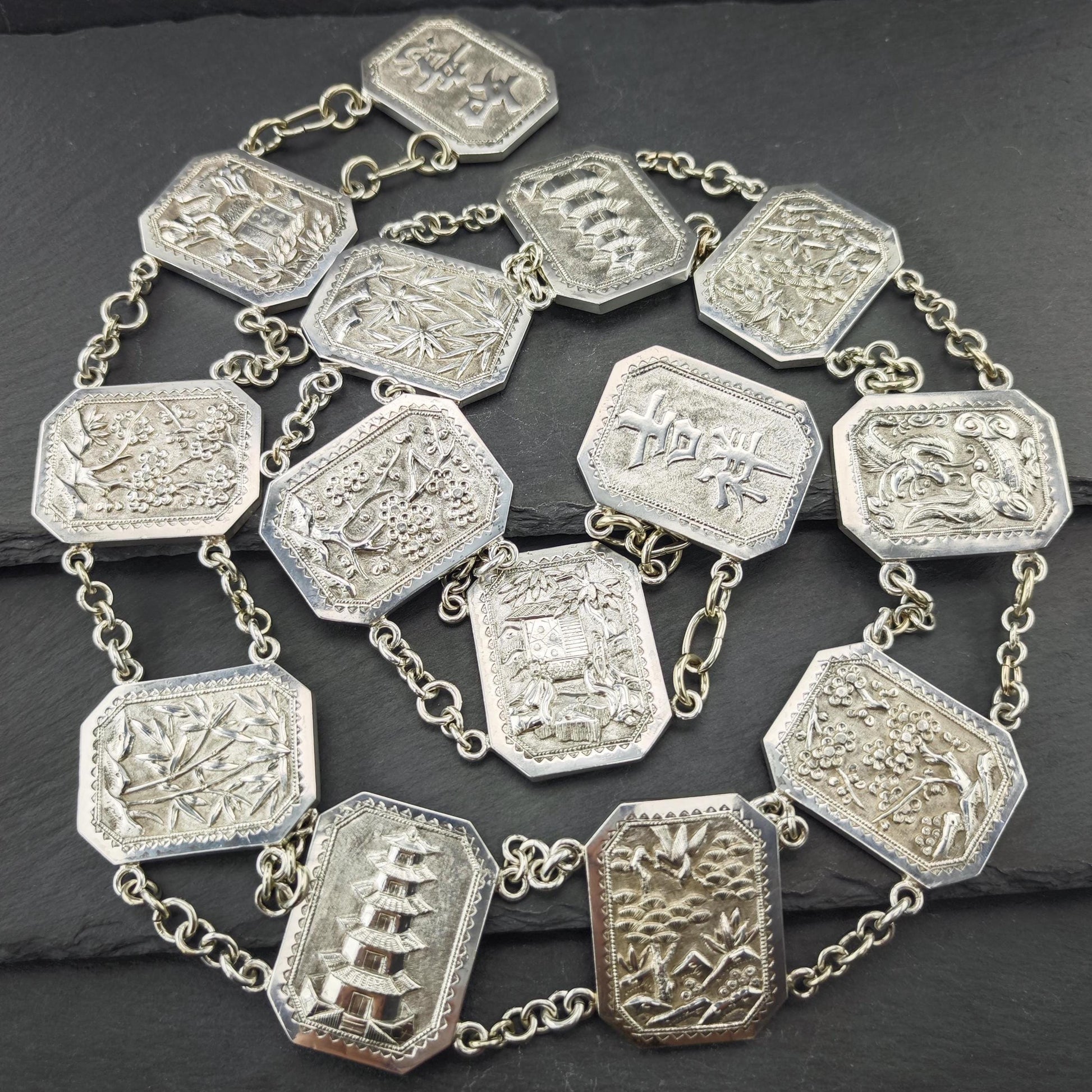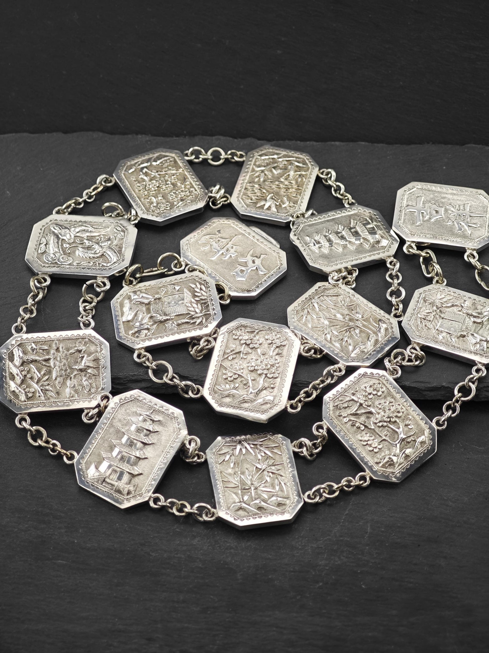 Antique Chinese Export Repousse Sterling Silver Belt Marked Hung Chong
