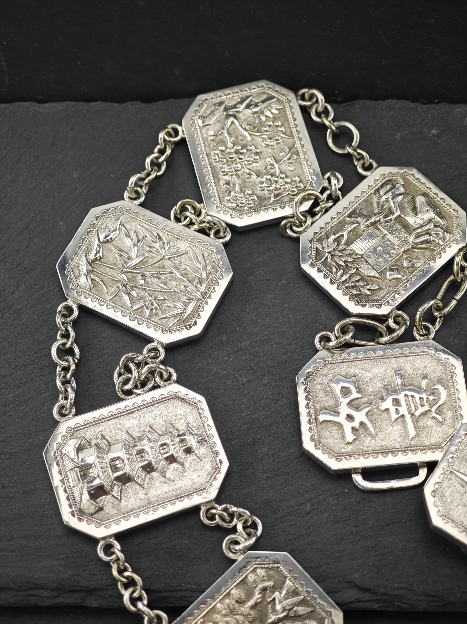 This Antique Chinese Export Repousse Sterling Silver Belt Marked Hung Chong