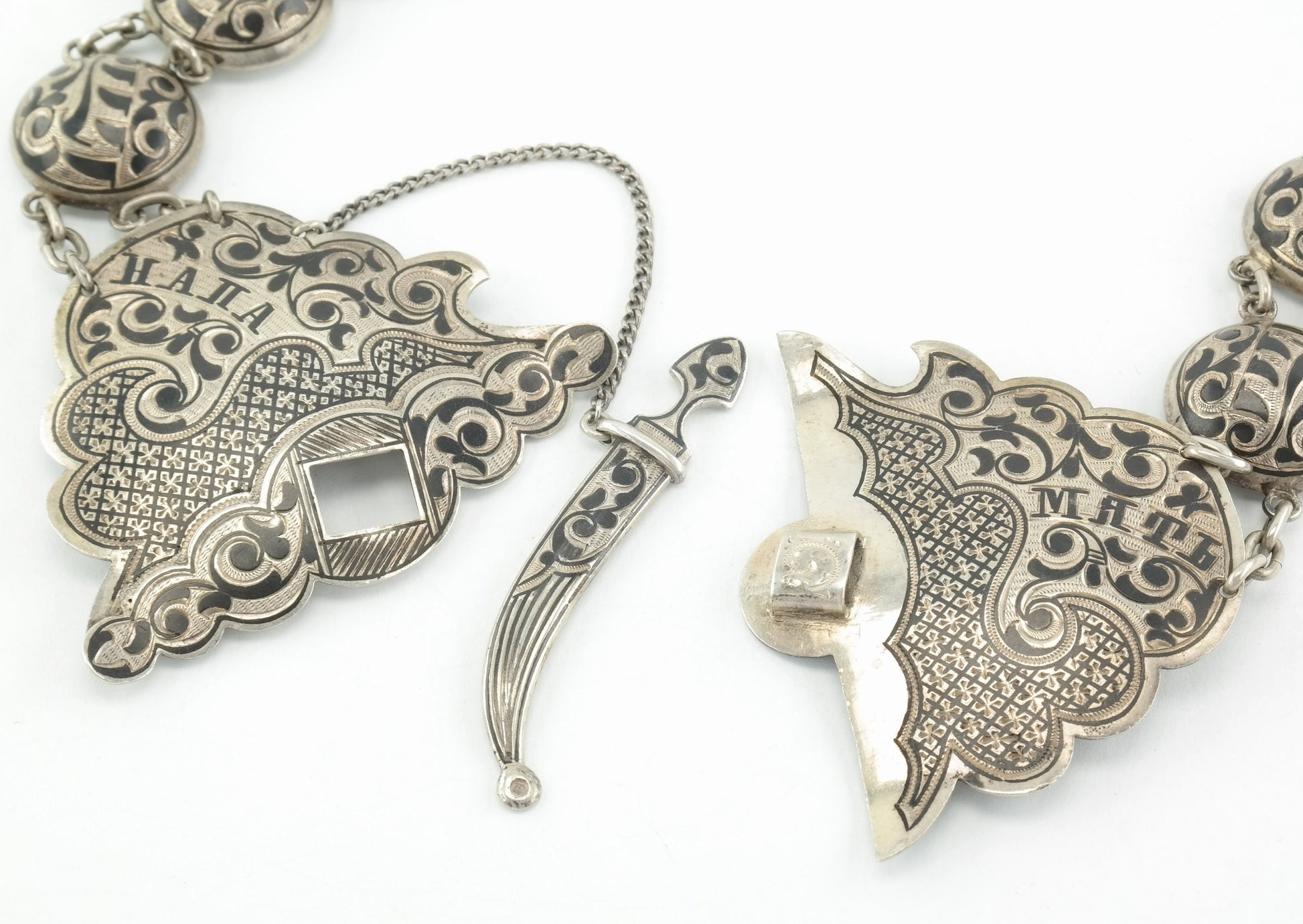 Antique Sterling Silver Sword, Imperial Russian, Niello Belt