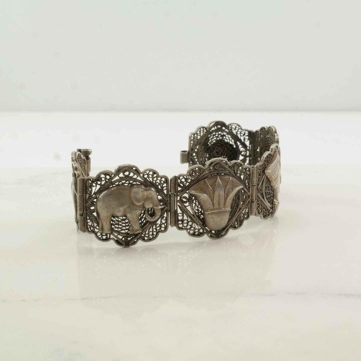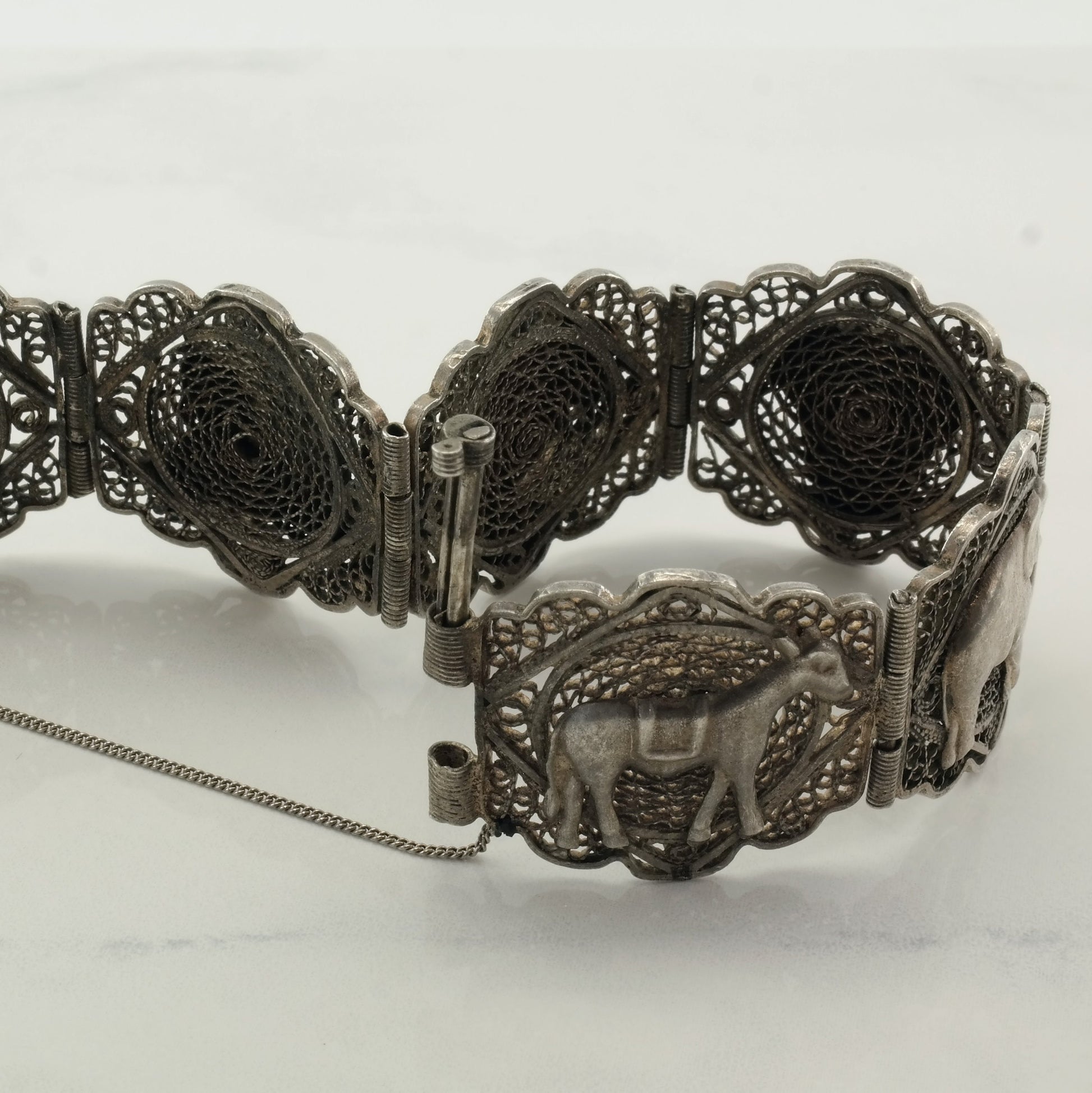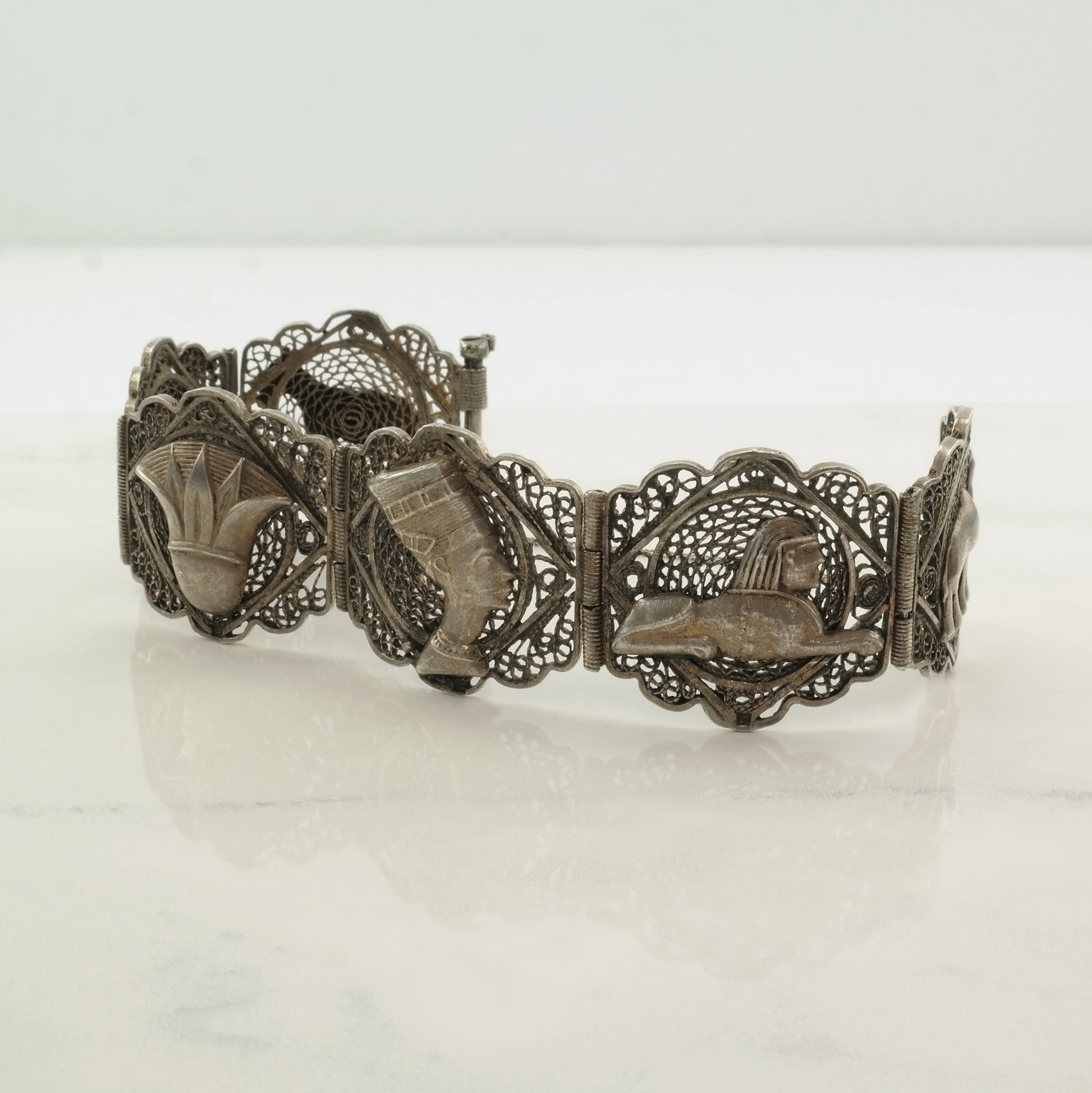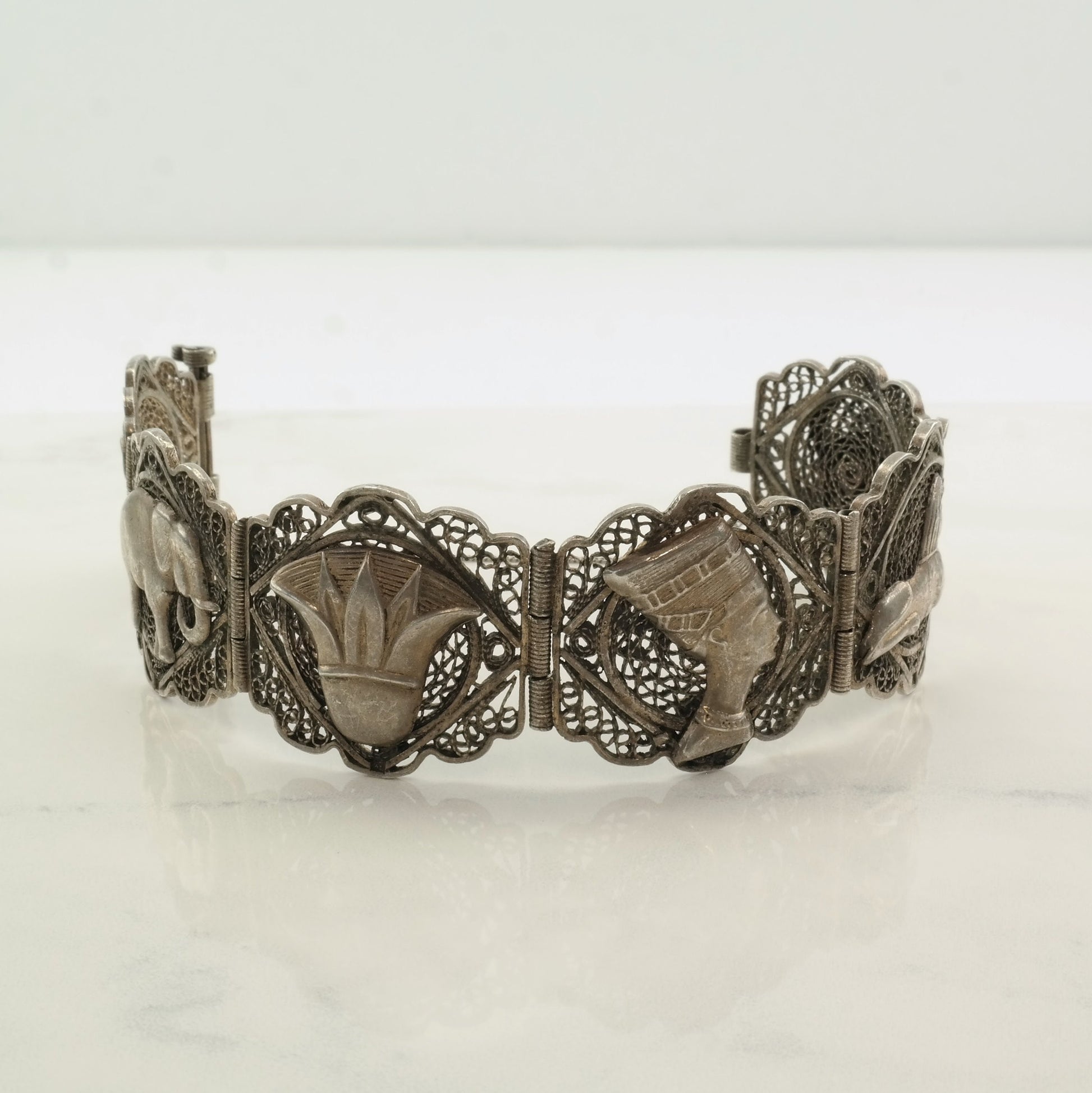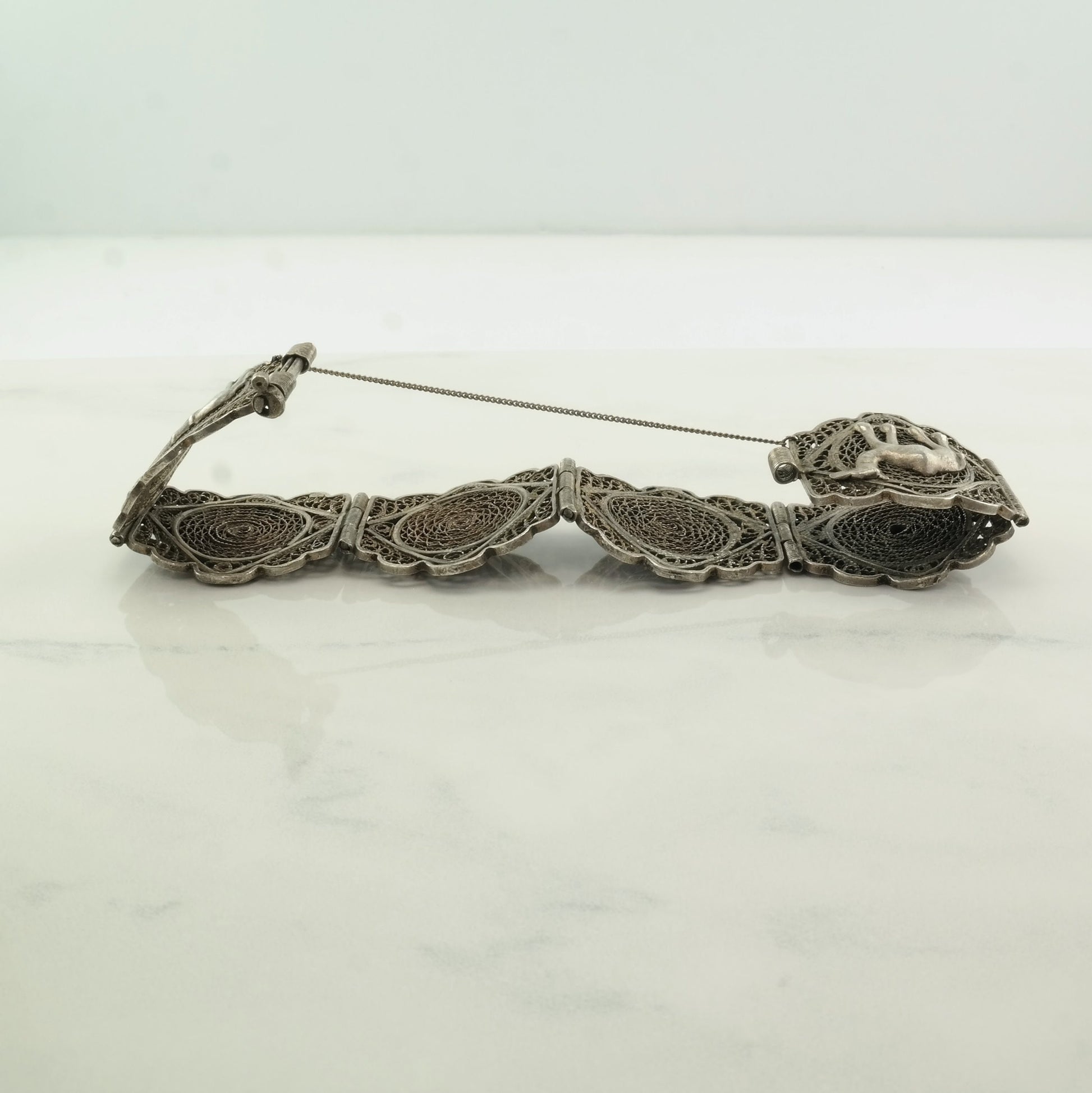 Archeological Revival Sterling Silver Link Filigree Bracelet