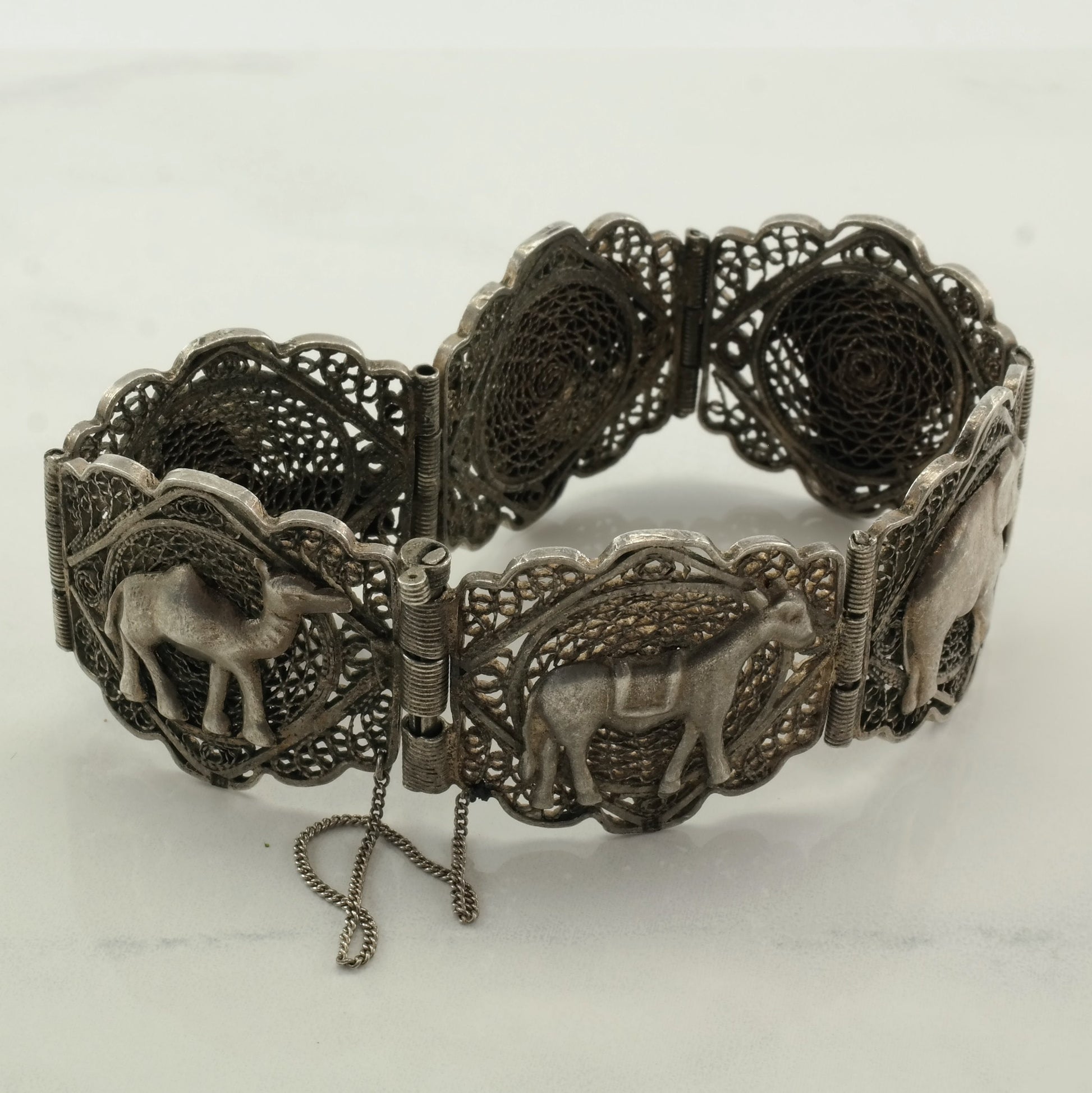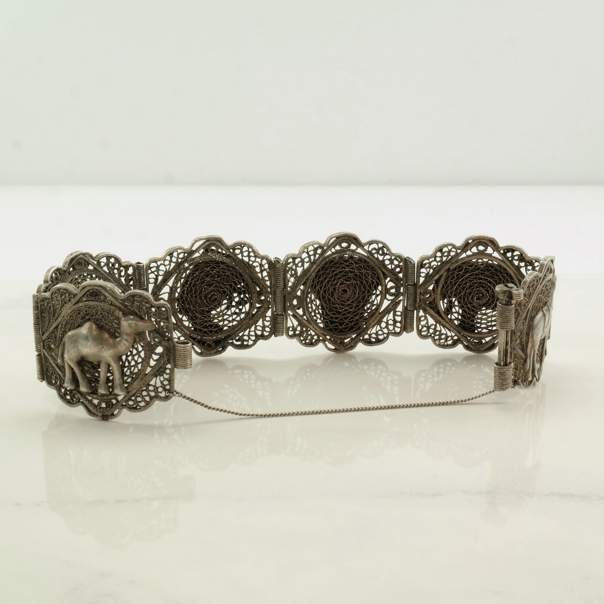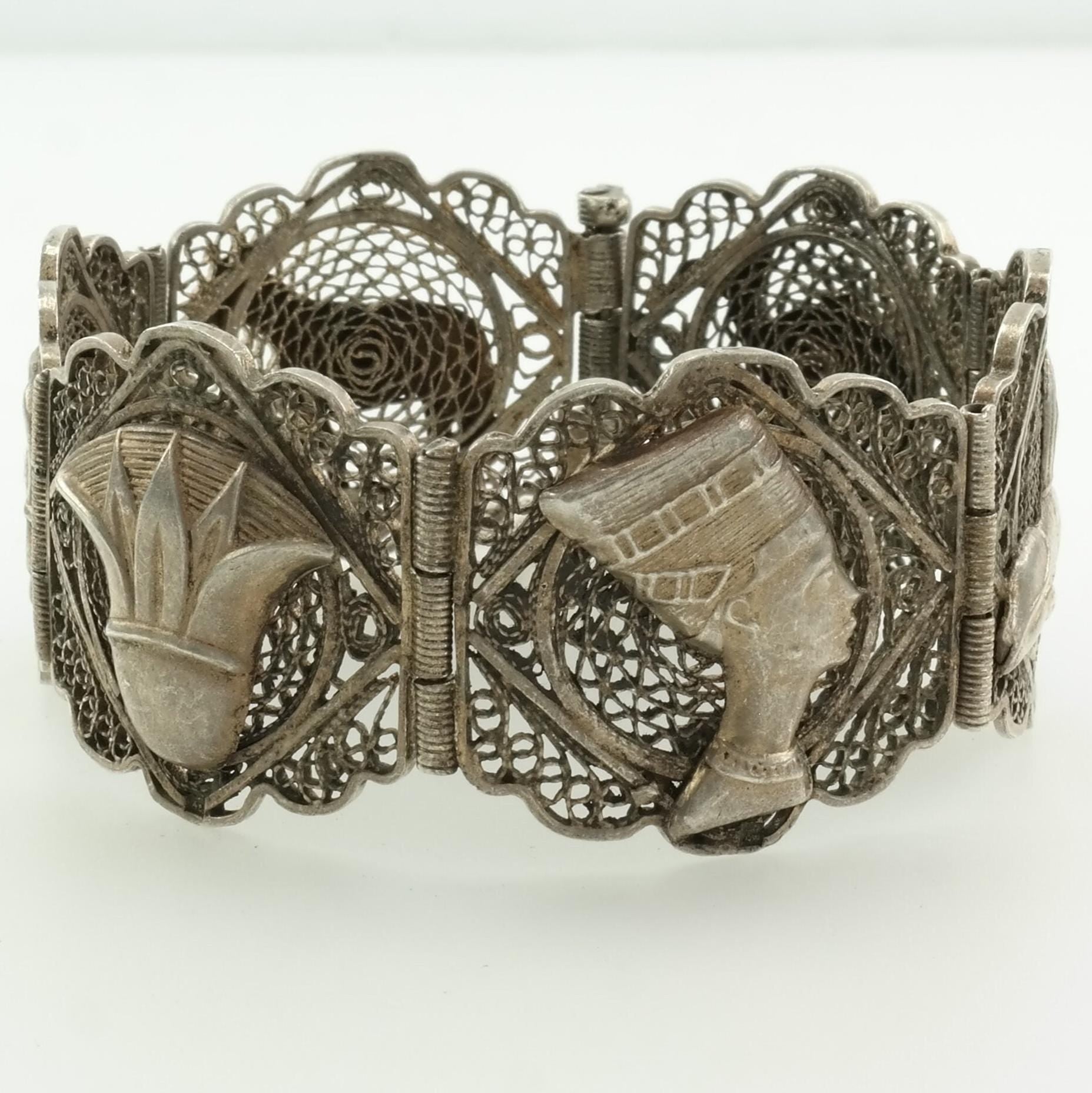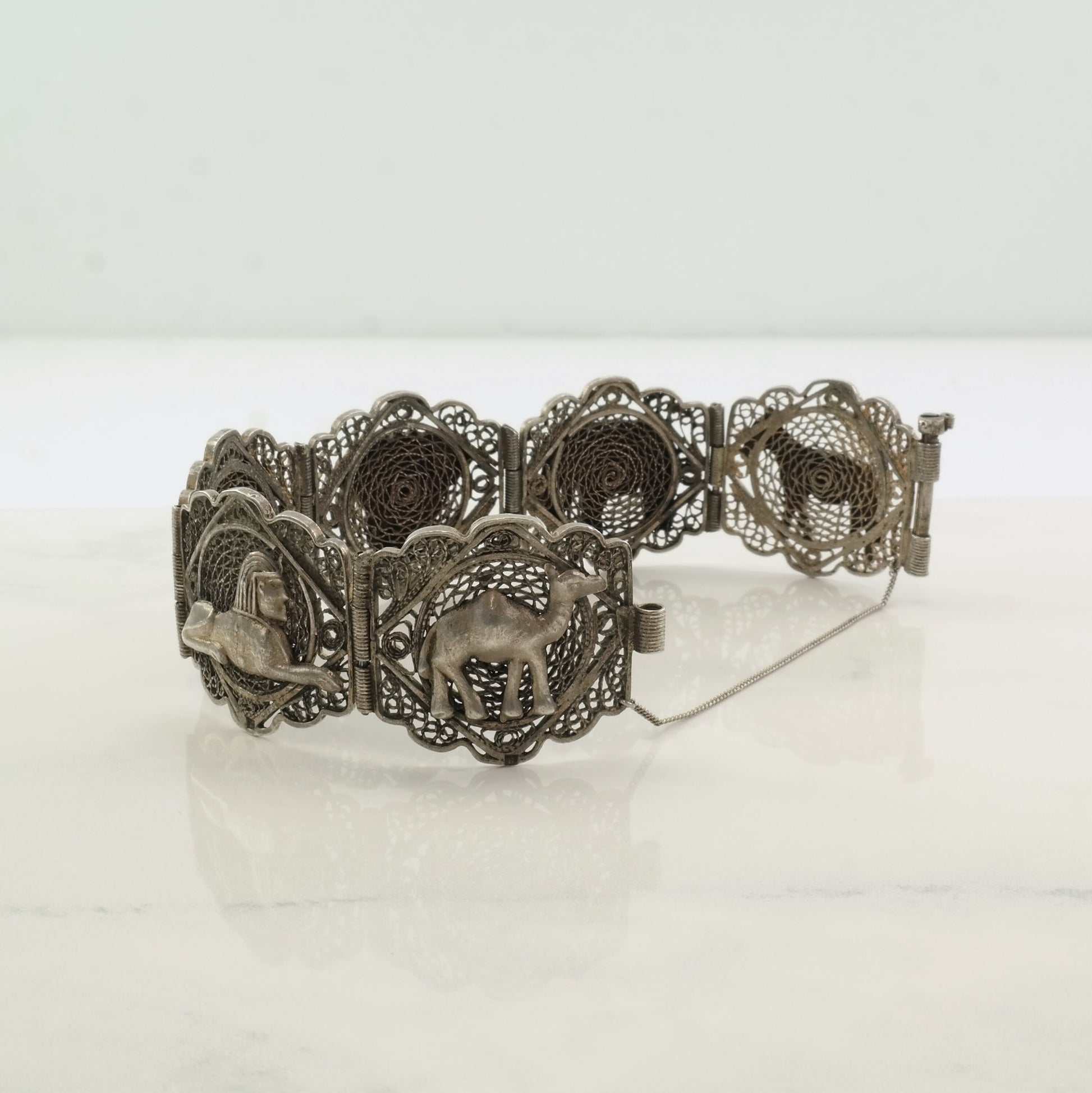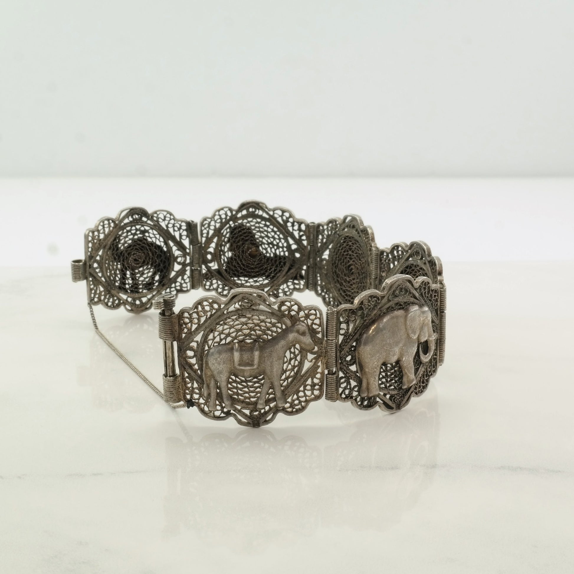 Archeological Revival Sterling Silver Link Filigree Bracelet