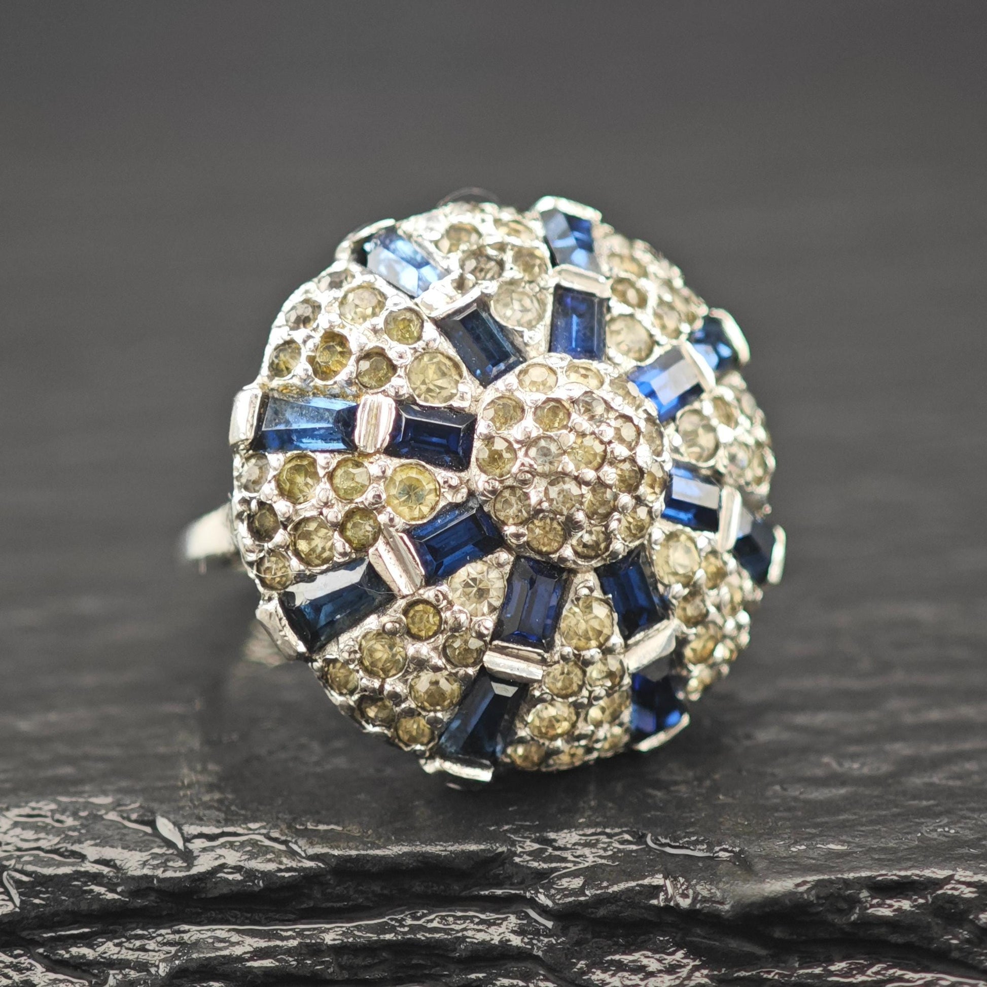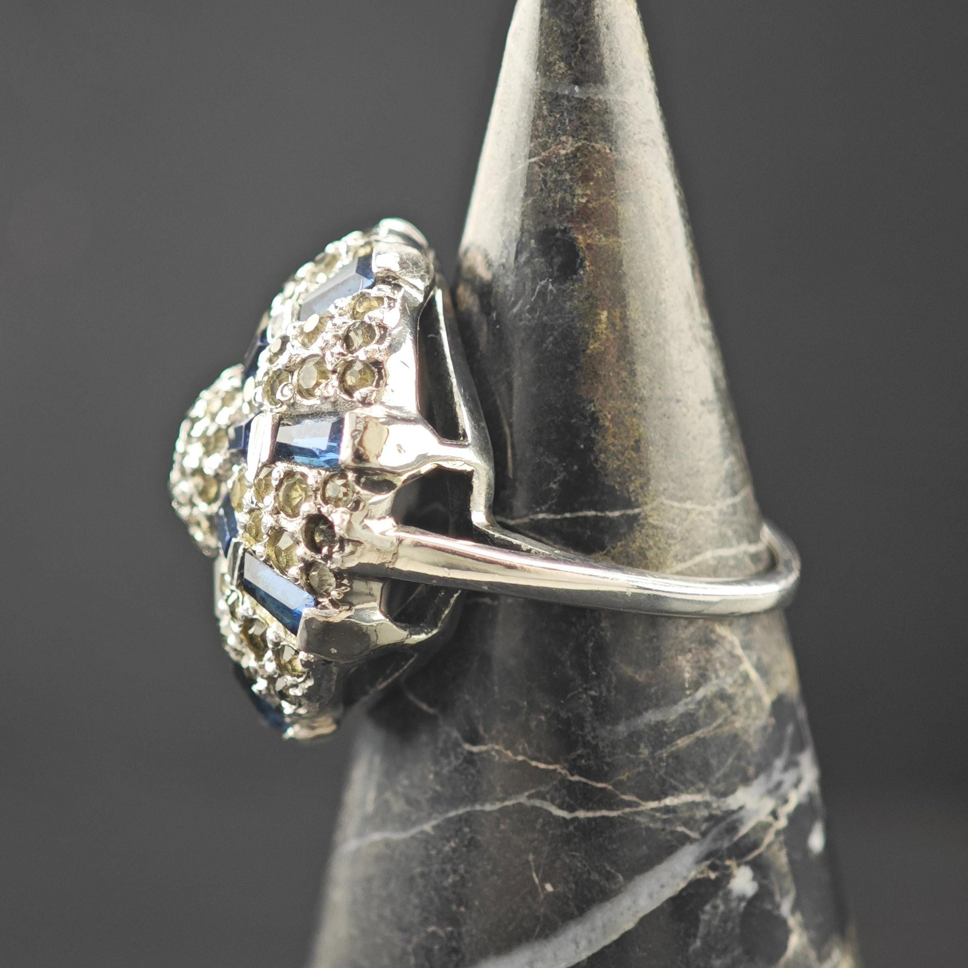 Art Deco Blue and White Dome Ring Sterling Silver Shank