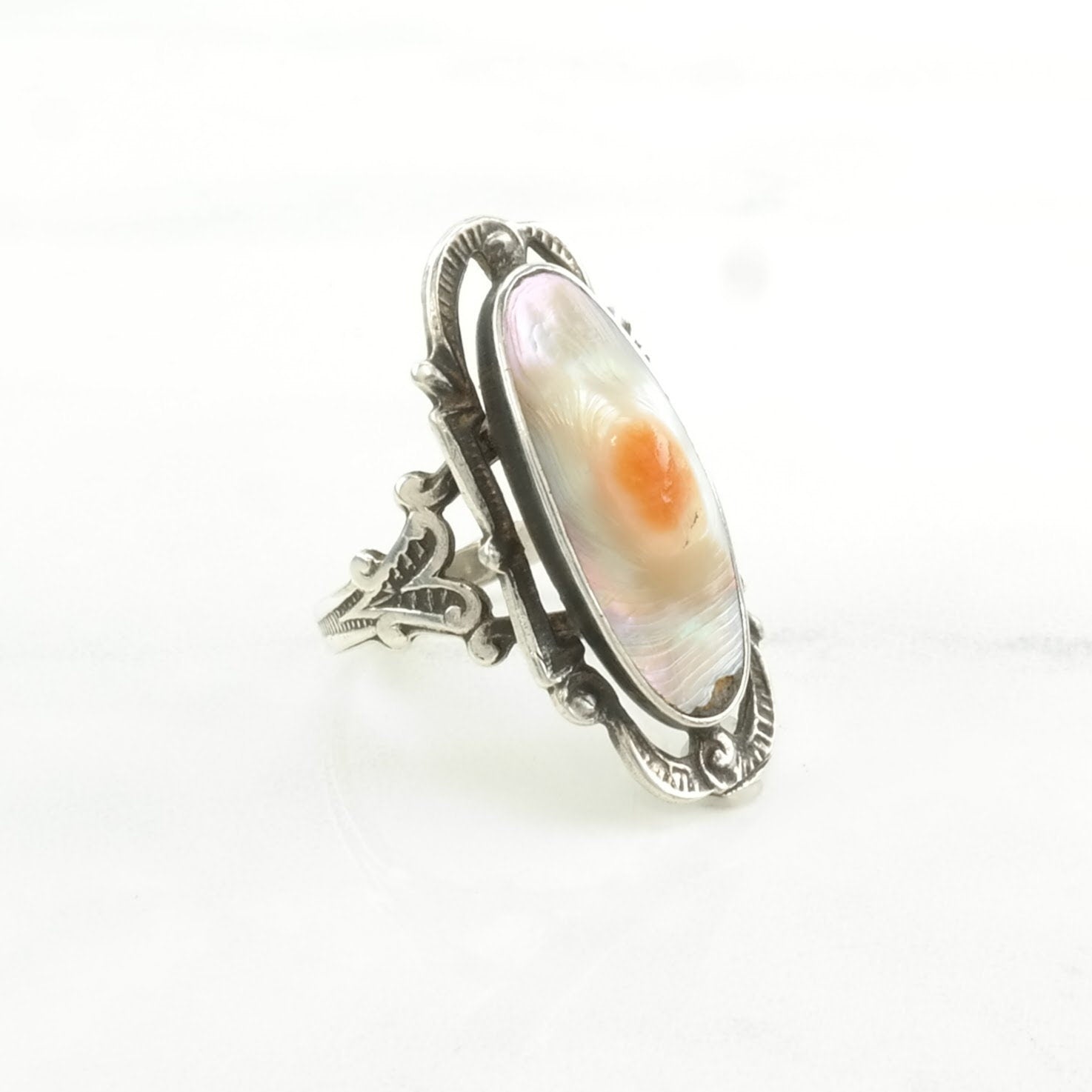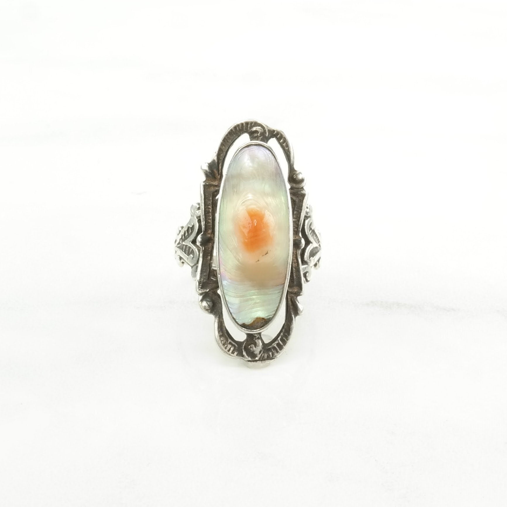 Art Deco Silver Ring Blister Pearl Navette Sterling Size 6