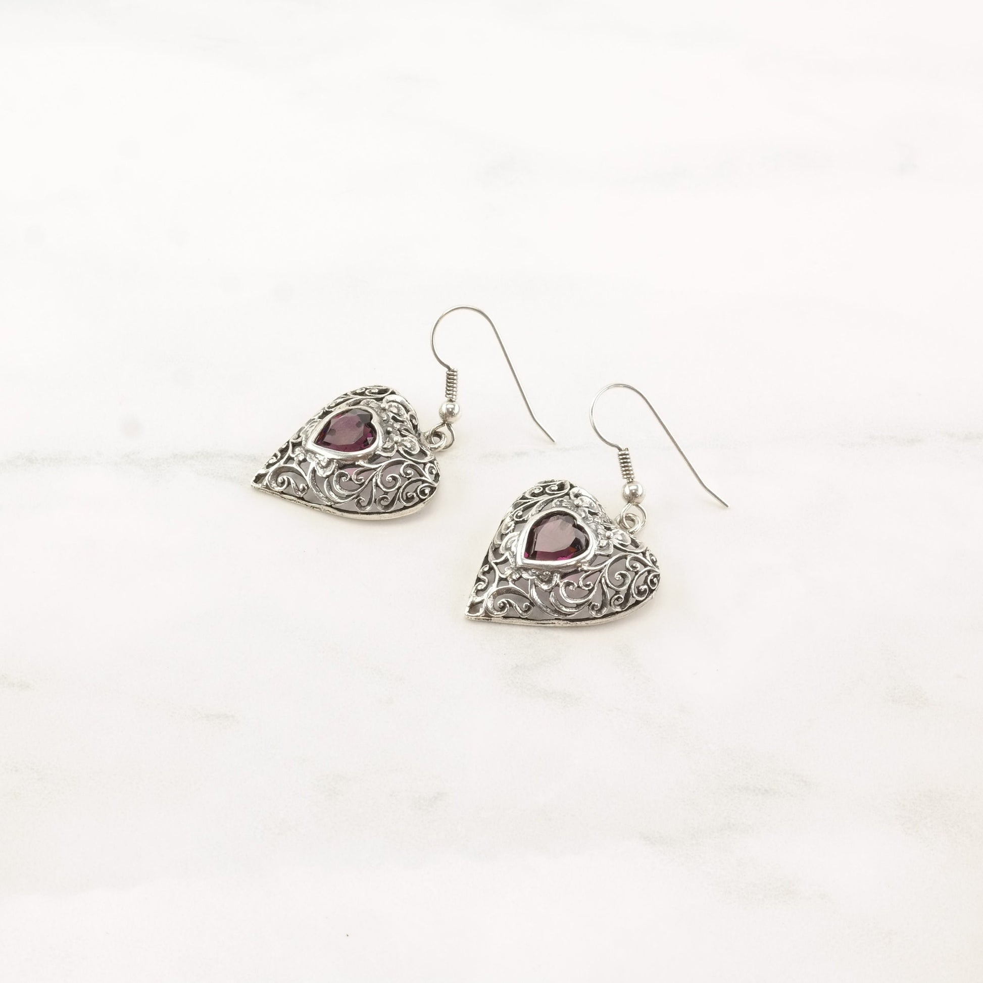 The Stone/Theme is a Purple Paste Heart, Filigree Man-made