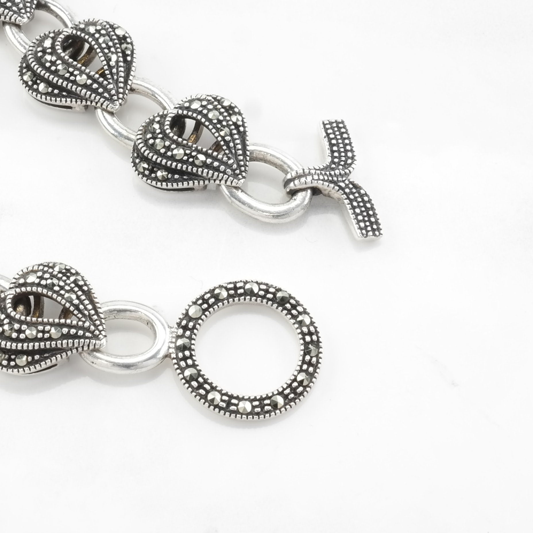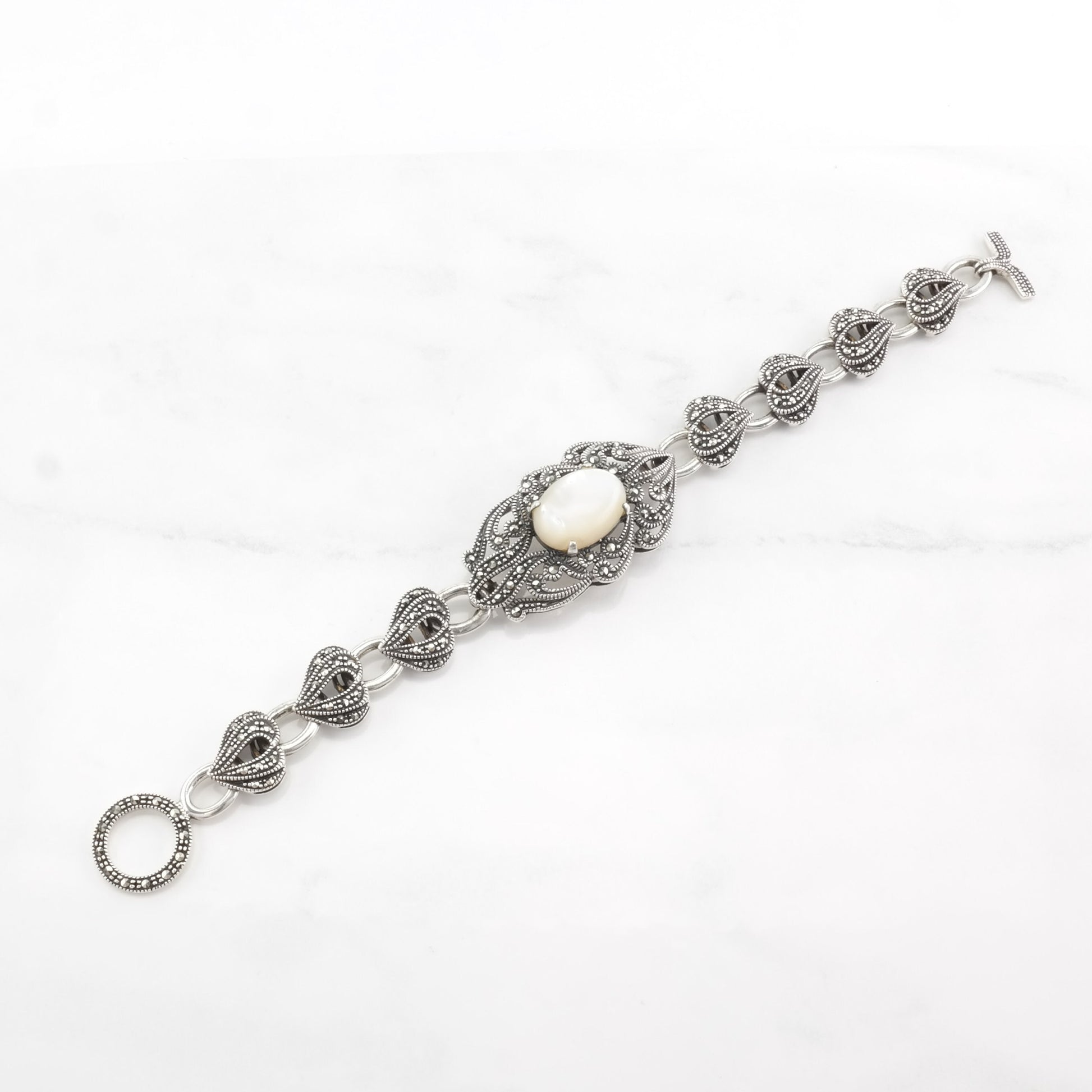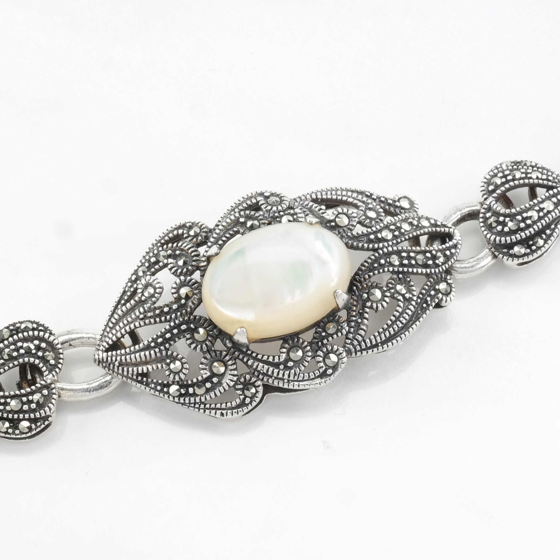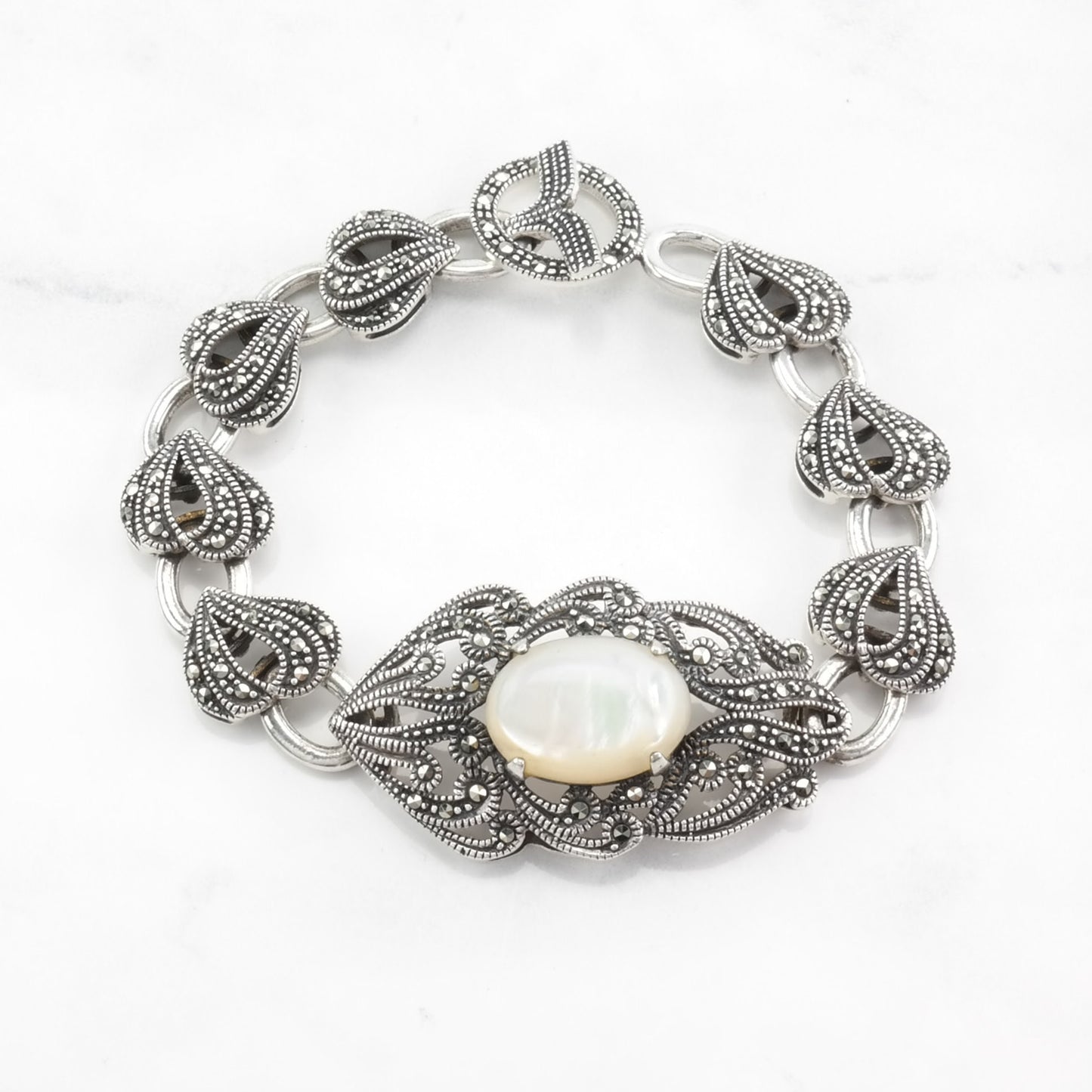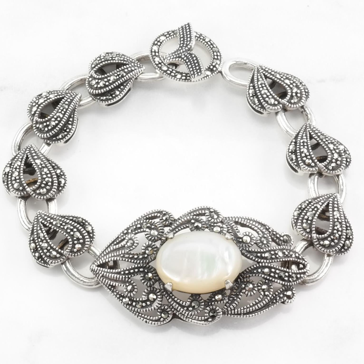 Art Deco Style Marcasite Bracelet Sterling Silver Link MOP