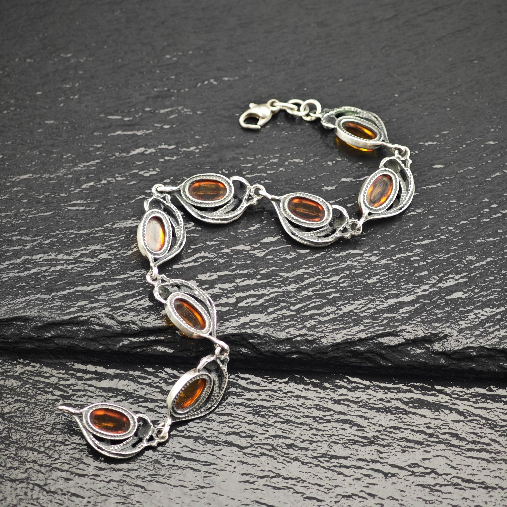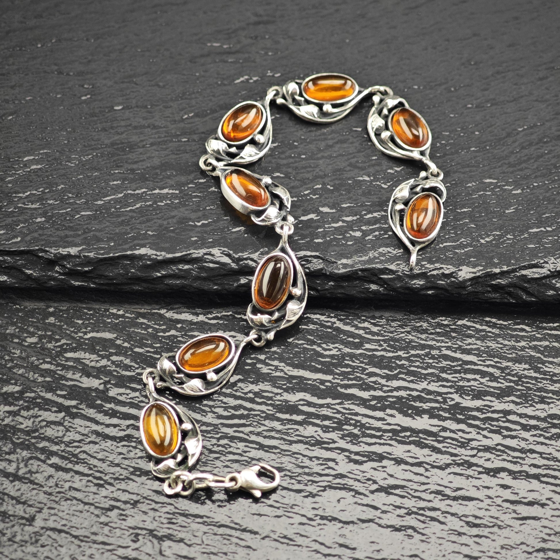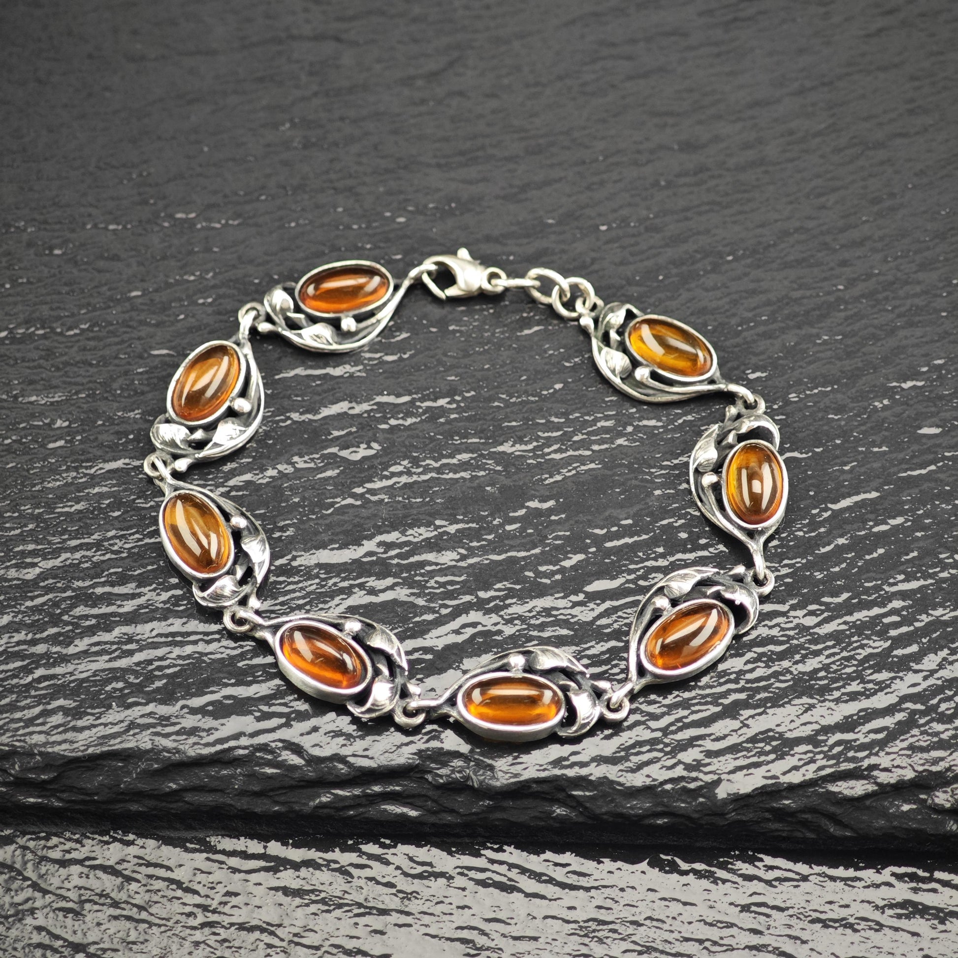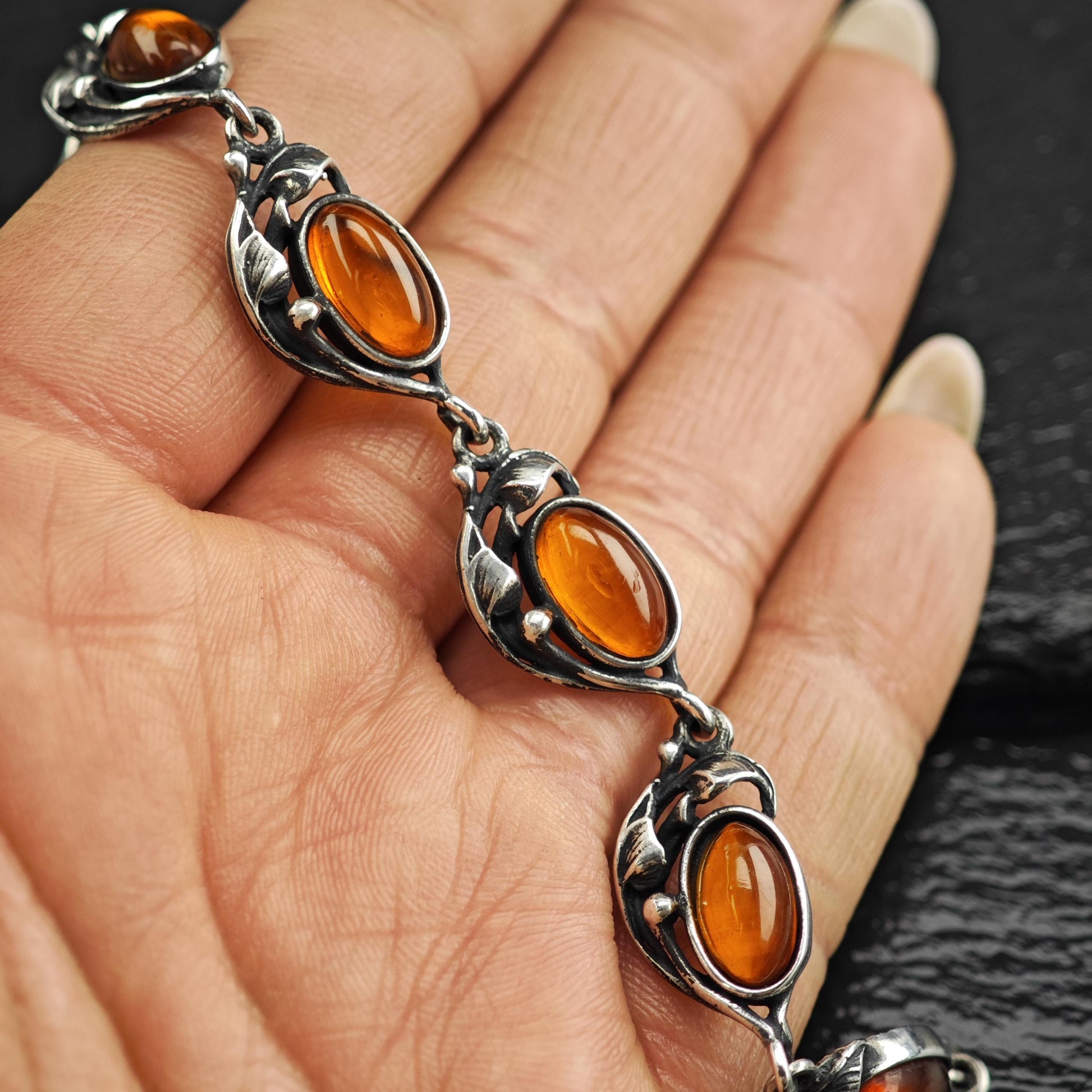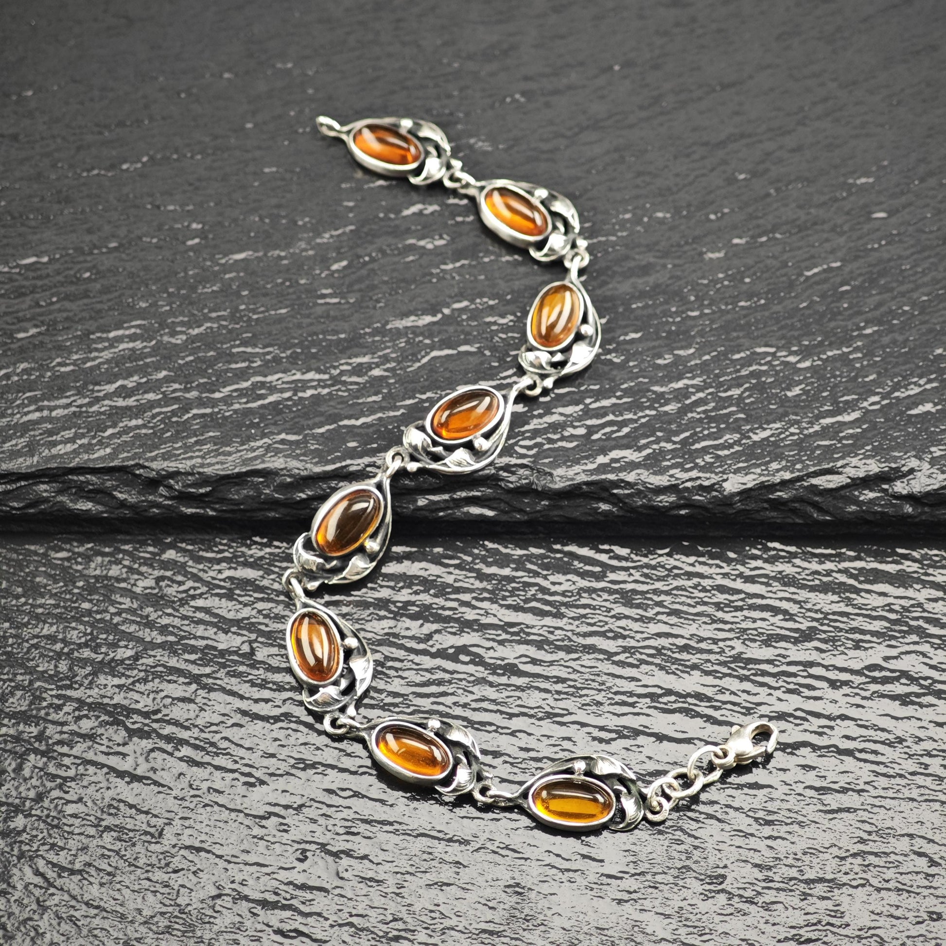 Art Nouveau Style Amber Link Bracelet Sterling Silver