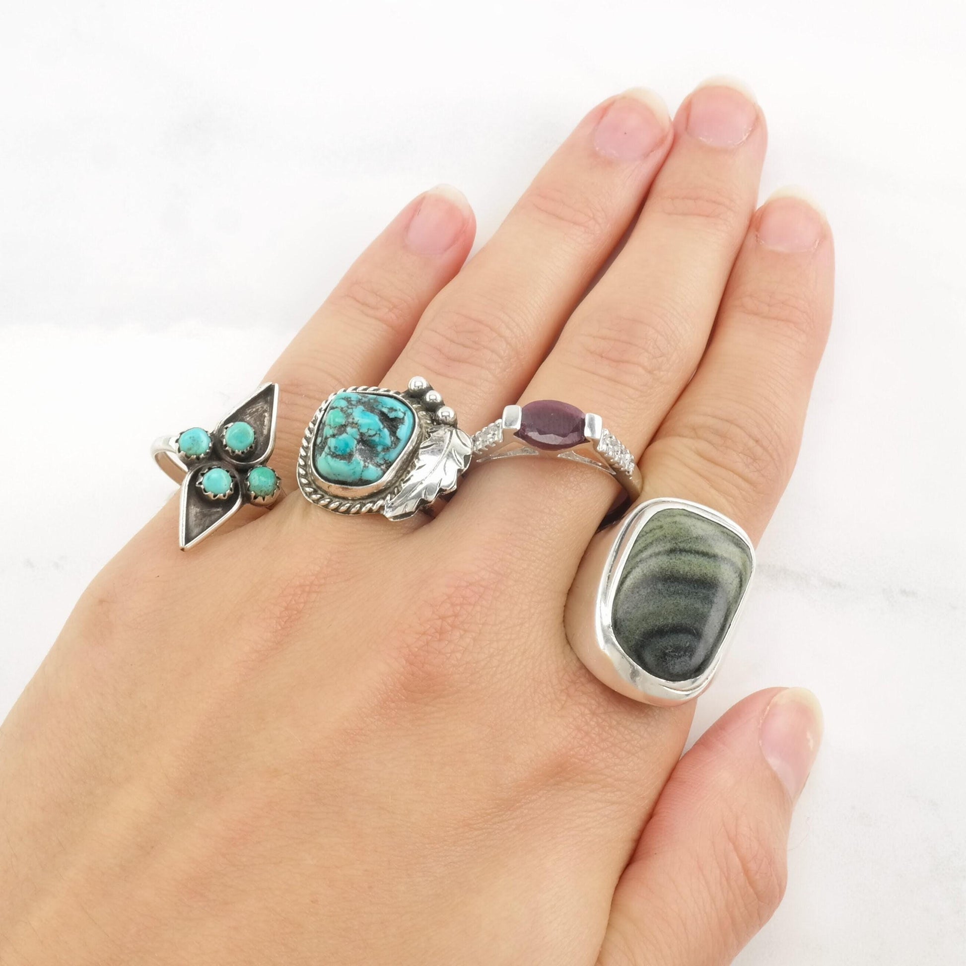 The condition of this ring is Estate, Great, very subtle wear, subtle scratching on silver, very light patina