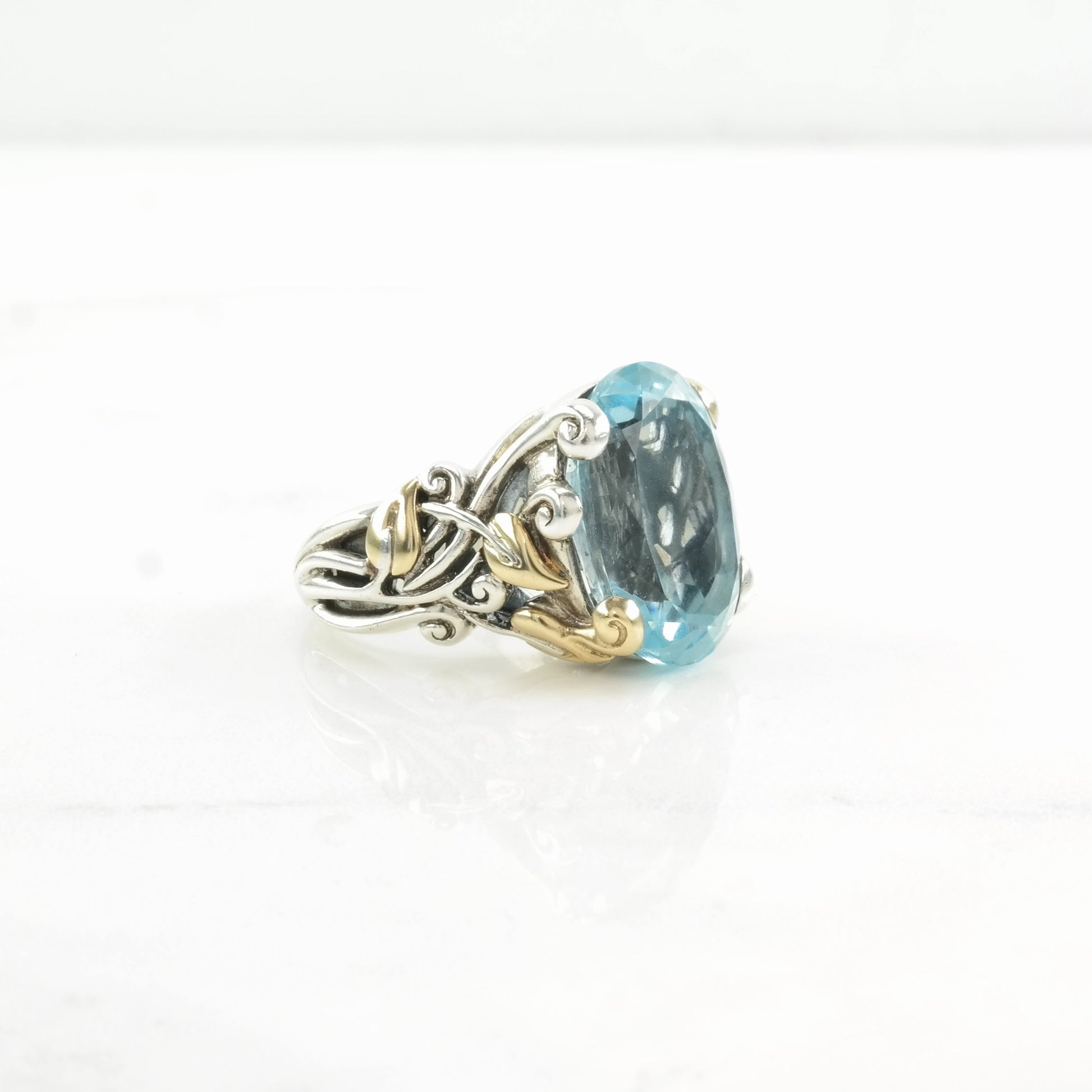 Barbara Bixby Silver Ring Topaz 18K Gold Accent, Leaf Sterling Sky Blue Size 7