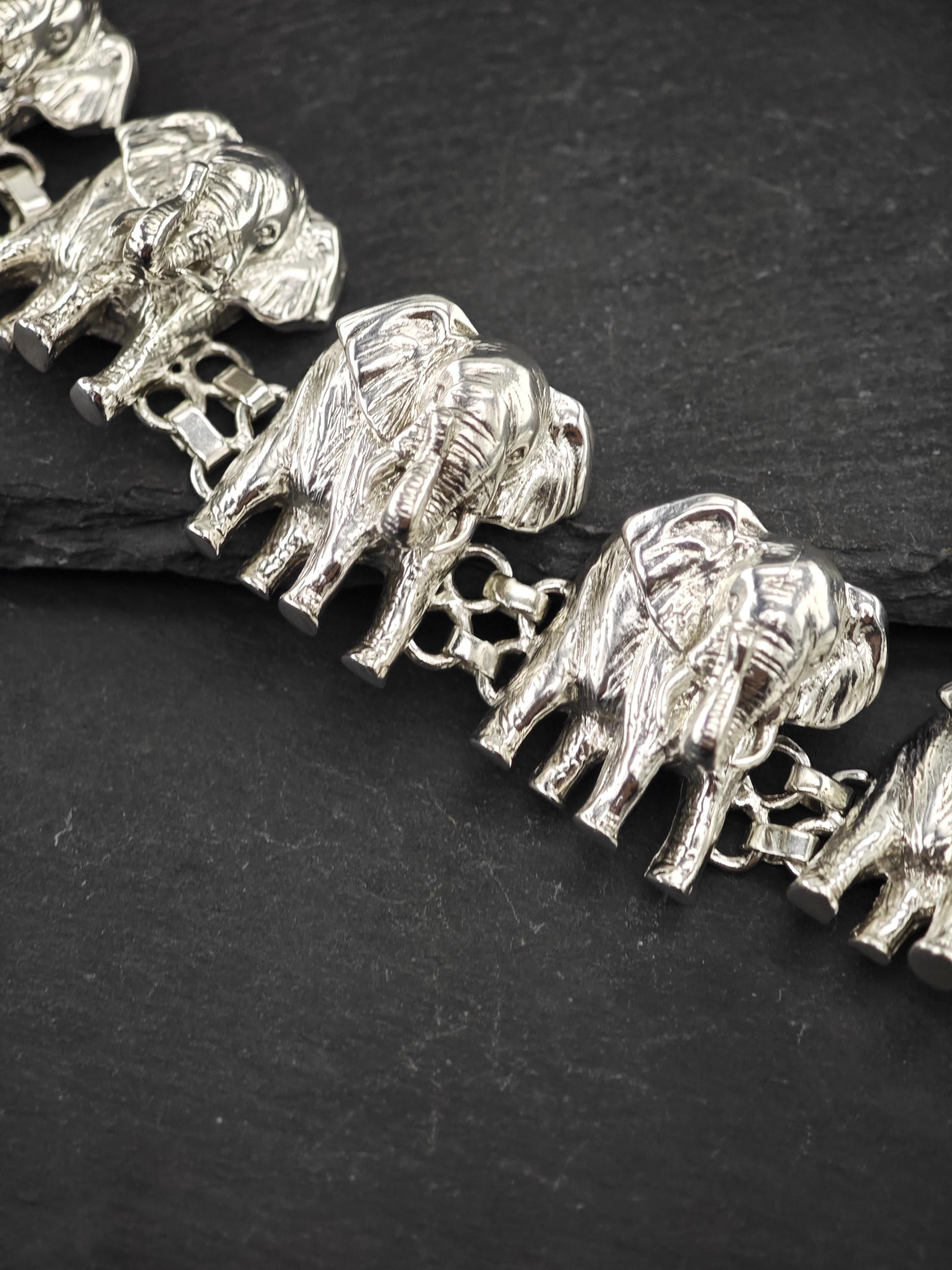 Vintage Carol Felley Elephant Link Bracelet Sterling Silver