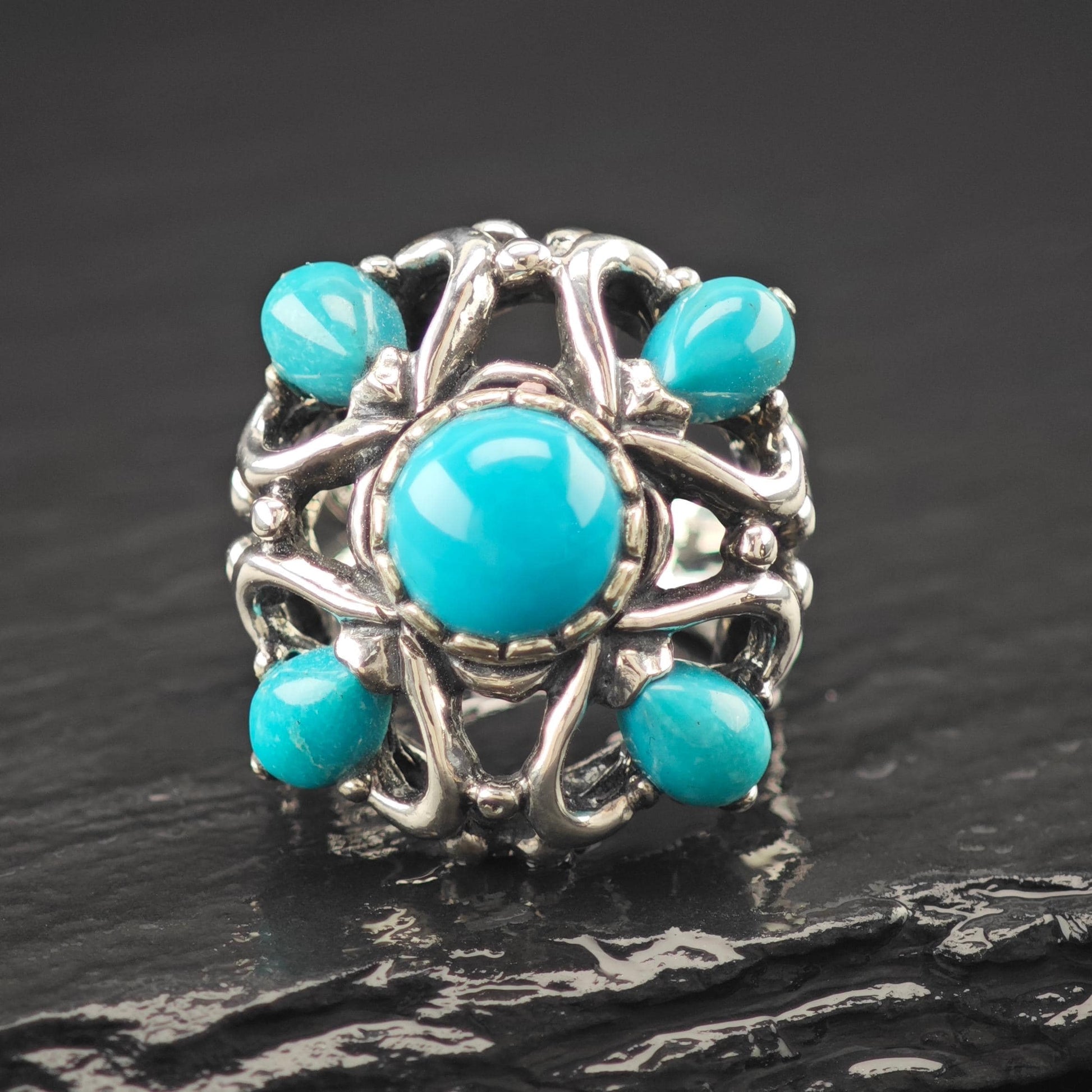 Carolyn Pollack Block Turquoise Ring Sterling Silver