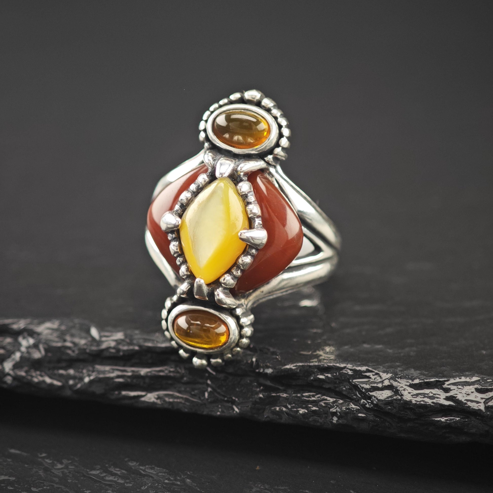 Carolyn Pollack Golden MOP, Carnelian, Amber Ring Sterling Silver