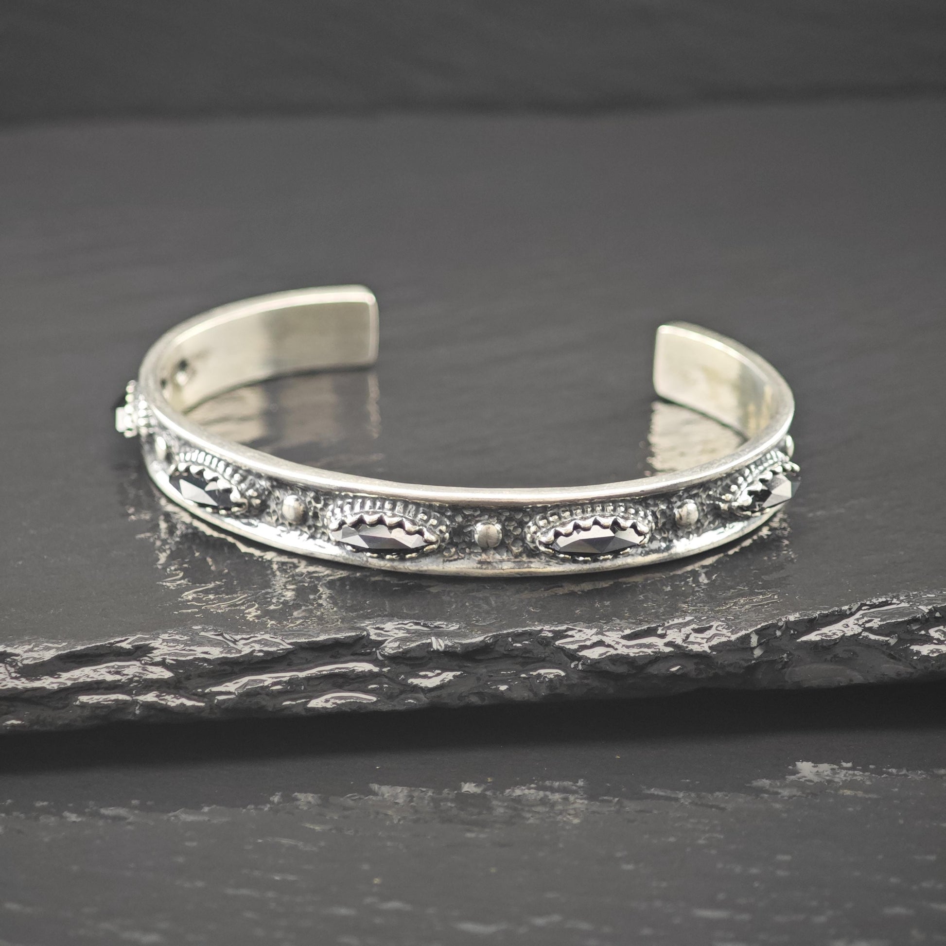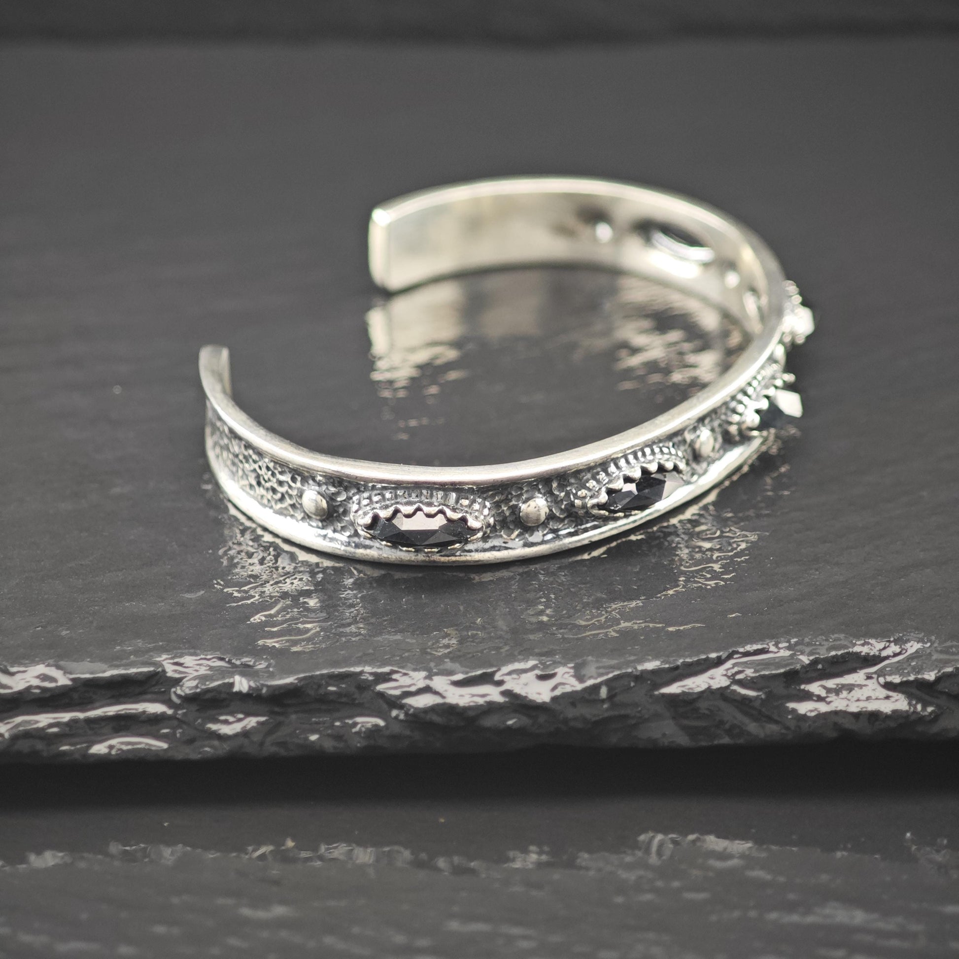 Carolyn Pollack Onyx Sandcast Cuff Bracelet Sterling Silver
