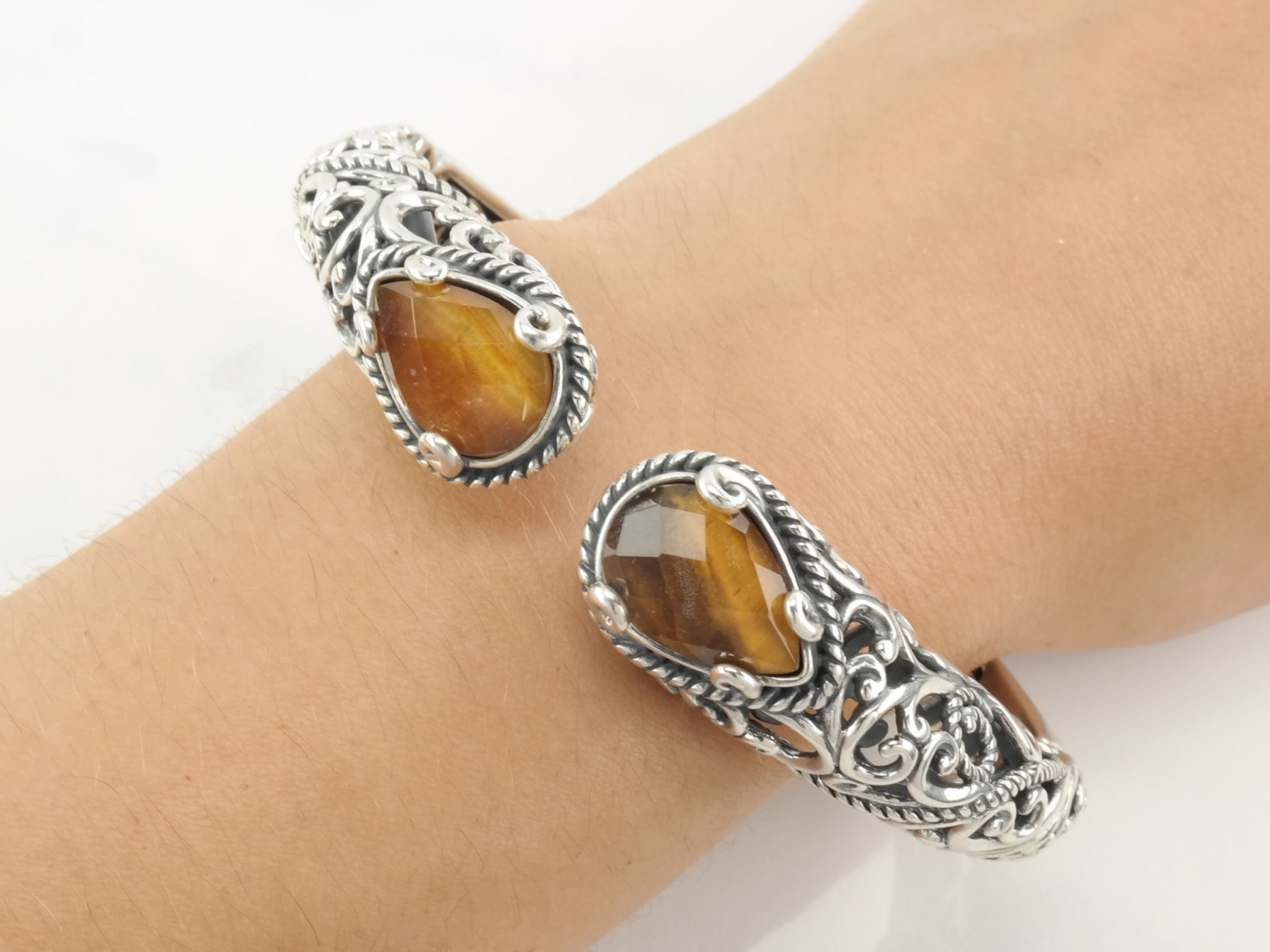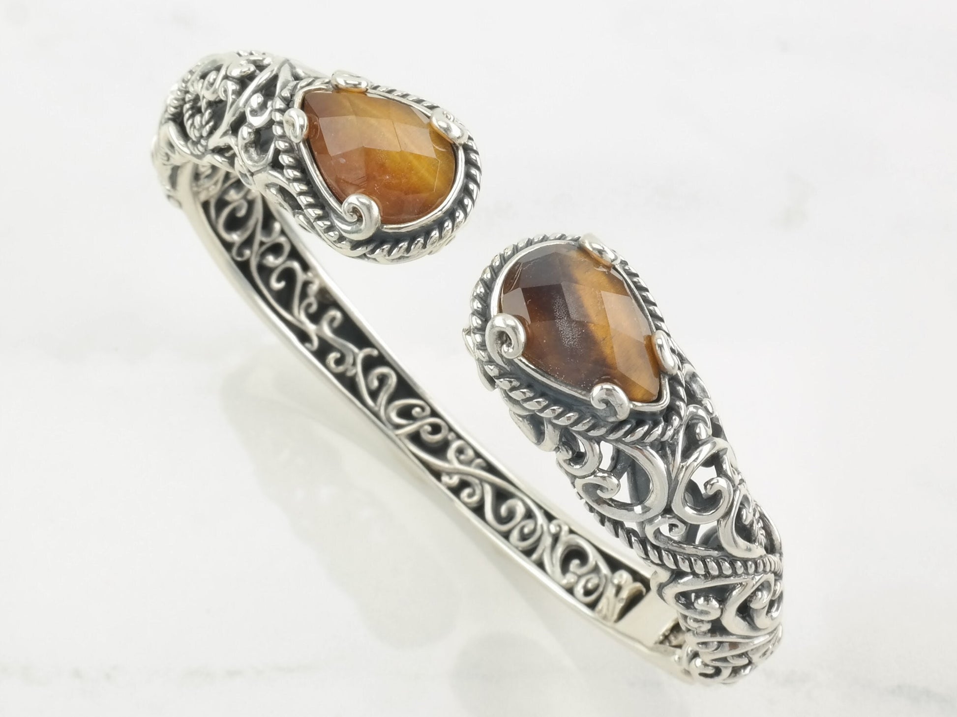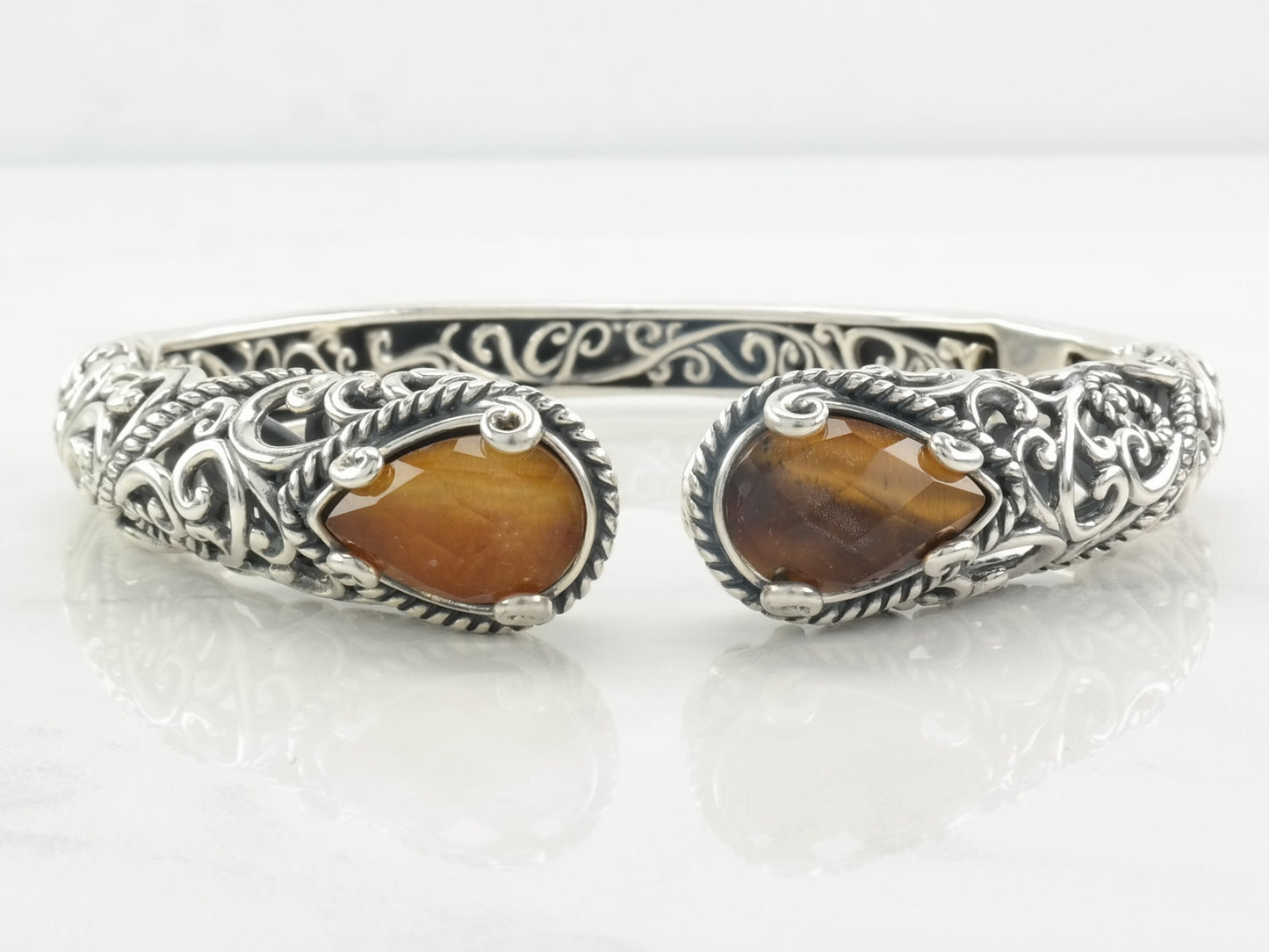 Carolyn Pollack Sterling Silver Bangle Bracelet Yellow Tiger's Eye Doublet