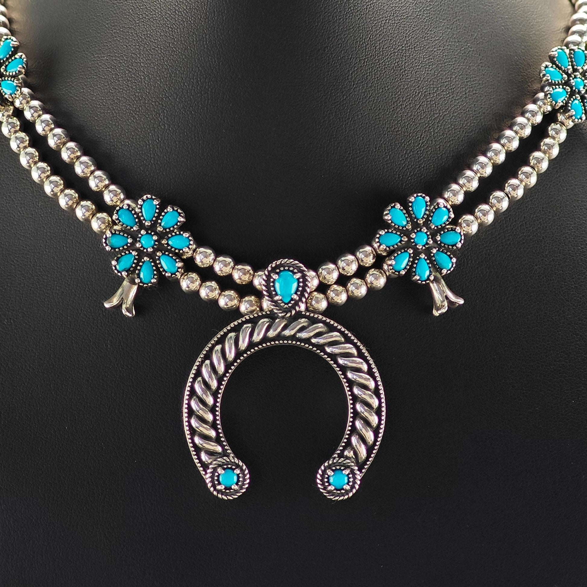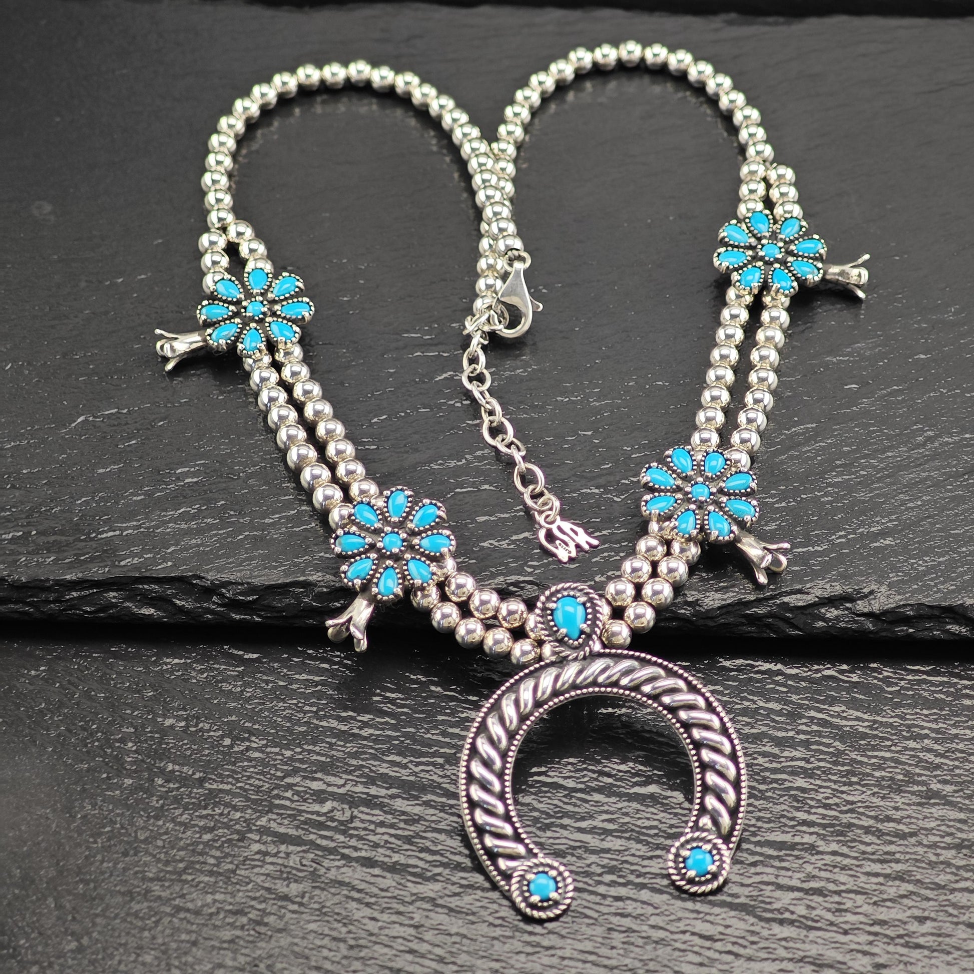Carolyn Pollack Sterling Silver Squash Blossom Necklace with Removable Blue Turquoise Pendant