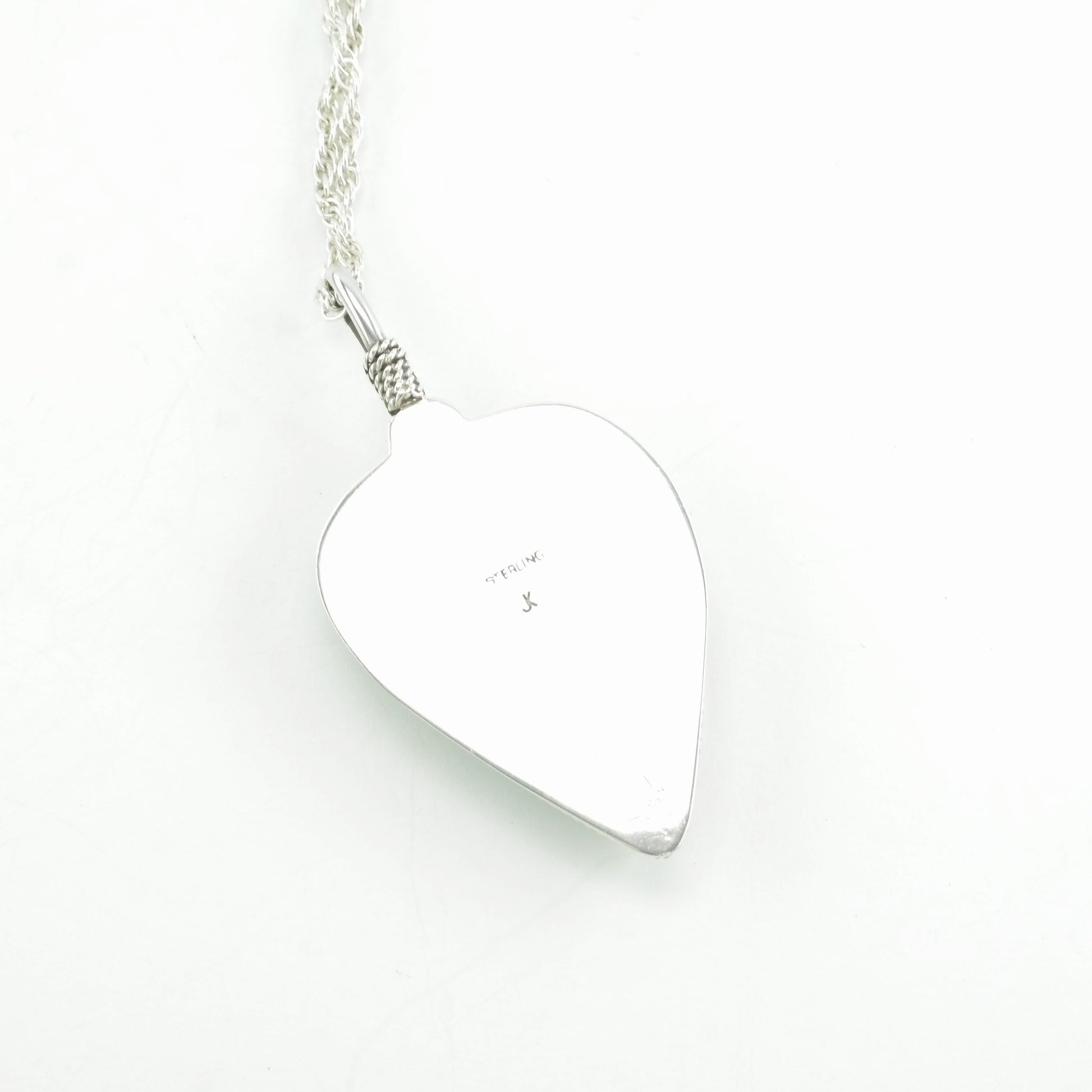 Markings: Sterling, JK (possibly Johnny King) (pendant), Sterling (chain), (Tested Sterling Silver)