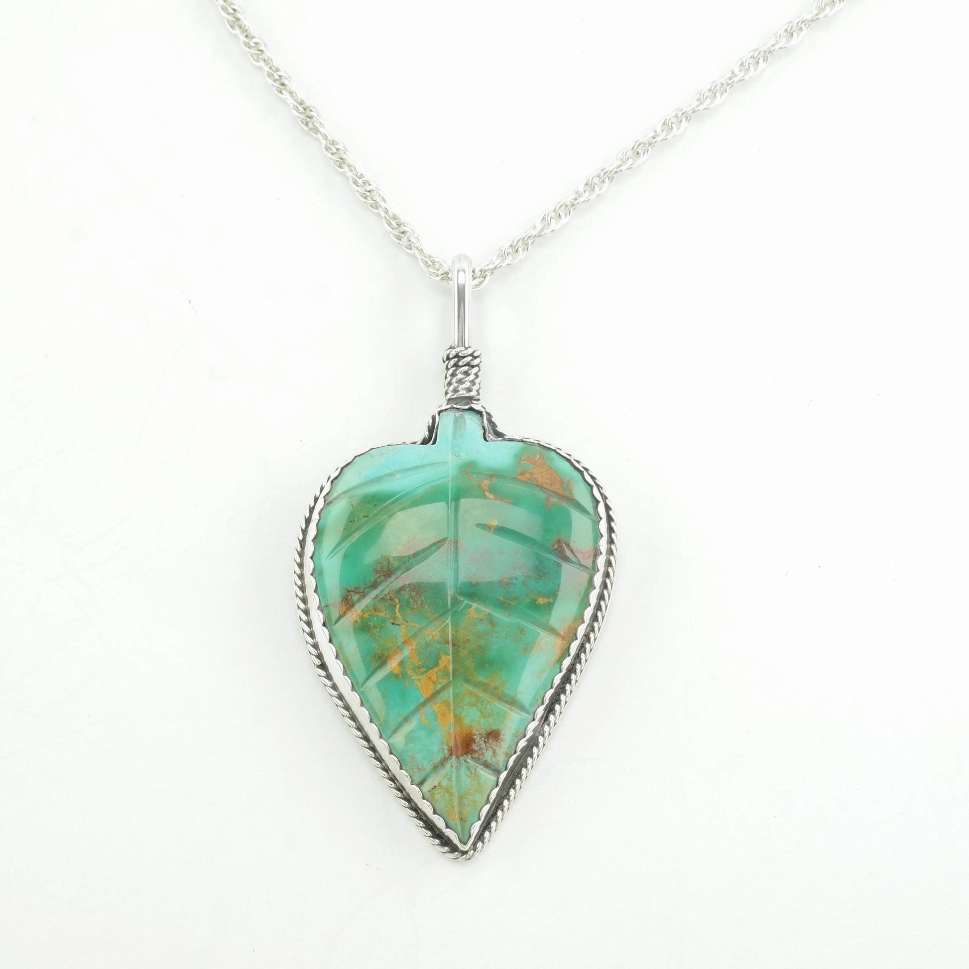 Carved Turquoise Leaf Native American Necklace Sterling Silver Royston