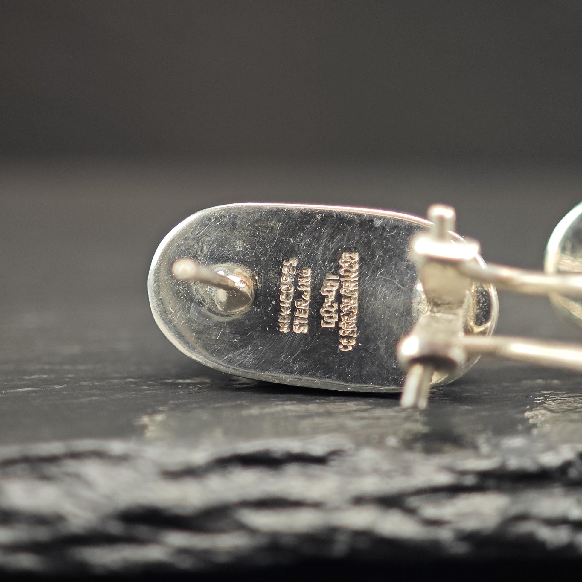 Each earring is marked with "Mexico," "925," "Sterling," "CC-01," and "Cerro Blanco," ensuring authenticity as tested sterling silver. These estate earrings are in excellent condition, having been cleaned and polished to look like new, with only age-appropriate wear, if any.