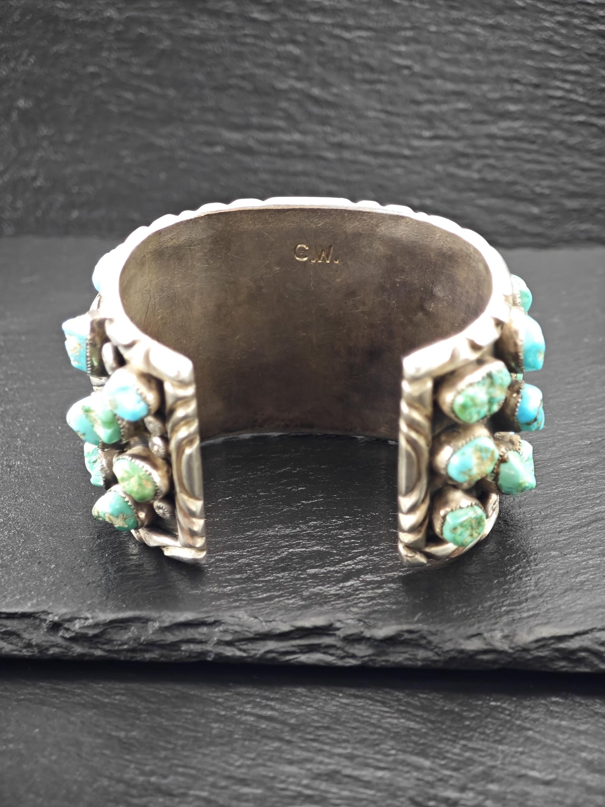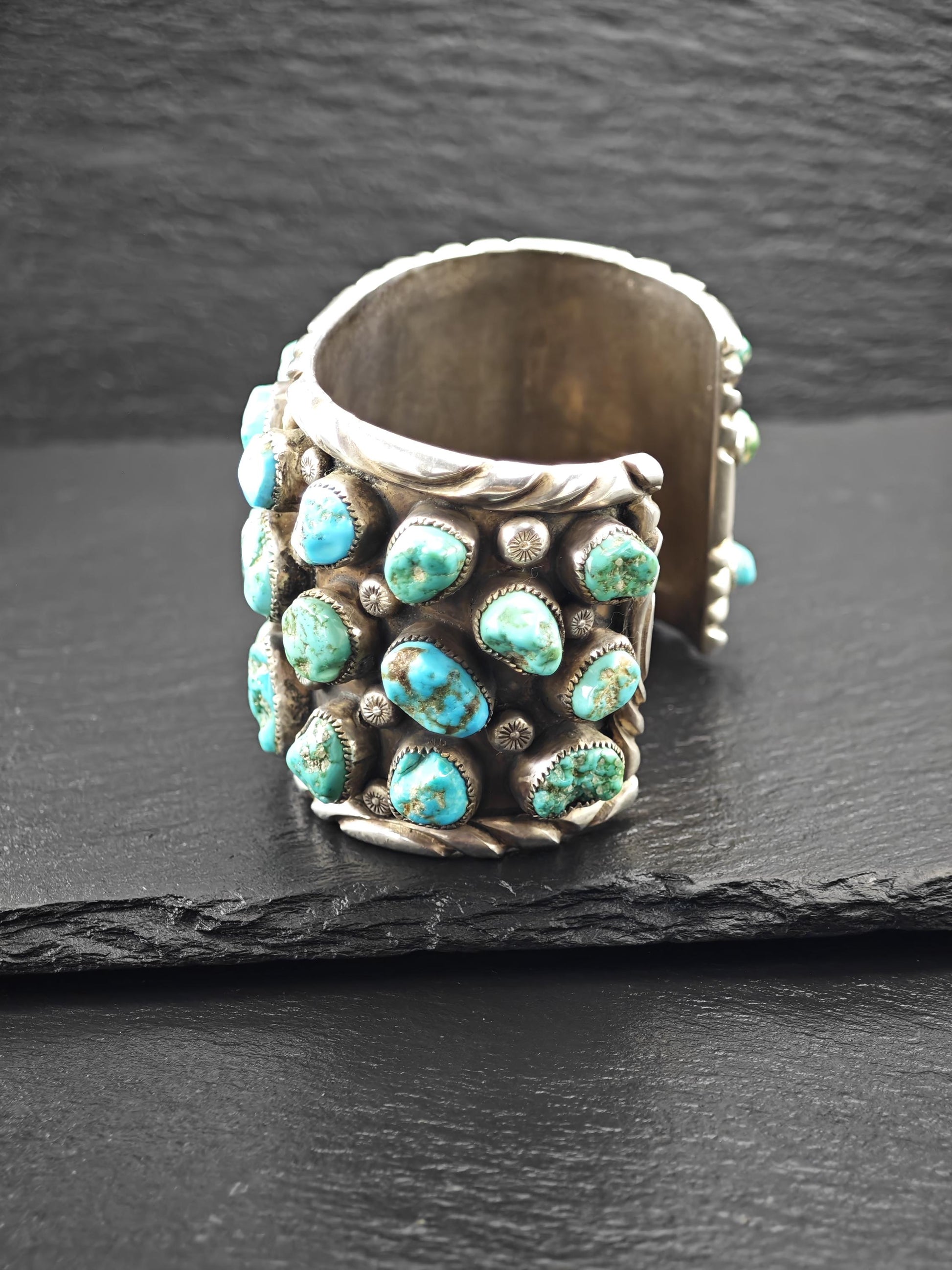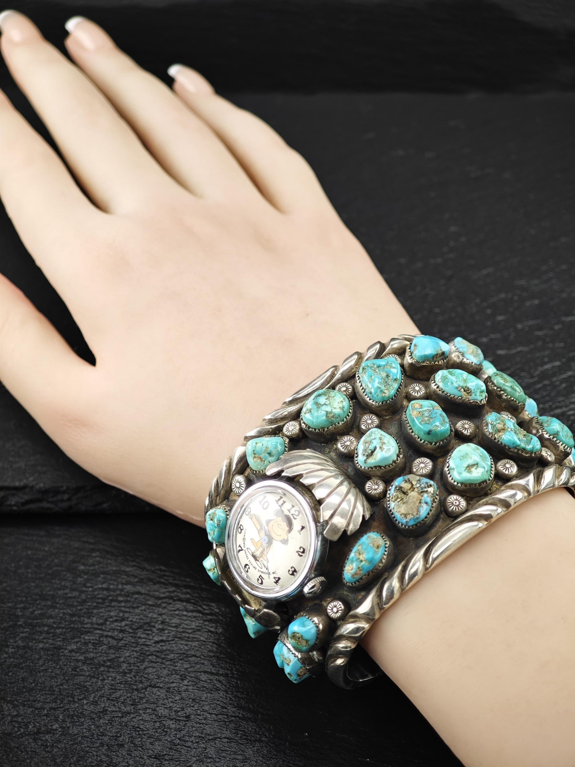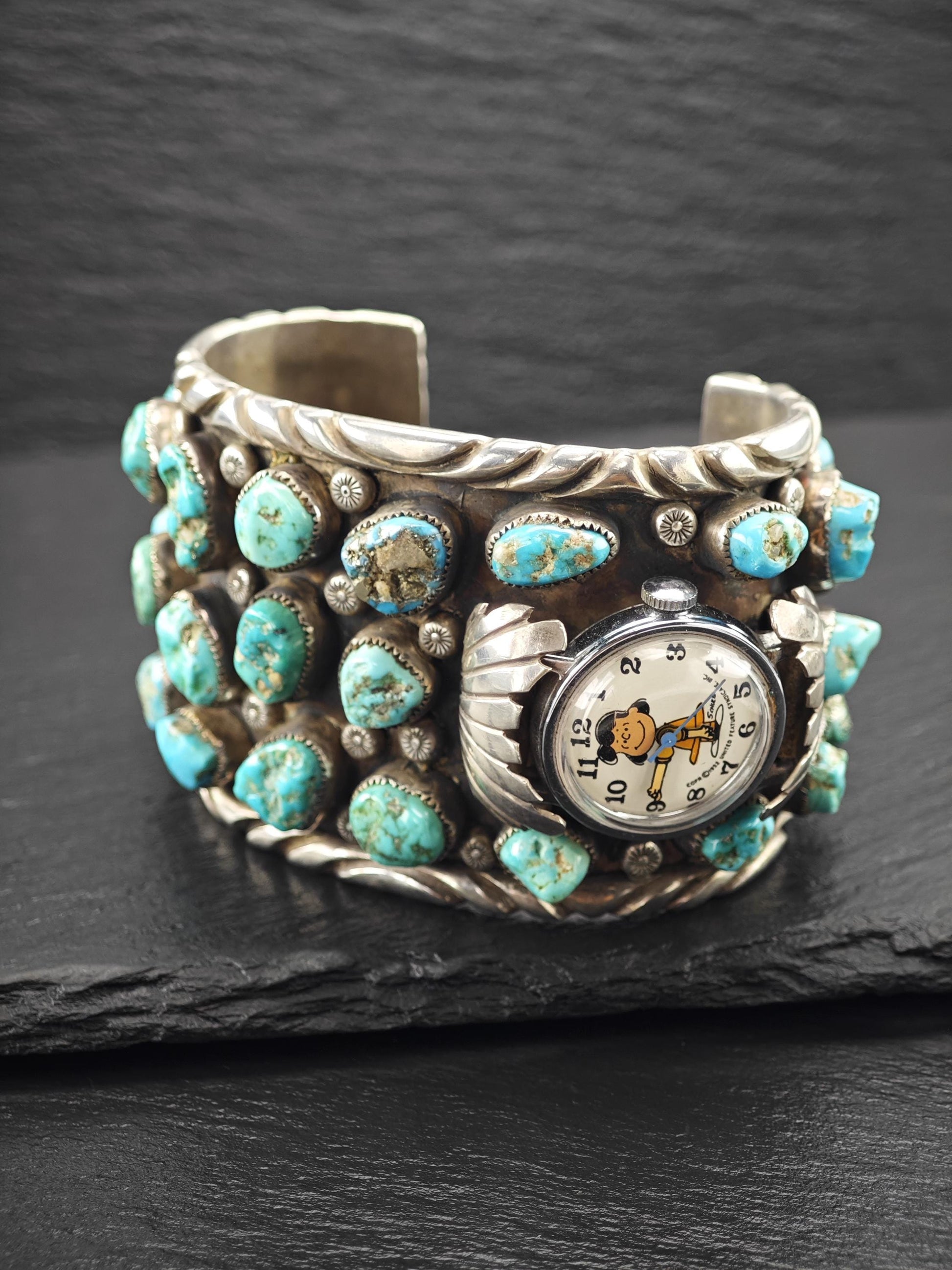 As IS Vintage Charly Brown Native American Blue Turquoise, Watch Cuff Bracelet Sterling Silver