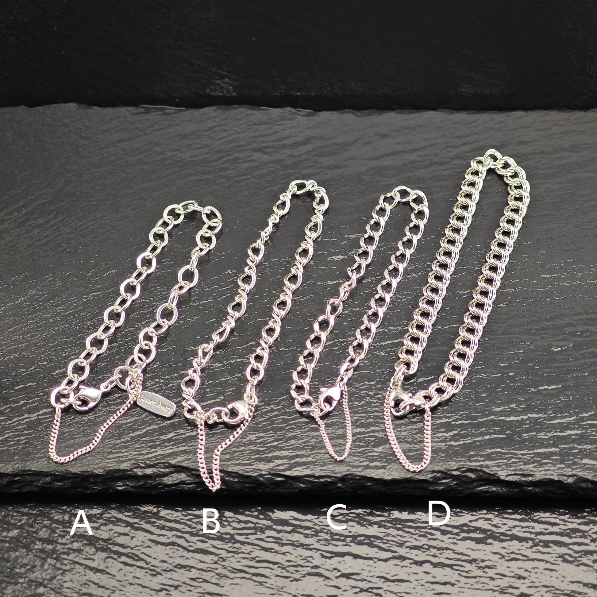 Stamped A: James Avery, Ag 925 B-C: Avery, Sterling, 925 D: Avery, 925