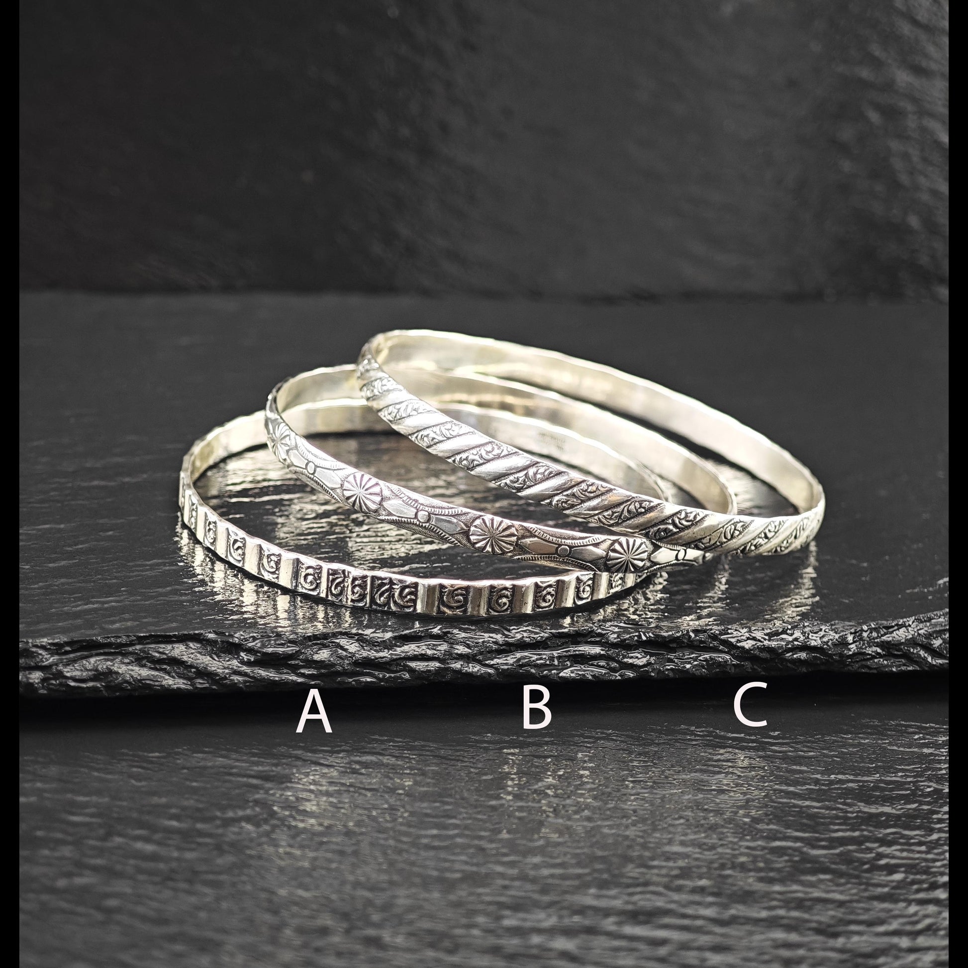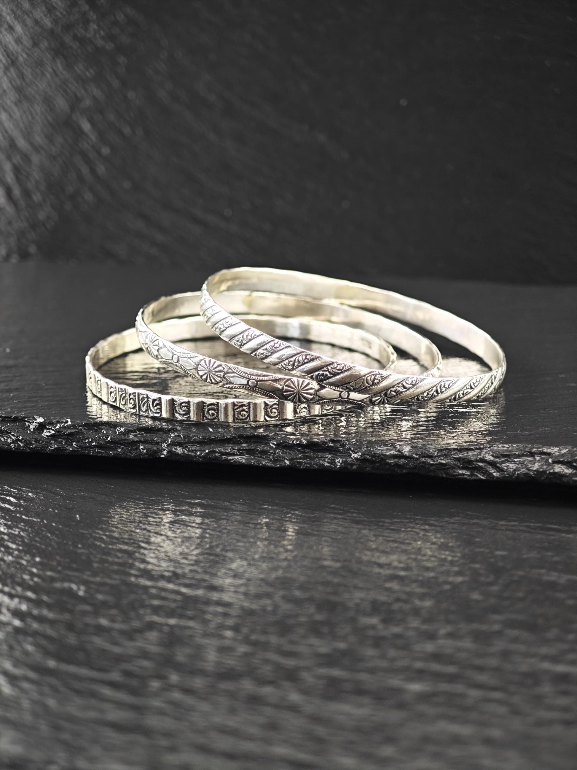 Choice of Stackable Repousse Bangle Bracelet Sterling Silver