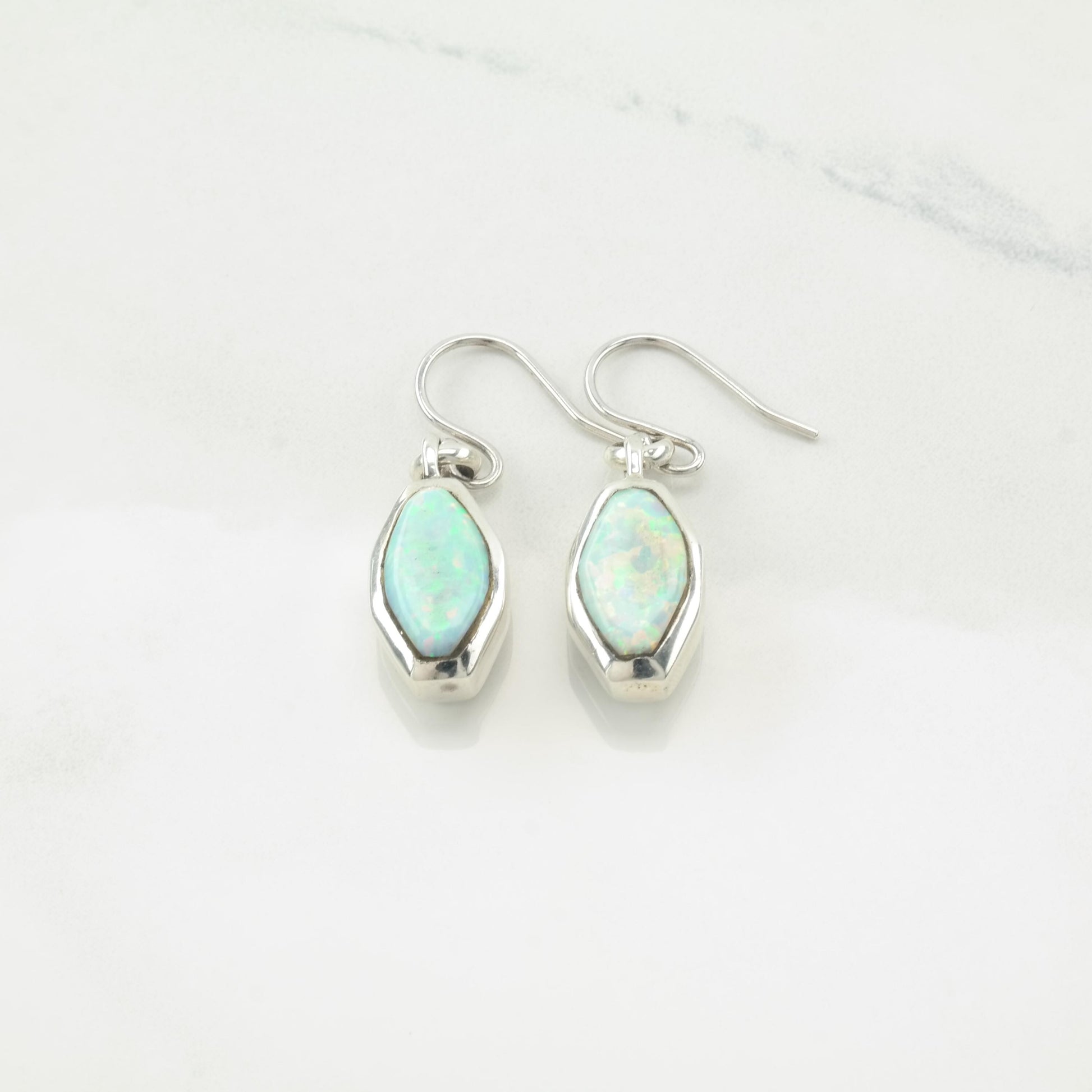 Choice of Vintage Christin Wolf Turquoise, Lab Opal, Lapis Reversible Sterling Silver Fish Hook Earrings