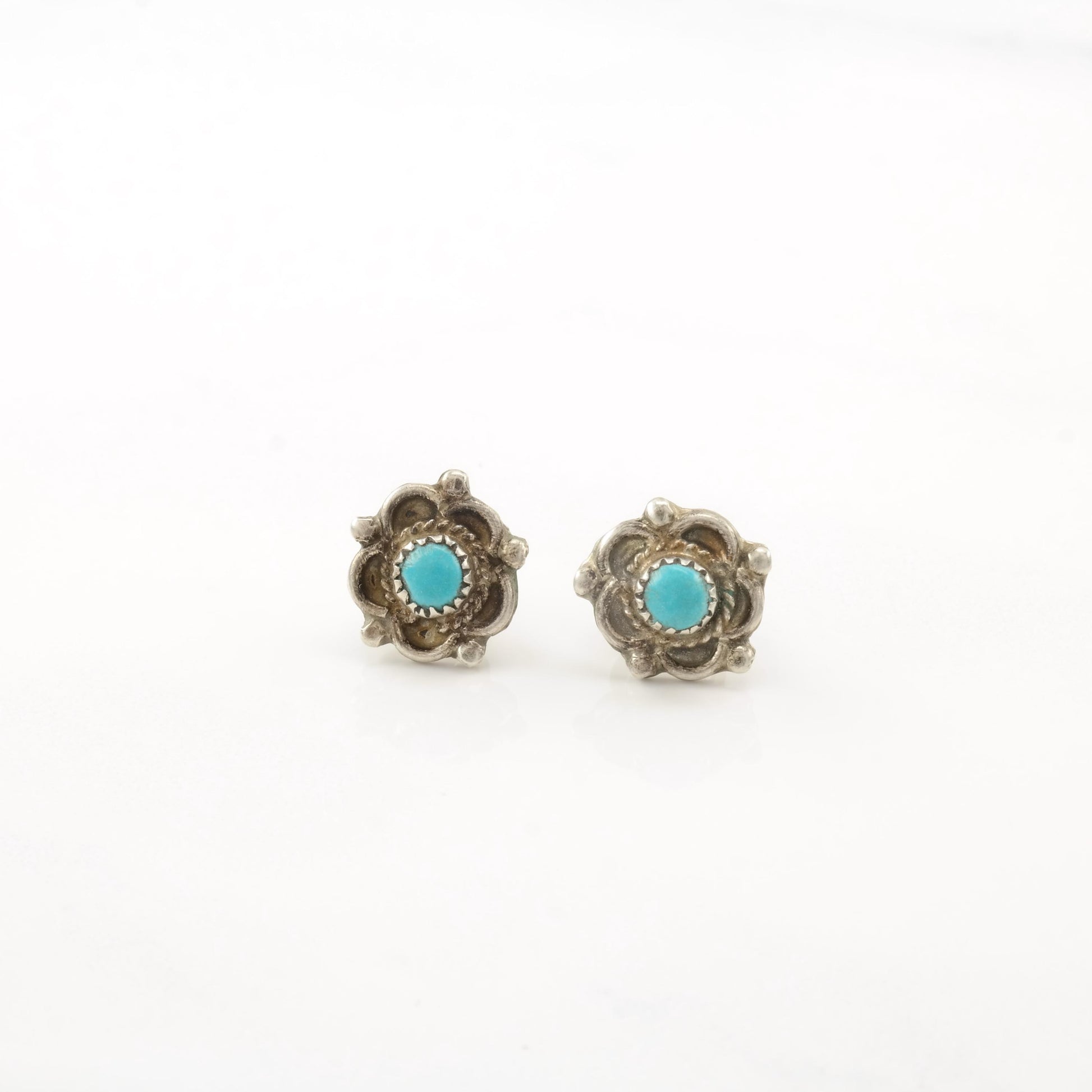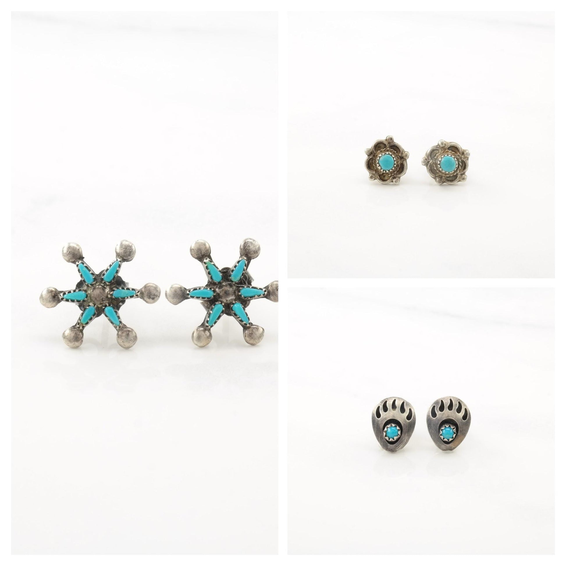 Choice of Vintage Native American Blue Turquoise Dainty, Minimalist Sterling Silver Stud Earrings