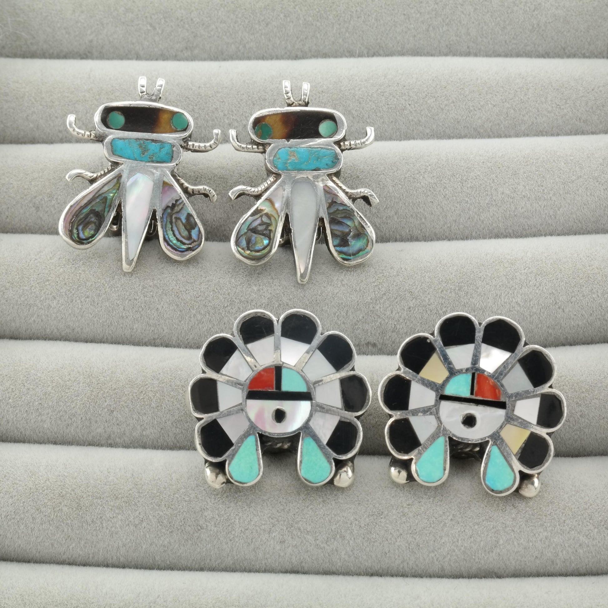 Choice of Vintage Native American Sterling Silver Clip On Earrings