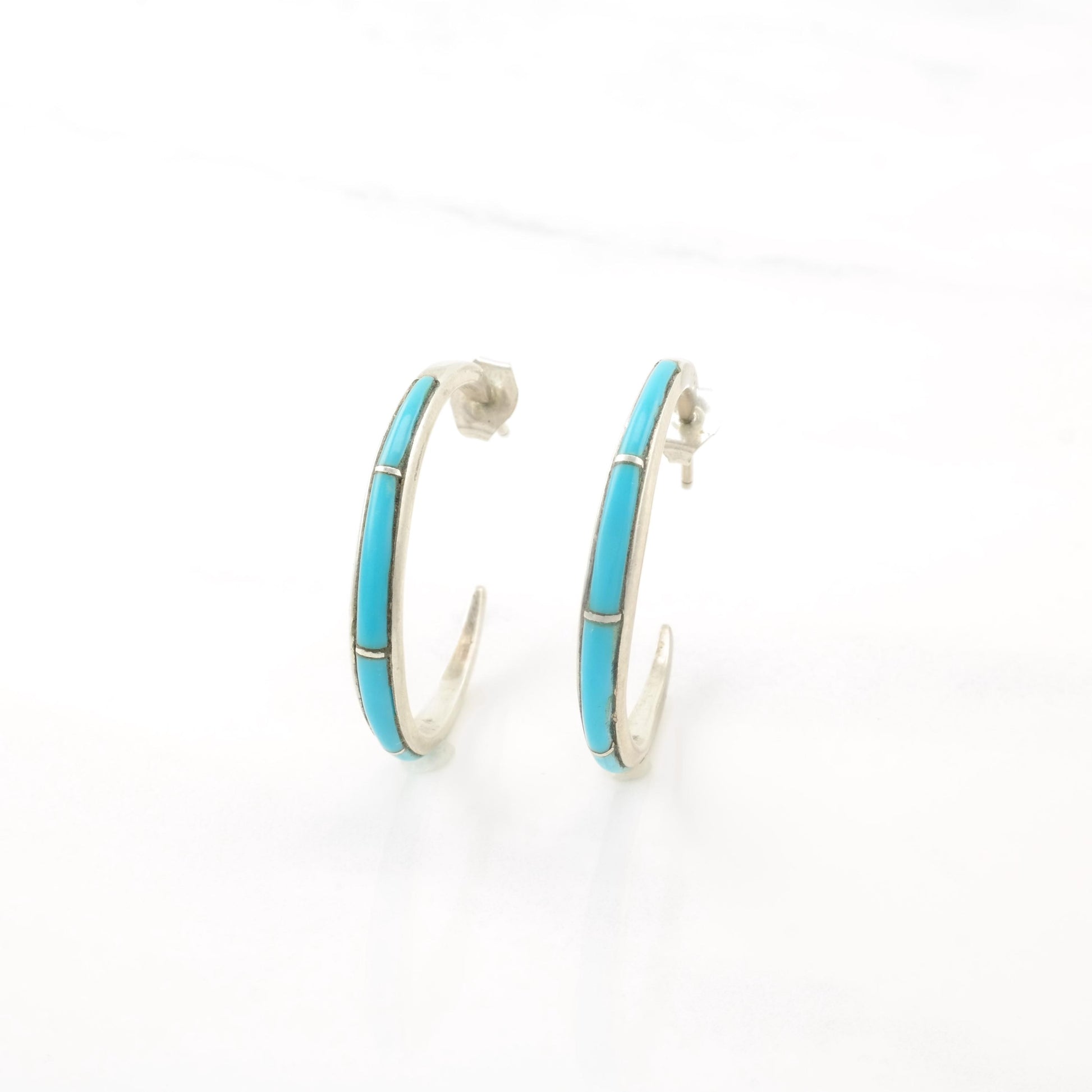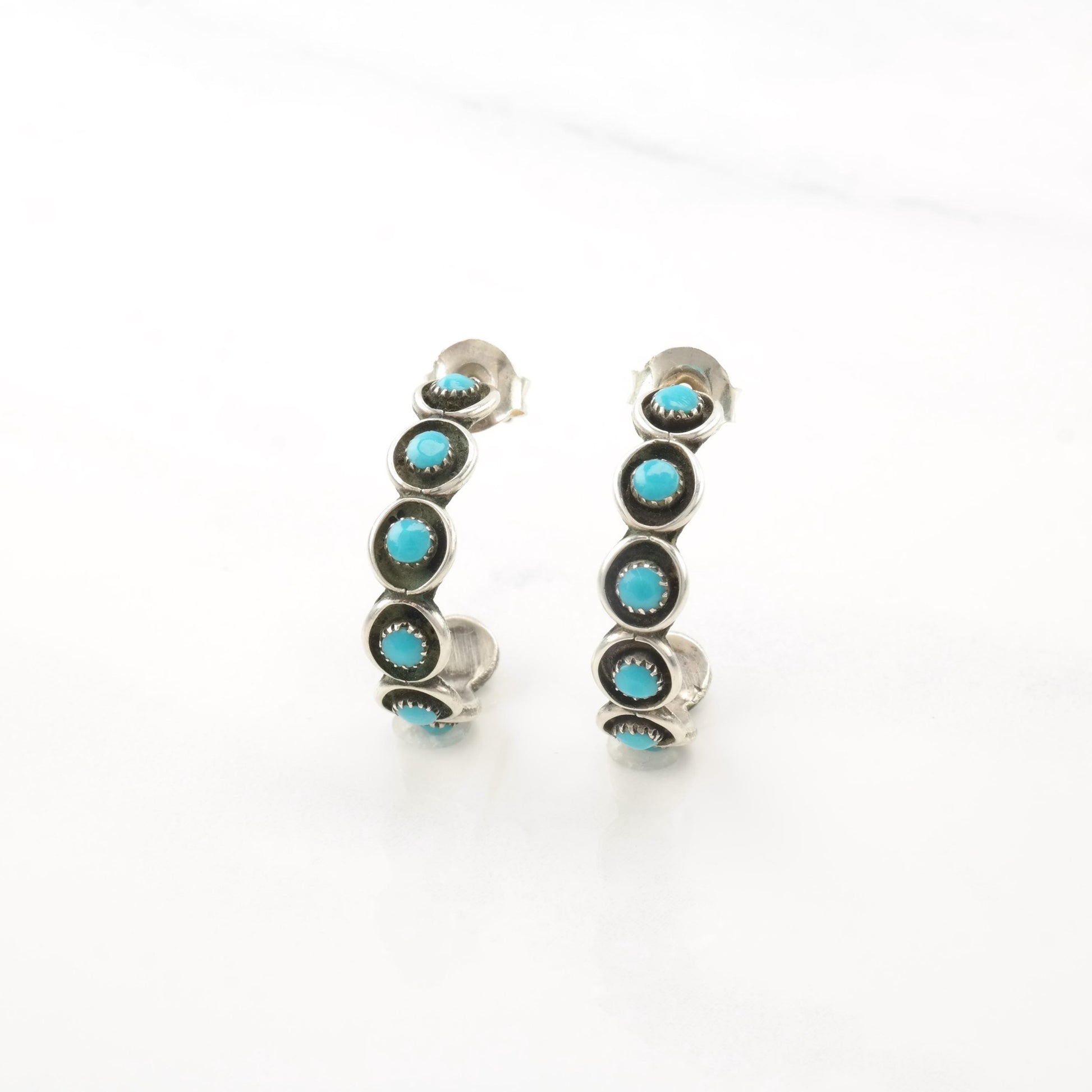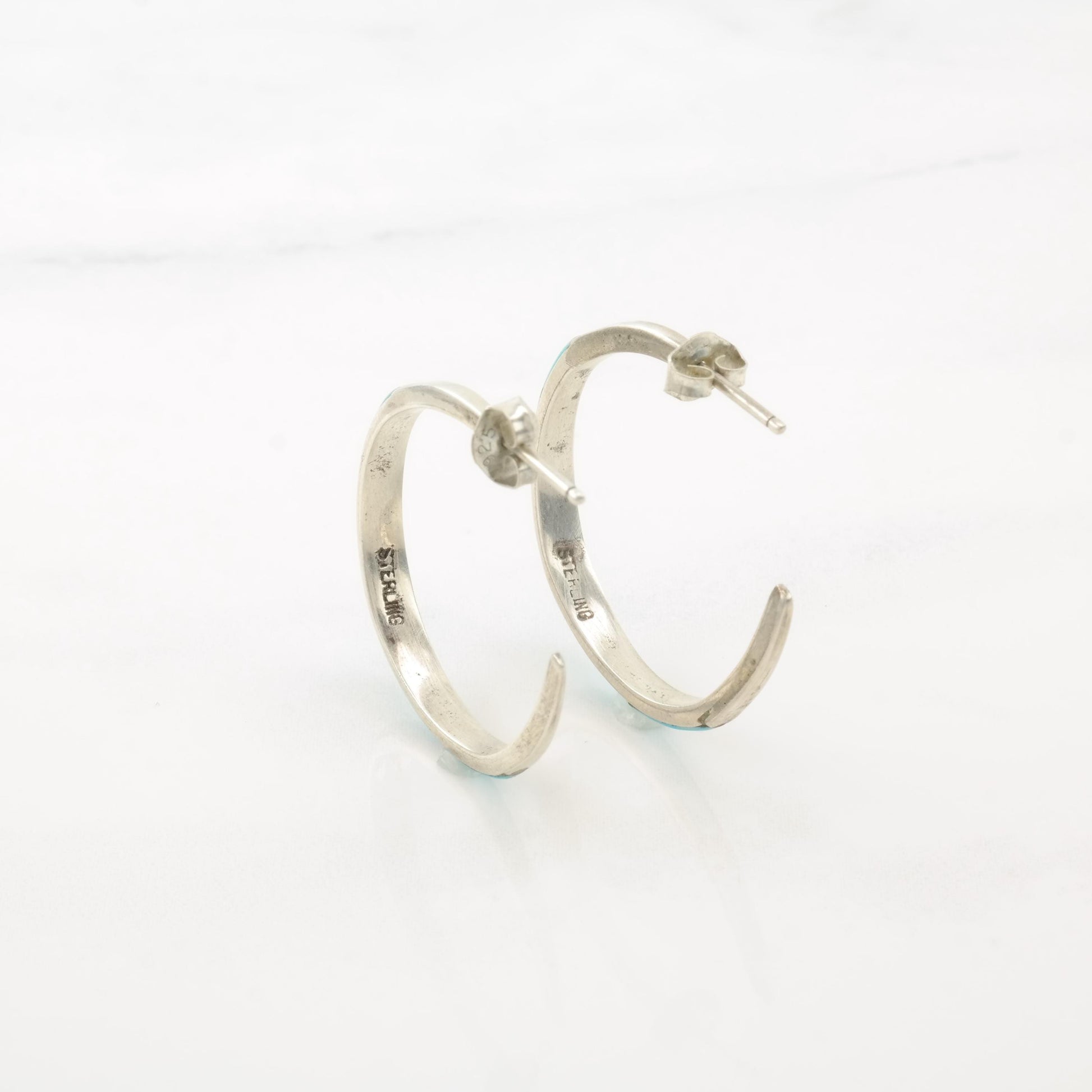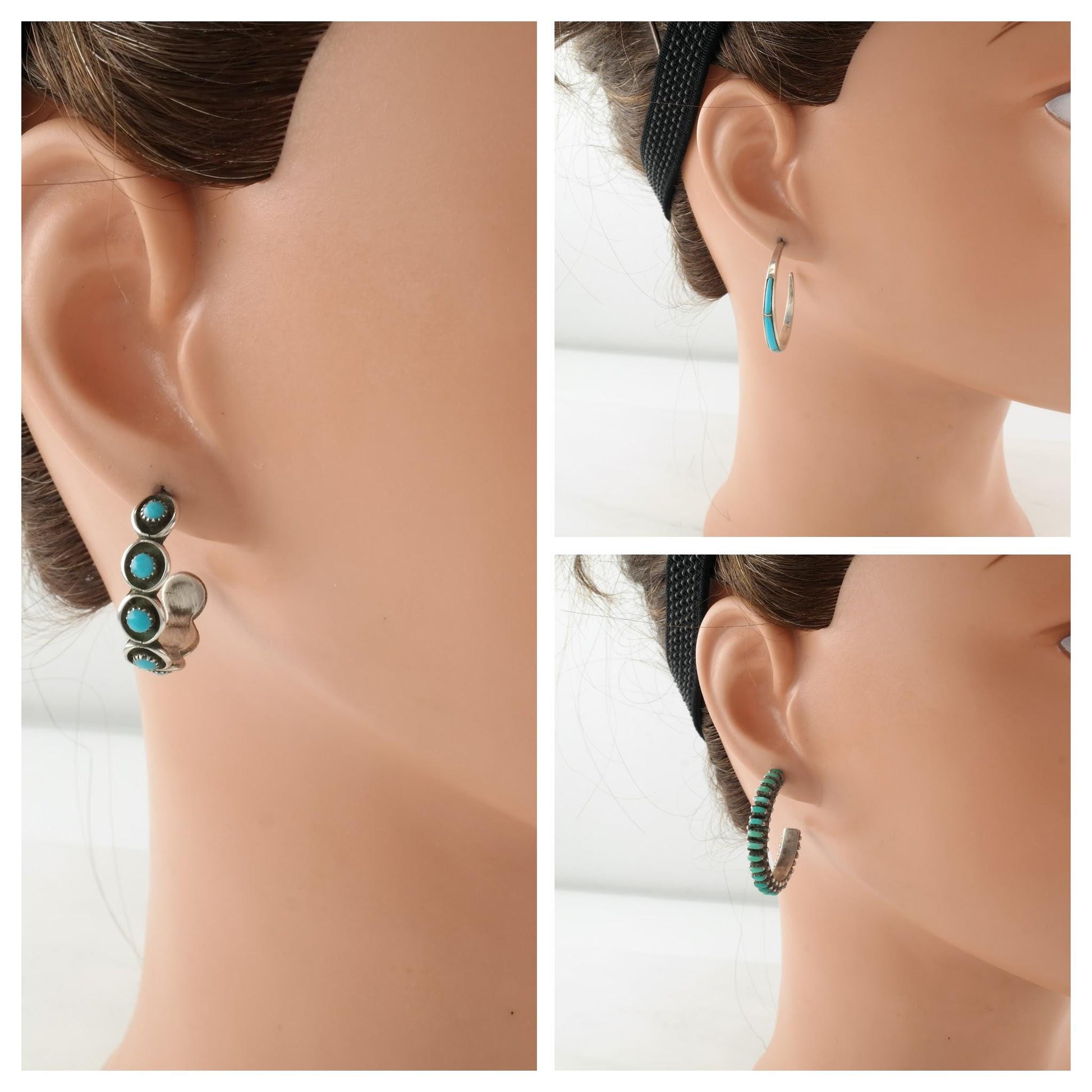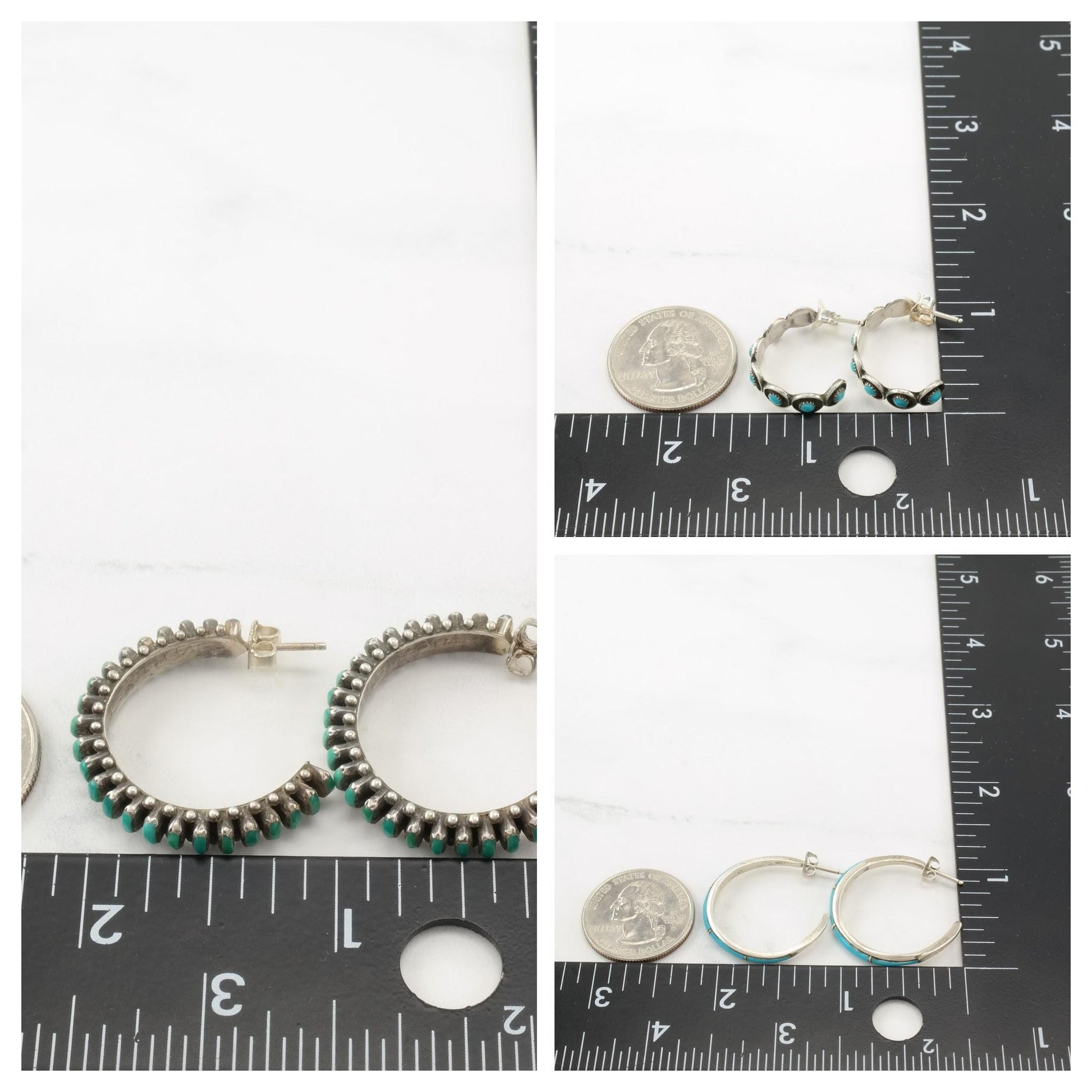 Choice of Vintage Native American Turquoise Cluster & Inlay Sterling Silver Hoop/Stud Earrings