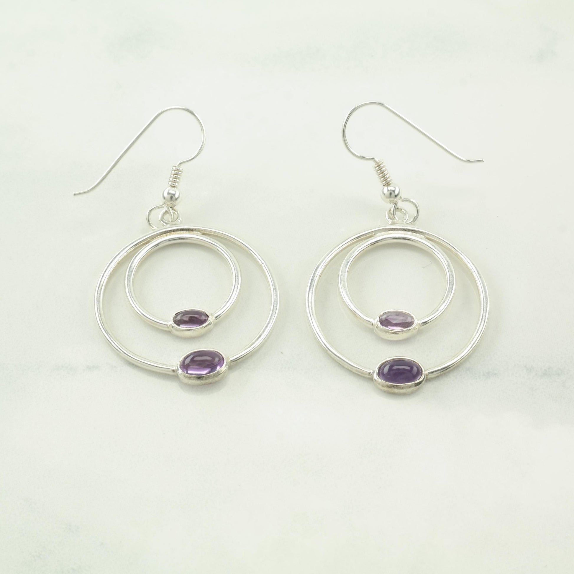 Choice of Vintage Pandora Purple Amethyst, Modernist Sterling Silver Fish Hook Earrings