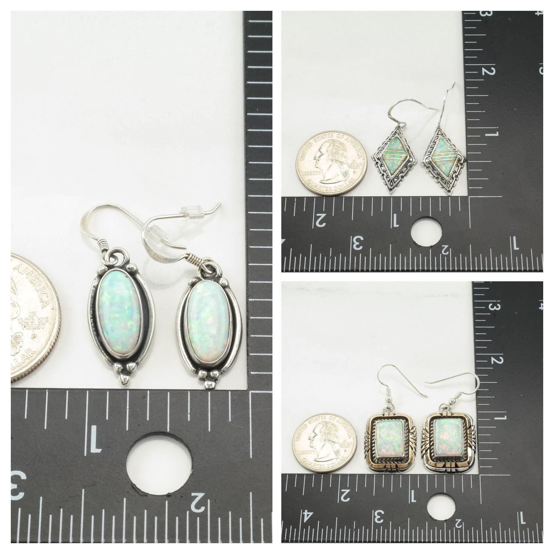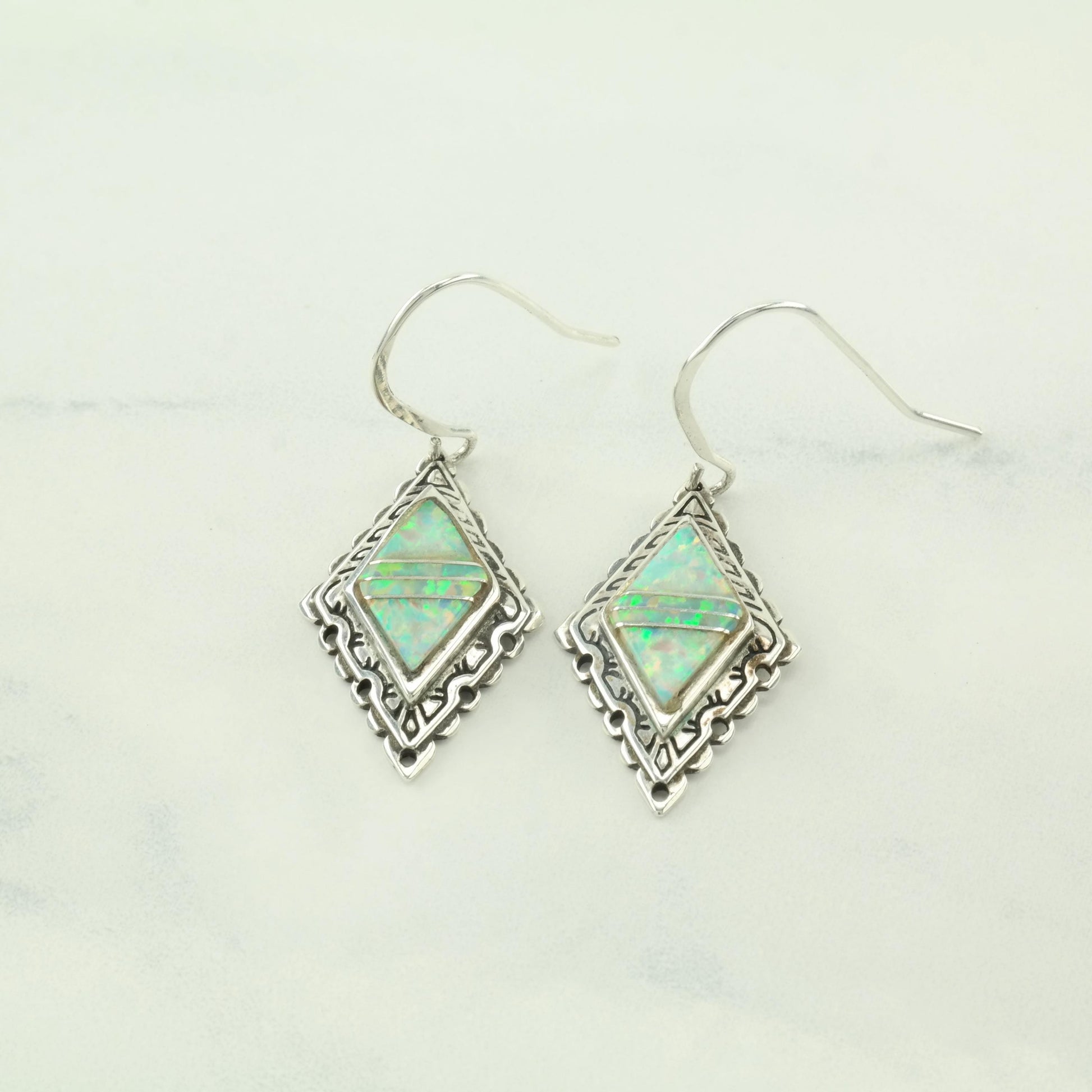 Choice of Vintage Southwest Rainbow, Lab Opal Sterling Silver Fish Hook Earrings