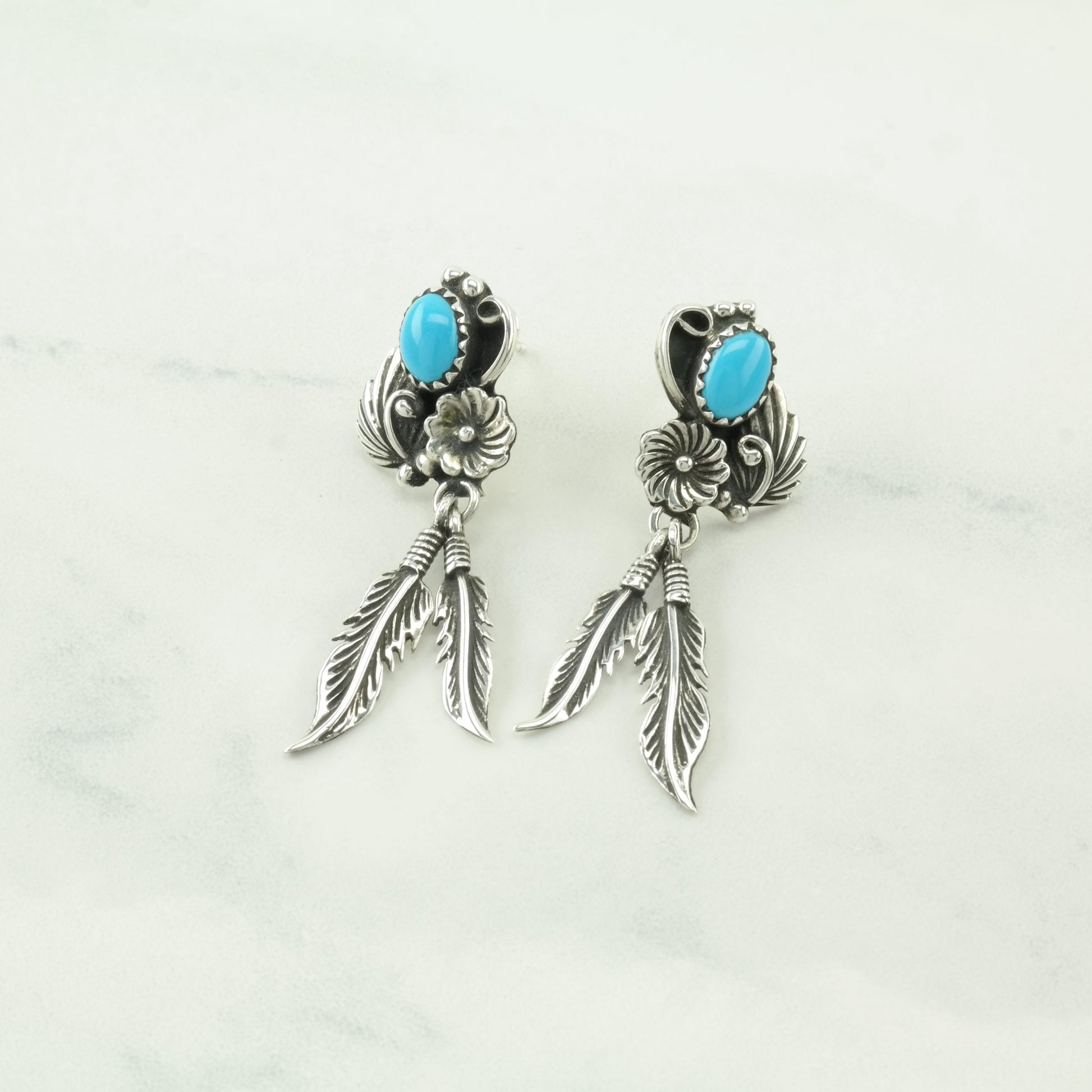 Choice of Vintage Southwest Turquoise, Blue Block Turquoise Feather, Sterling Silver Pierced Earrings