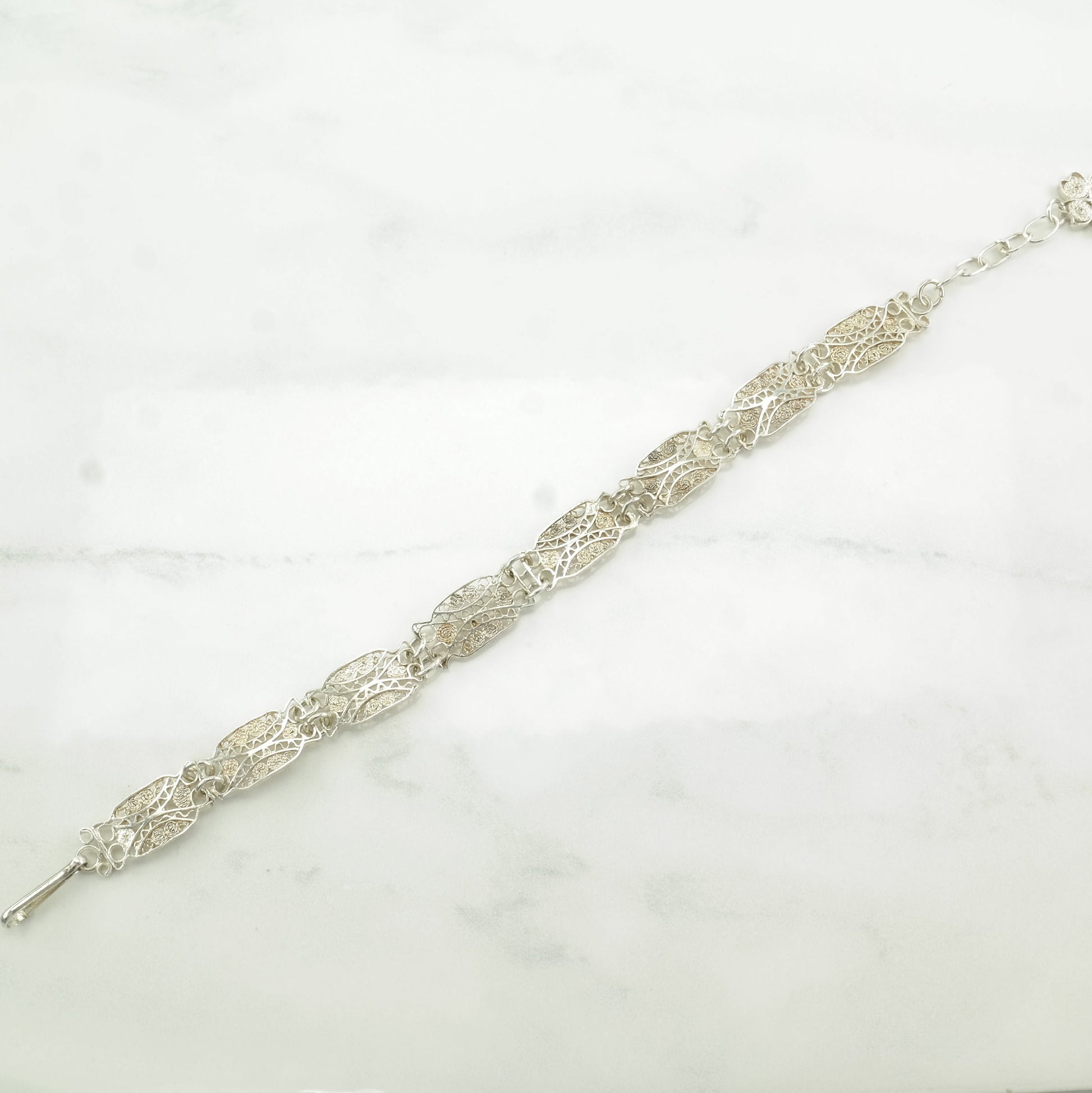 Choice of Vintage Sterling Silver Filigree Link Bracelet Filigree