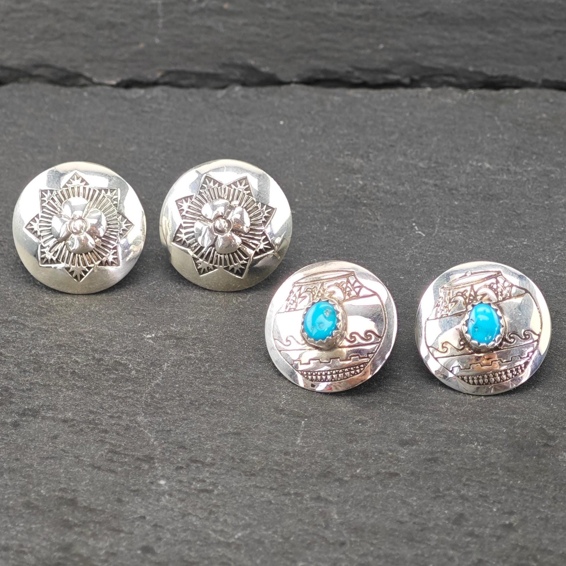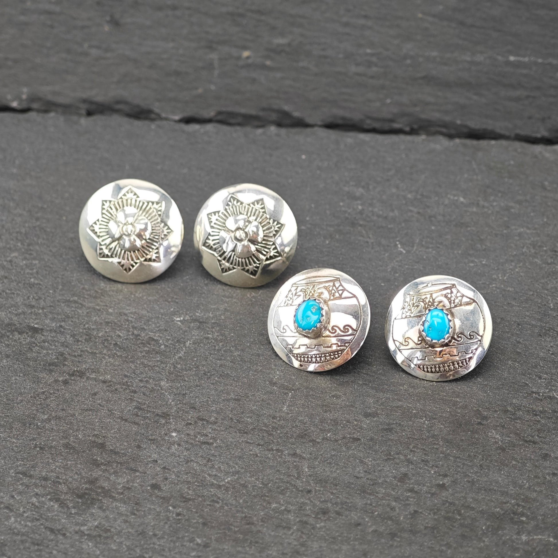 B: Small Concho Turquoise Stamped, Dome Natural, industry standard treatment if any