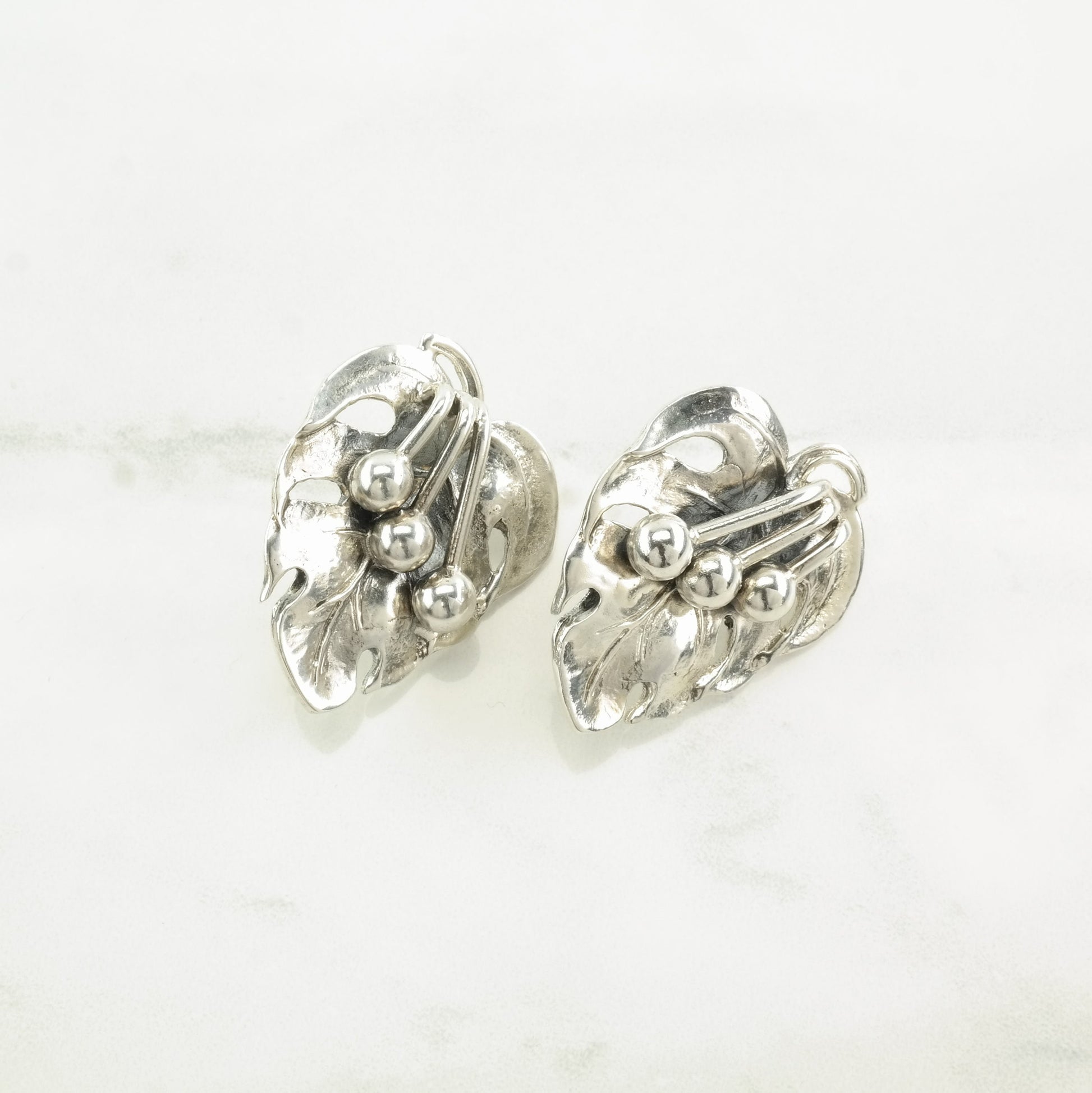 These vintage sterling silver earrings are 1 1/4" inches long, and 1 1/16" inch wide