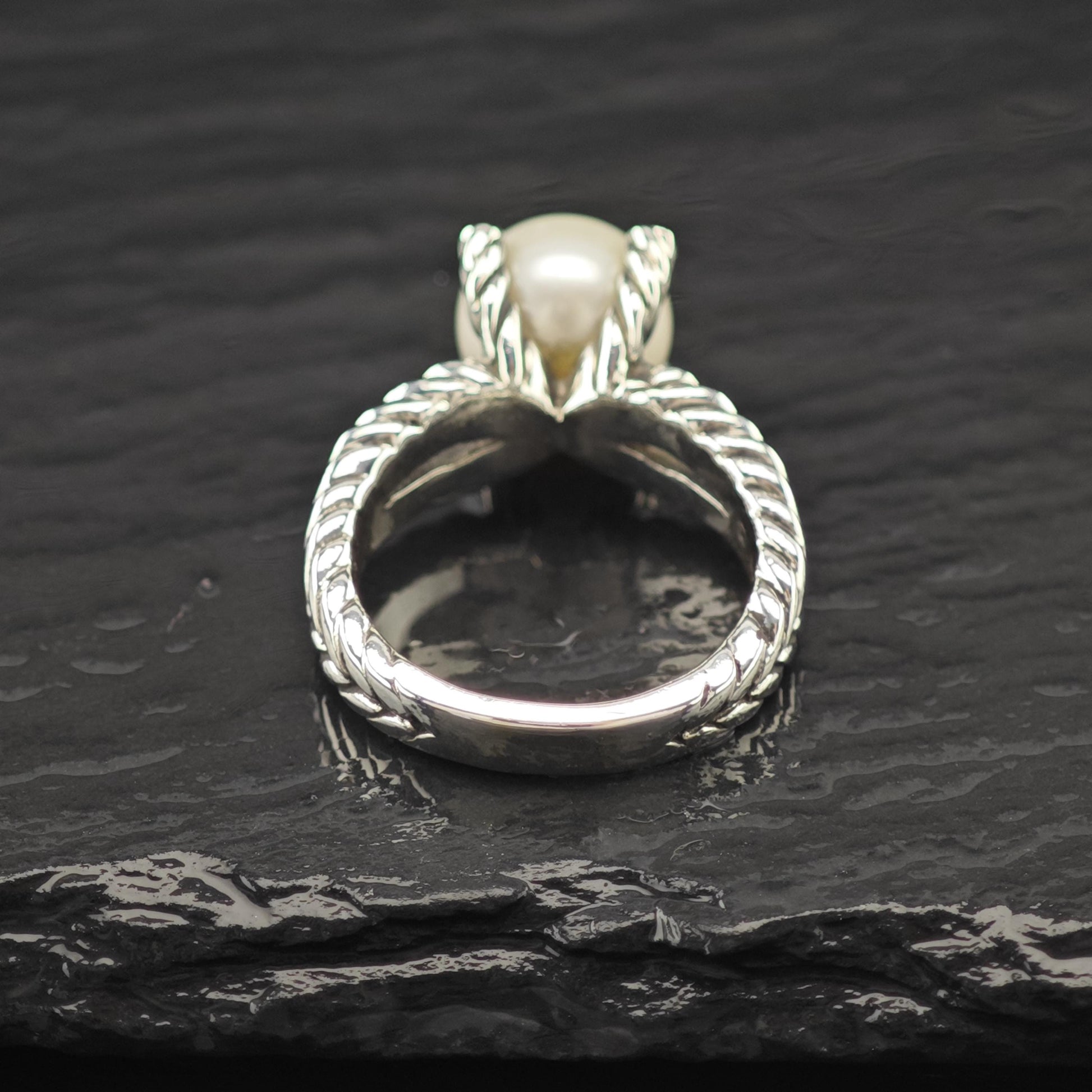 David Yurman 10mm Pearl Diamond Cable Ring Sterling Silver