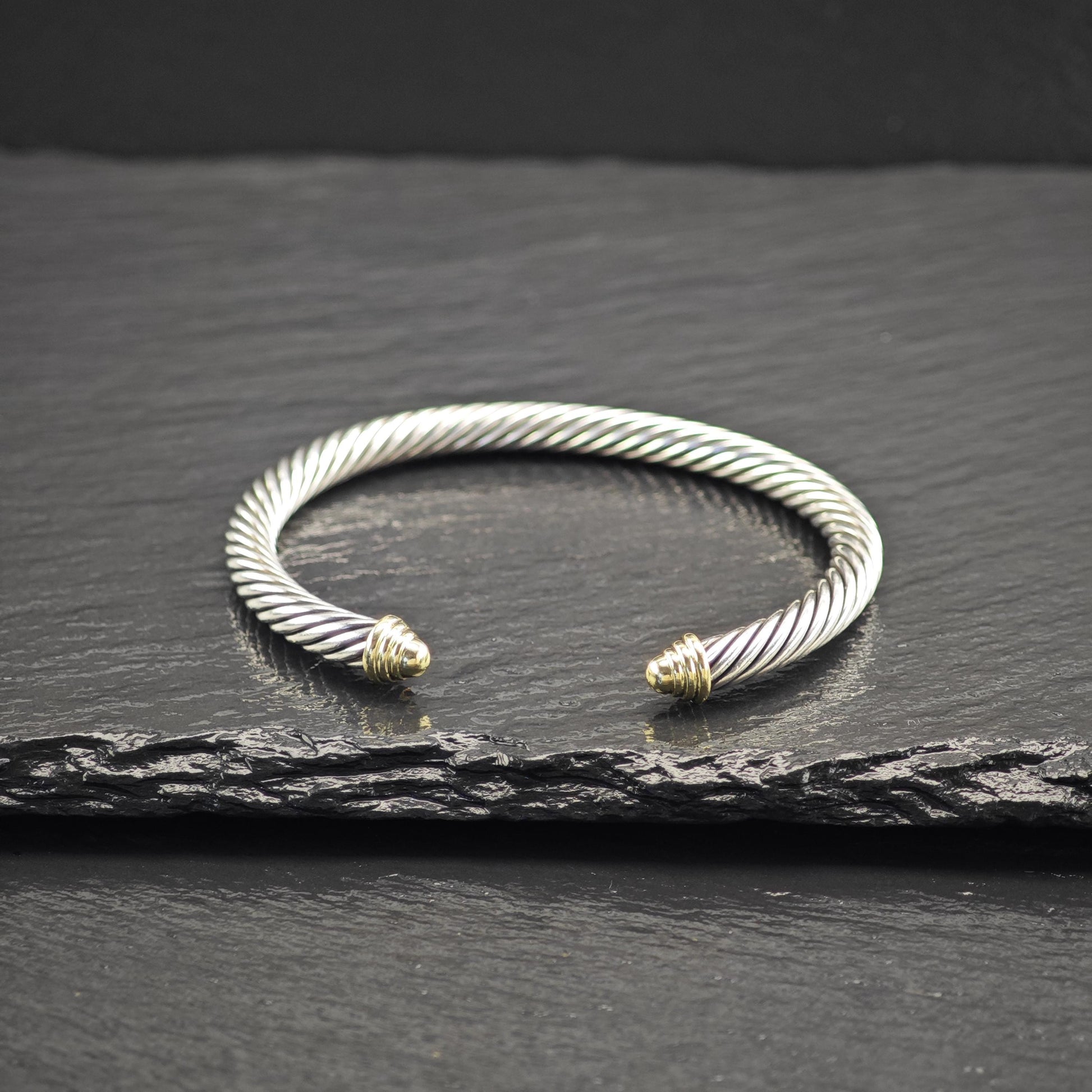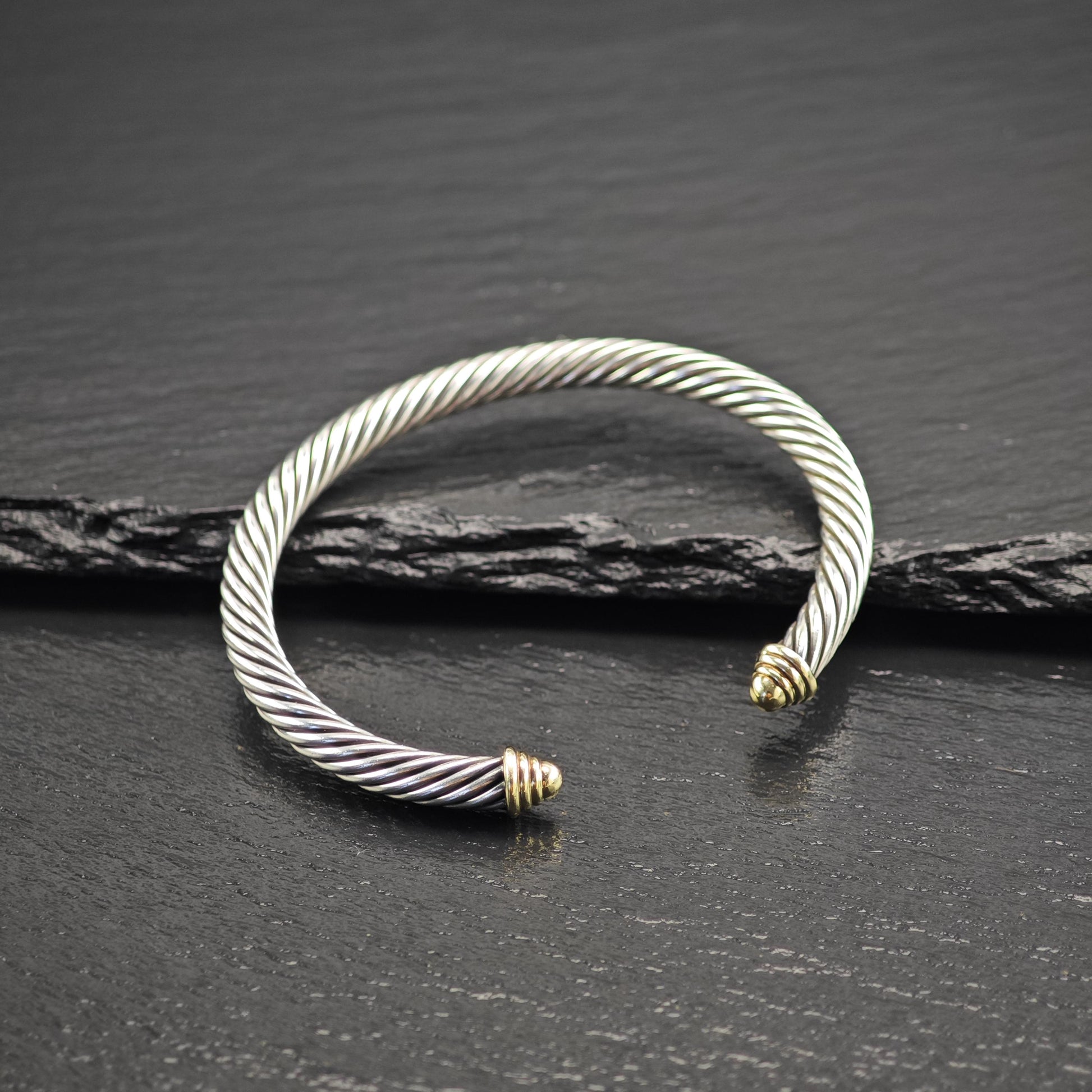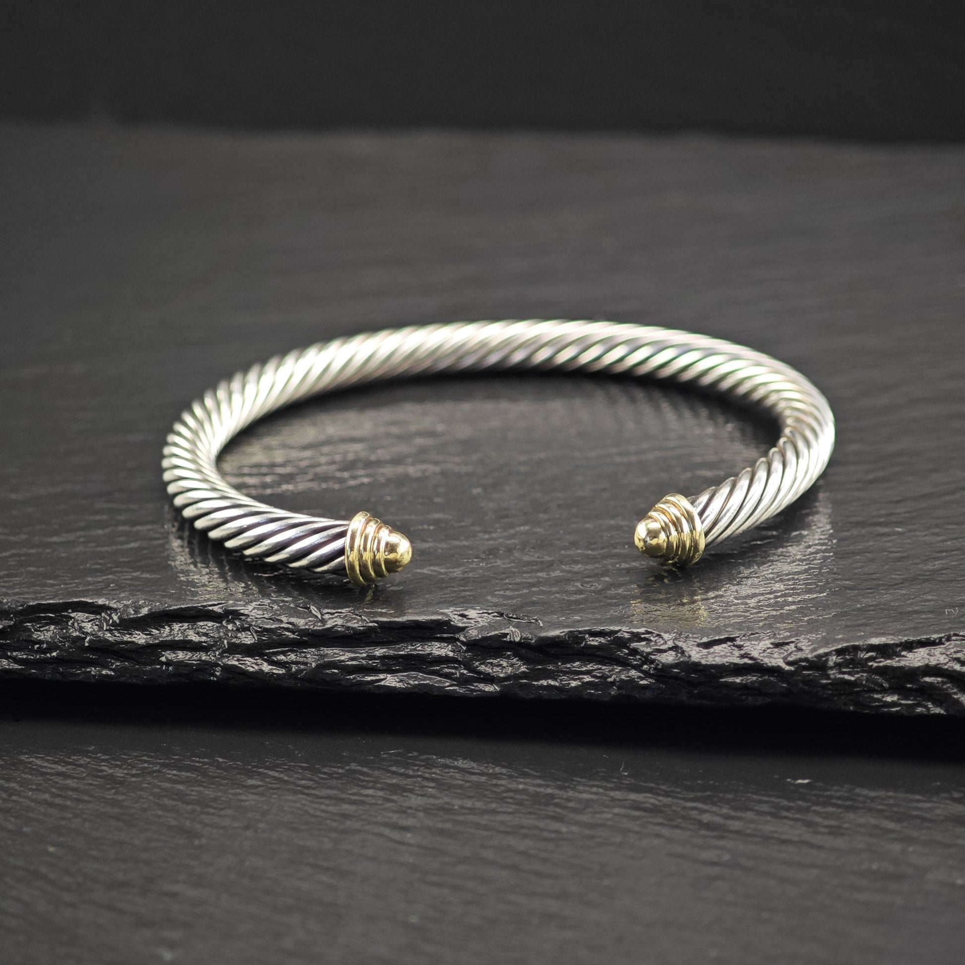 David Yurman 5mm 14K Gold Accent Cable Cuff Bracelet Sterling SIlver