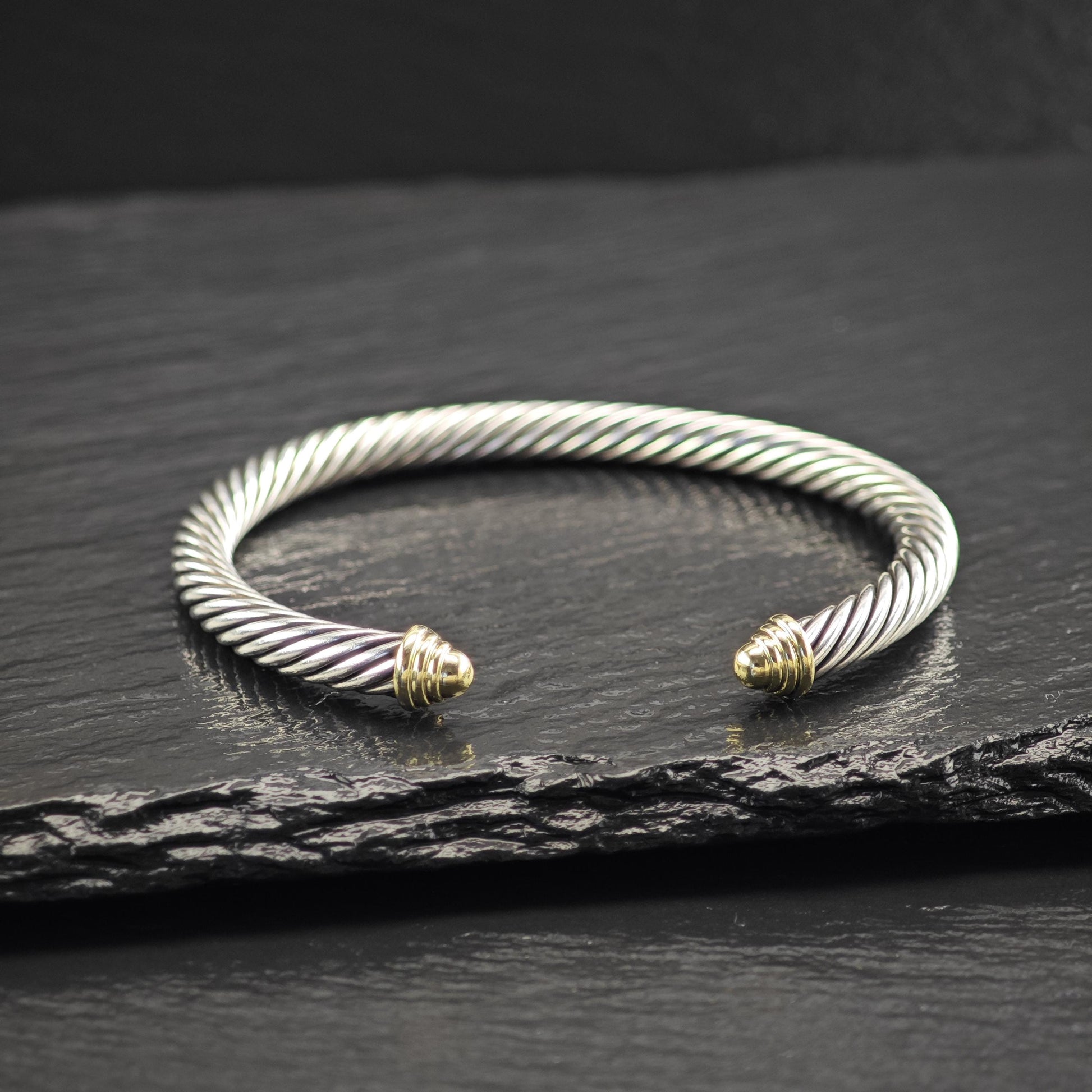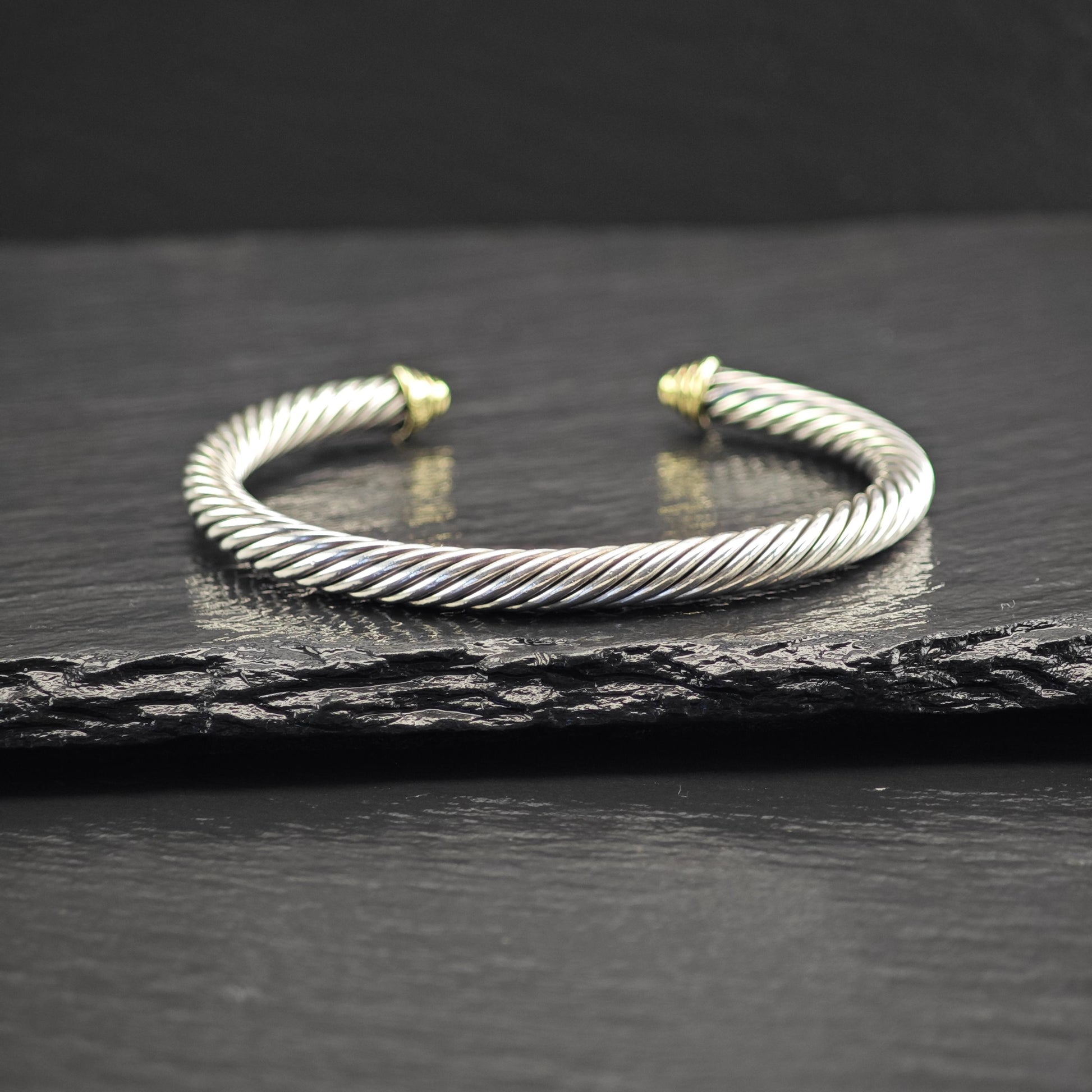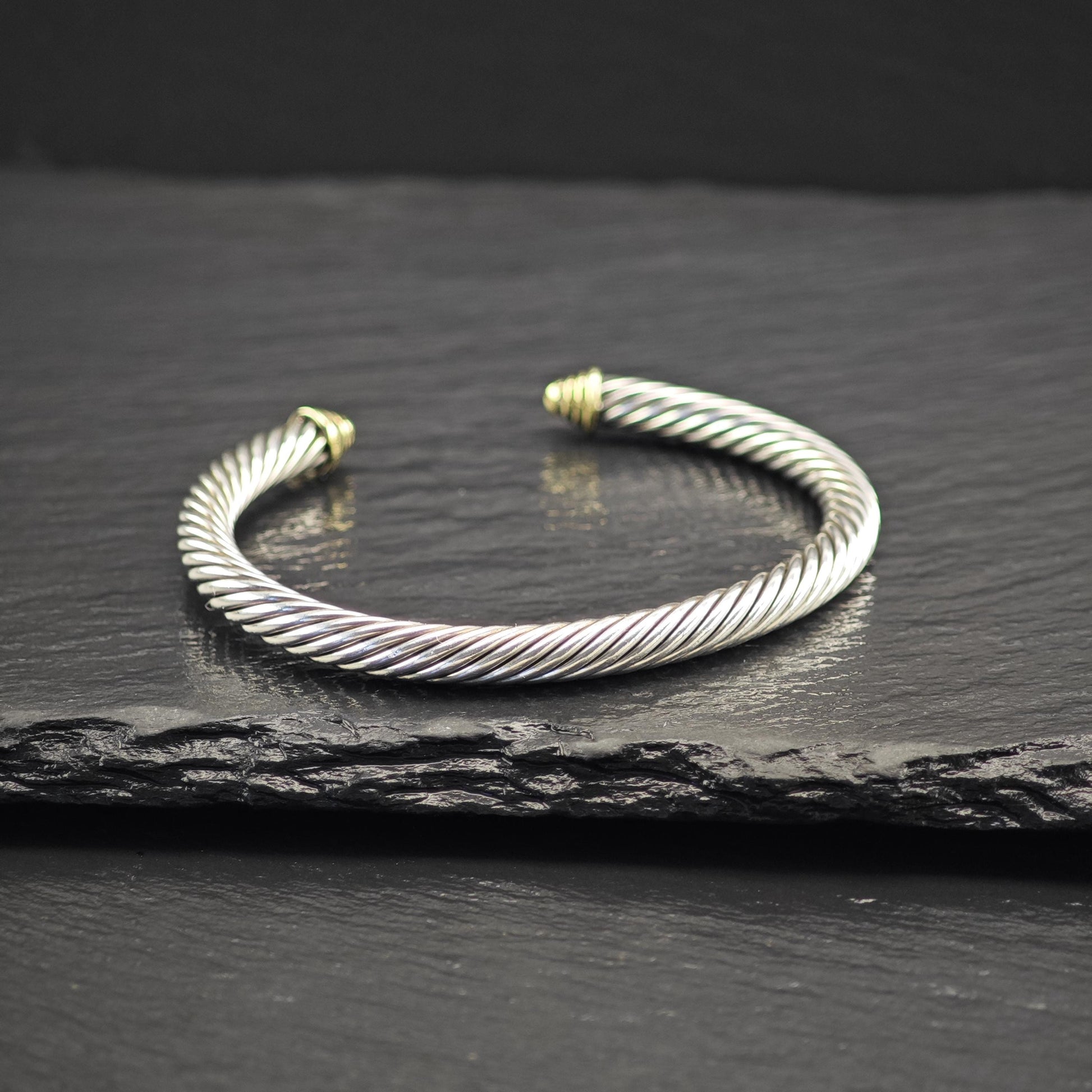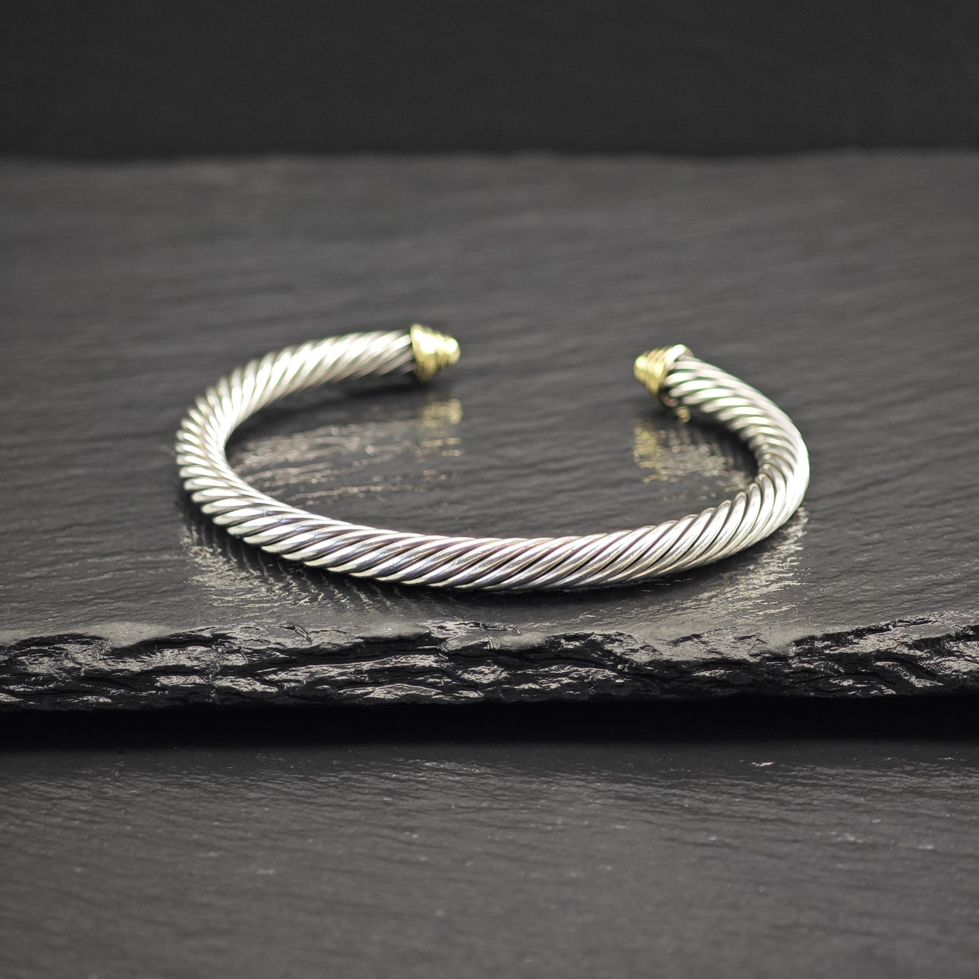 David Yurman 5mm 14K Gold Accent Cable Cuff Bracelet Sterling SIlver