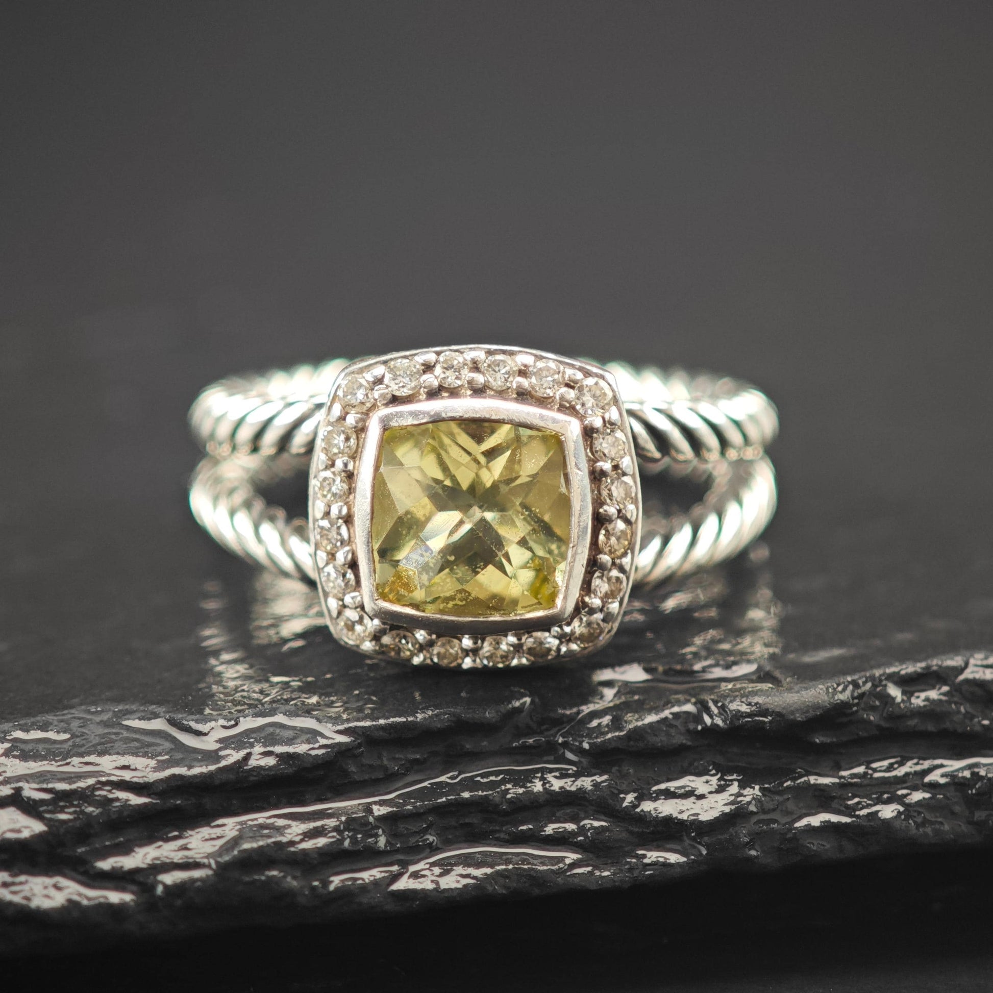 David Yurman Albion Prasiolite Diamond Ring Sterling Silver