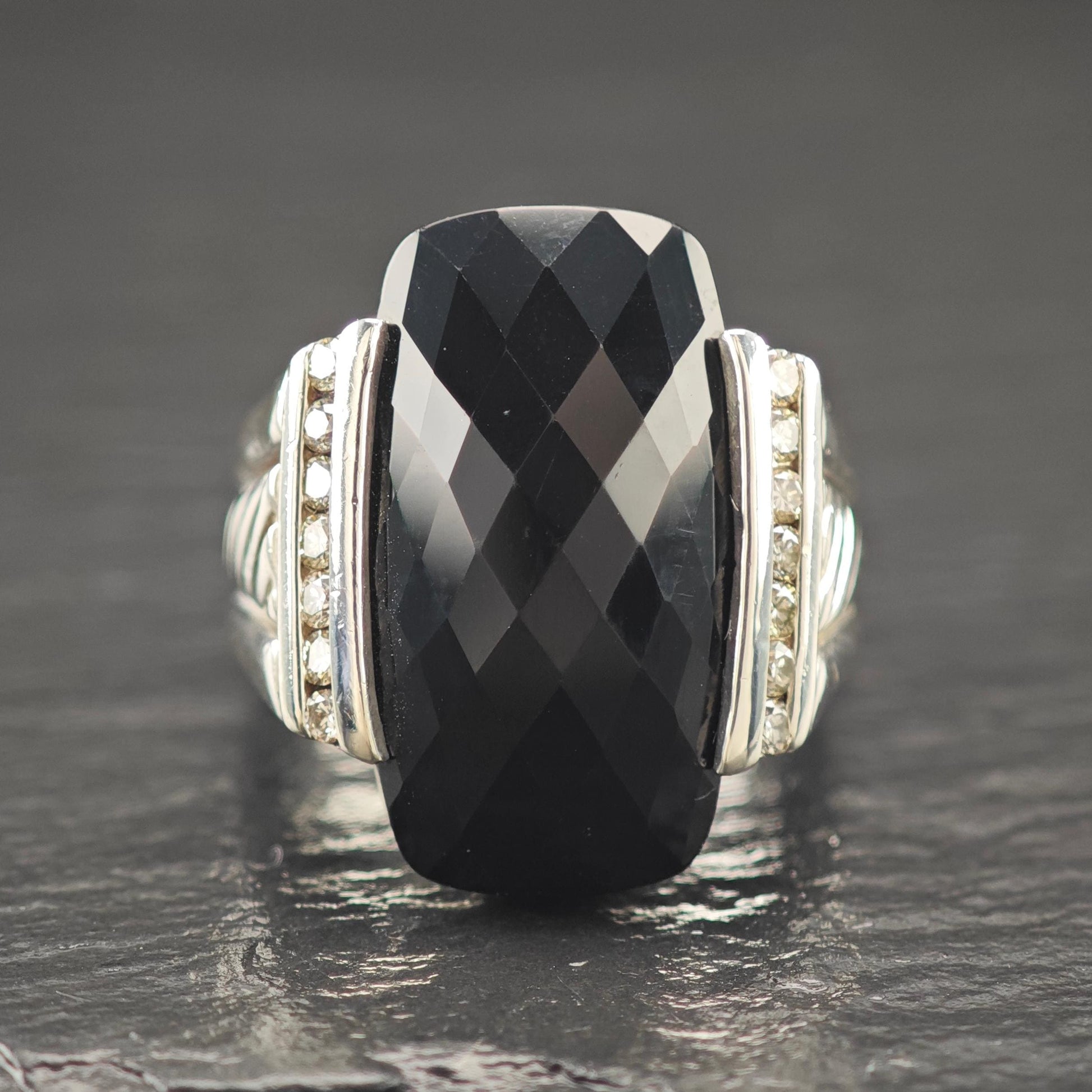 David Yurman Diamond Black Onyx Ring Sterling Silver