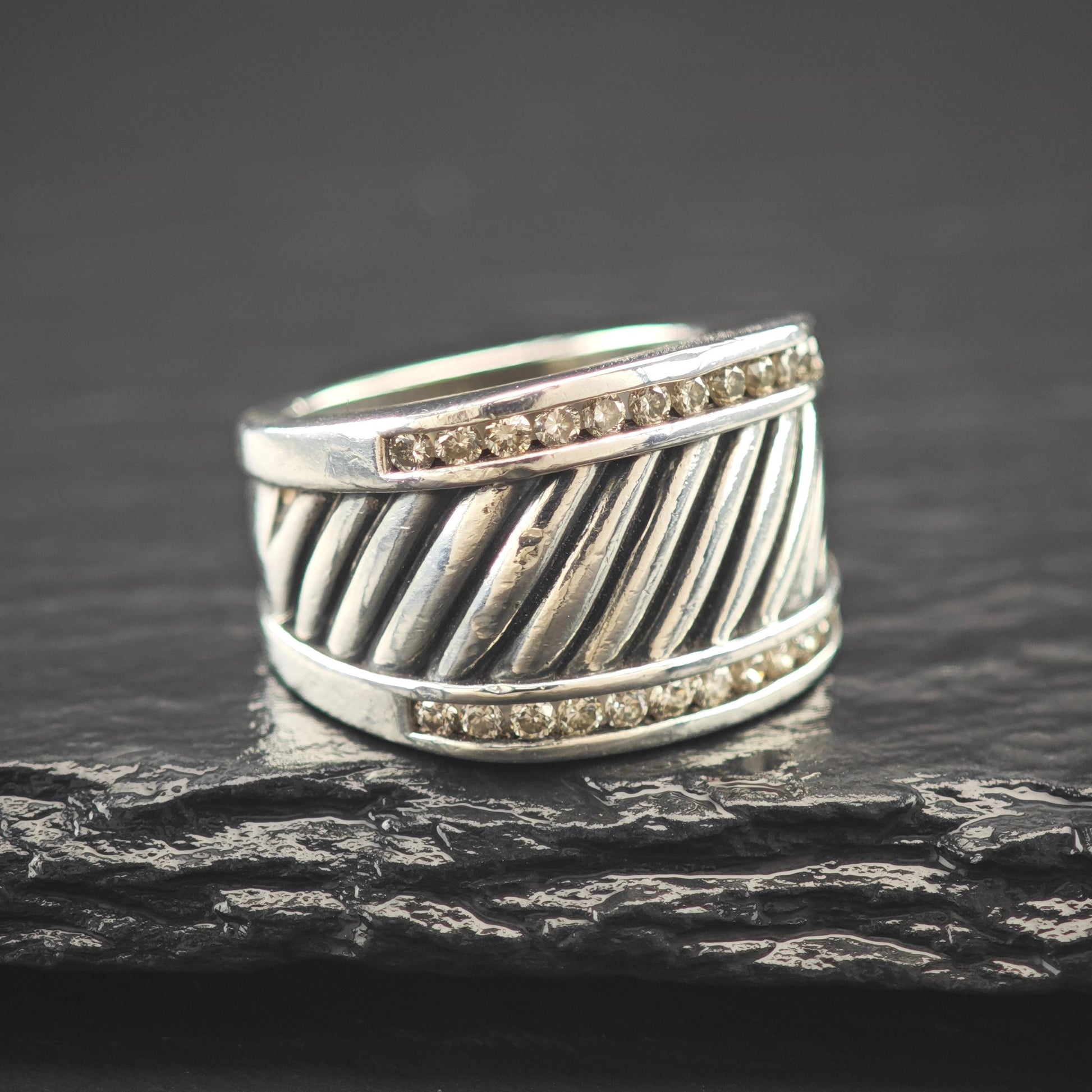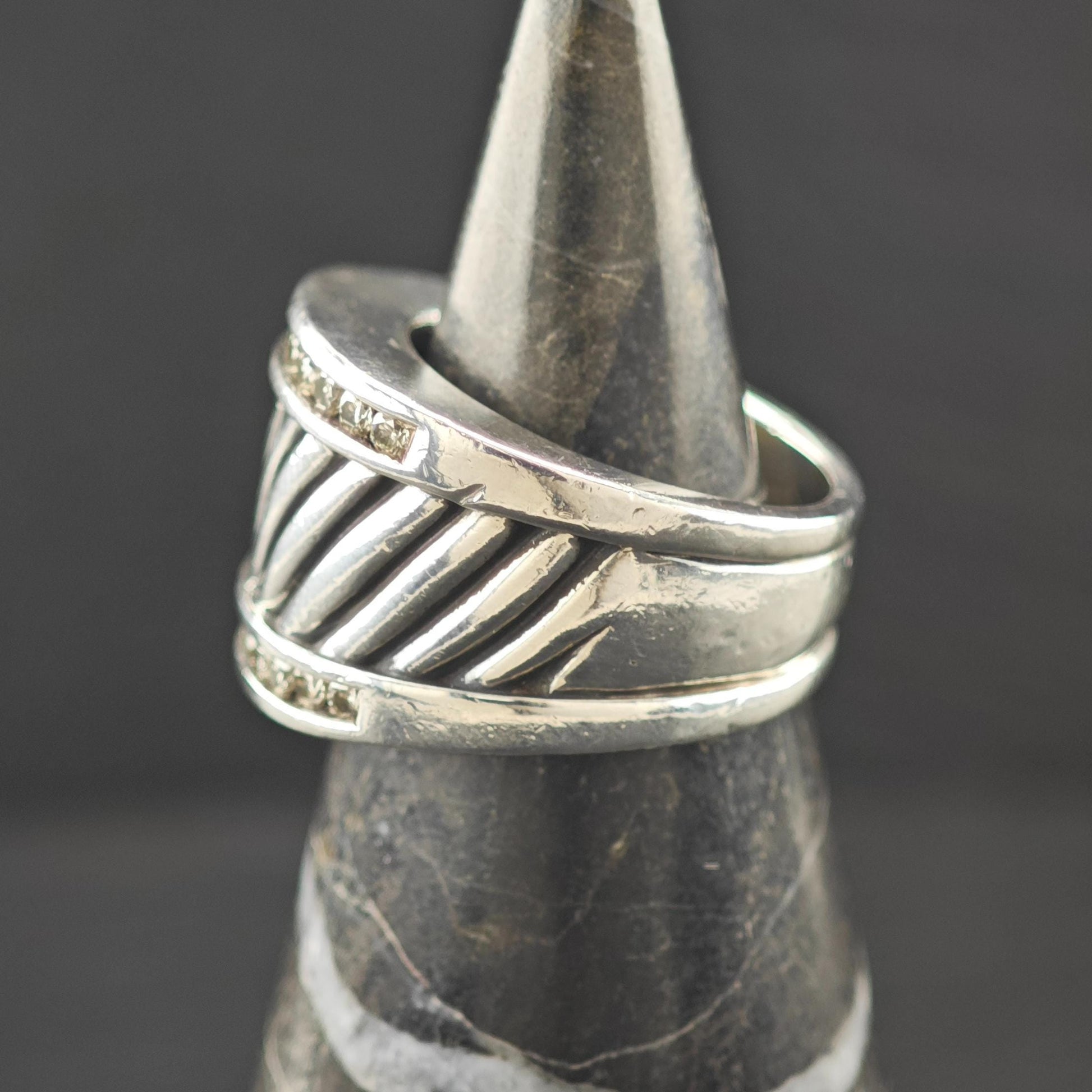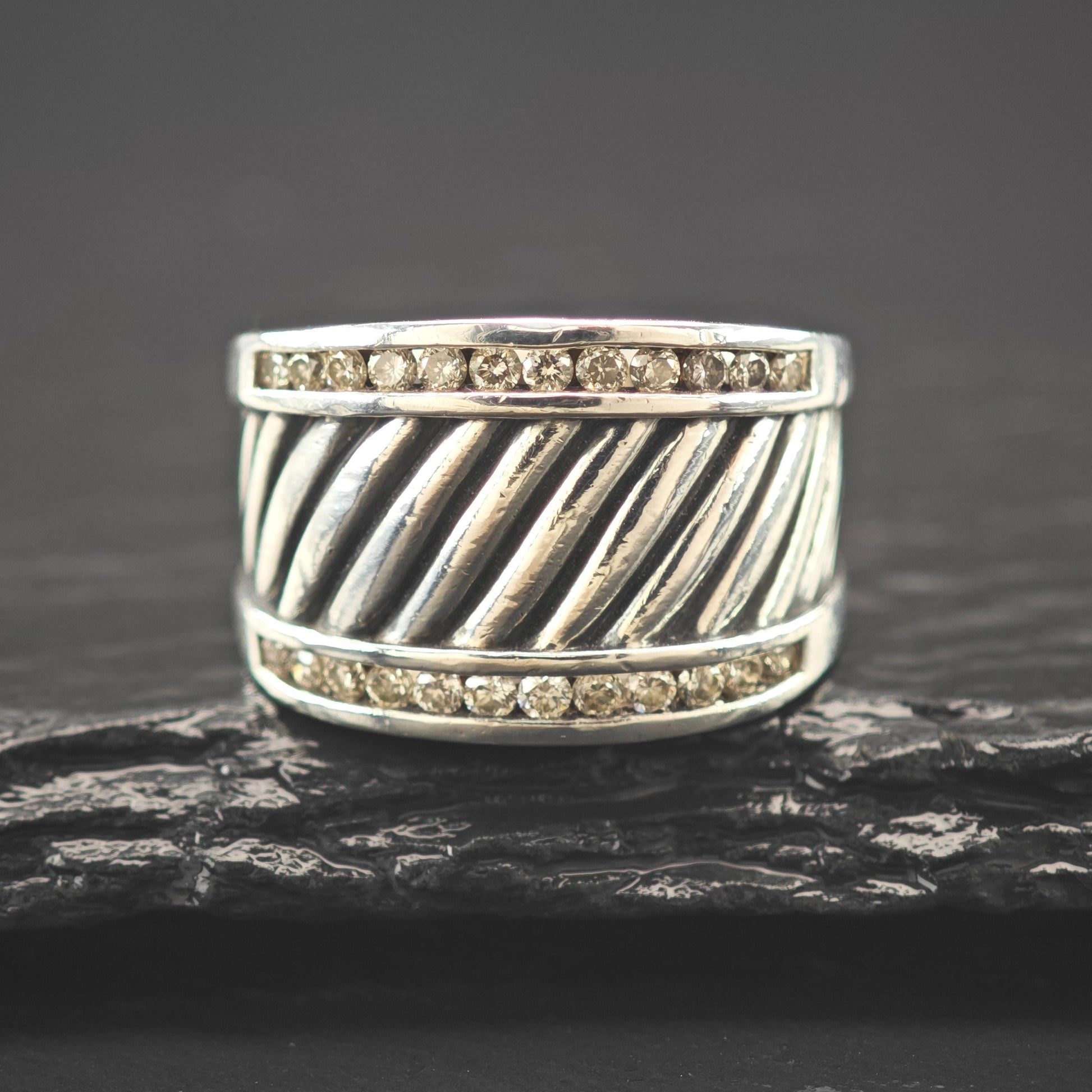David Yurman Diamond Ring Cigar Band Sterling Silver