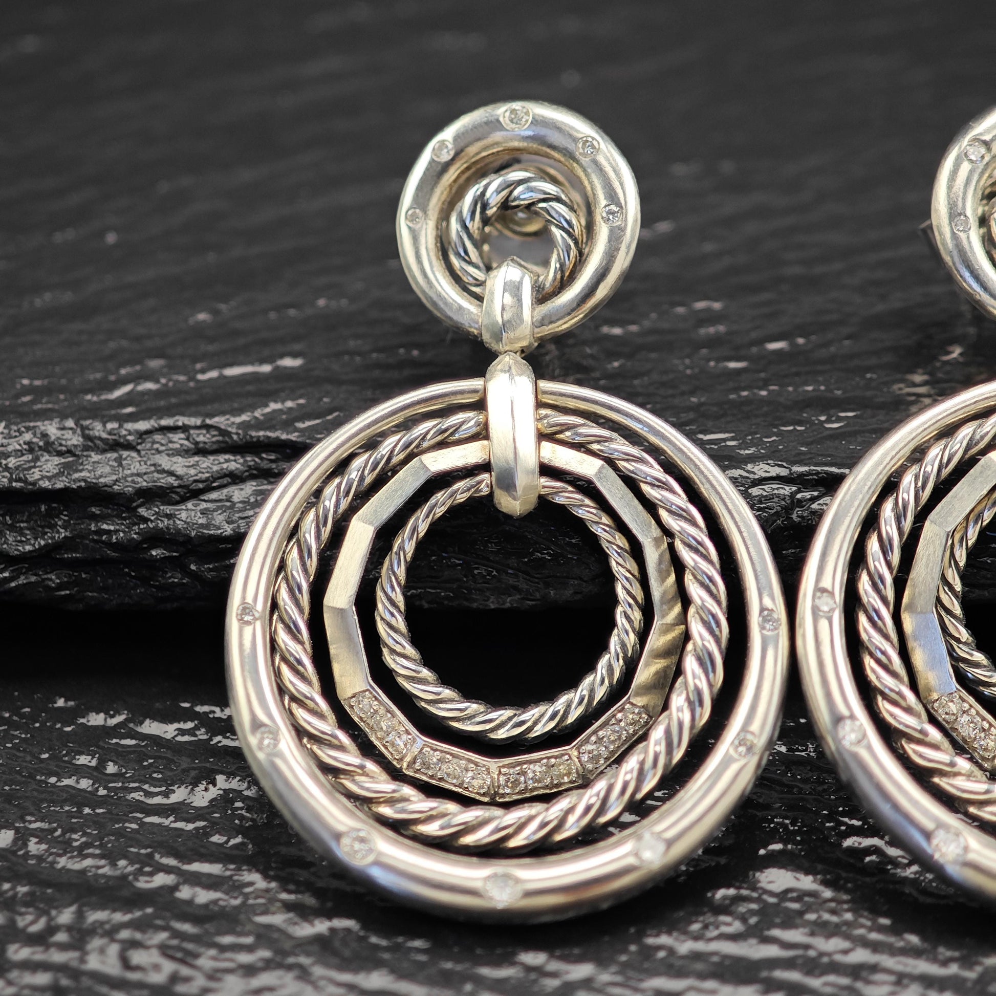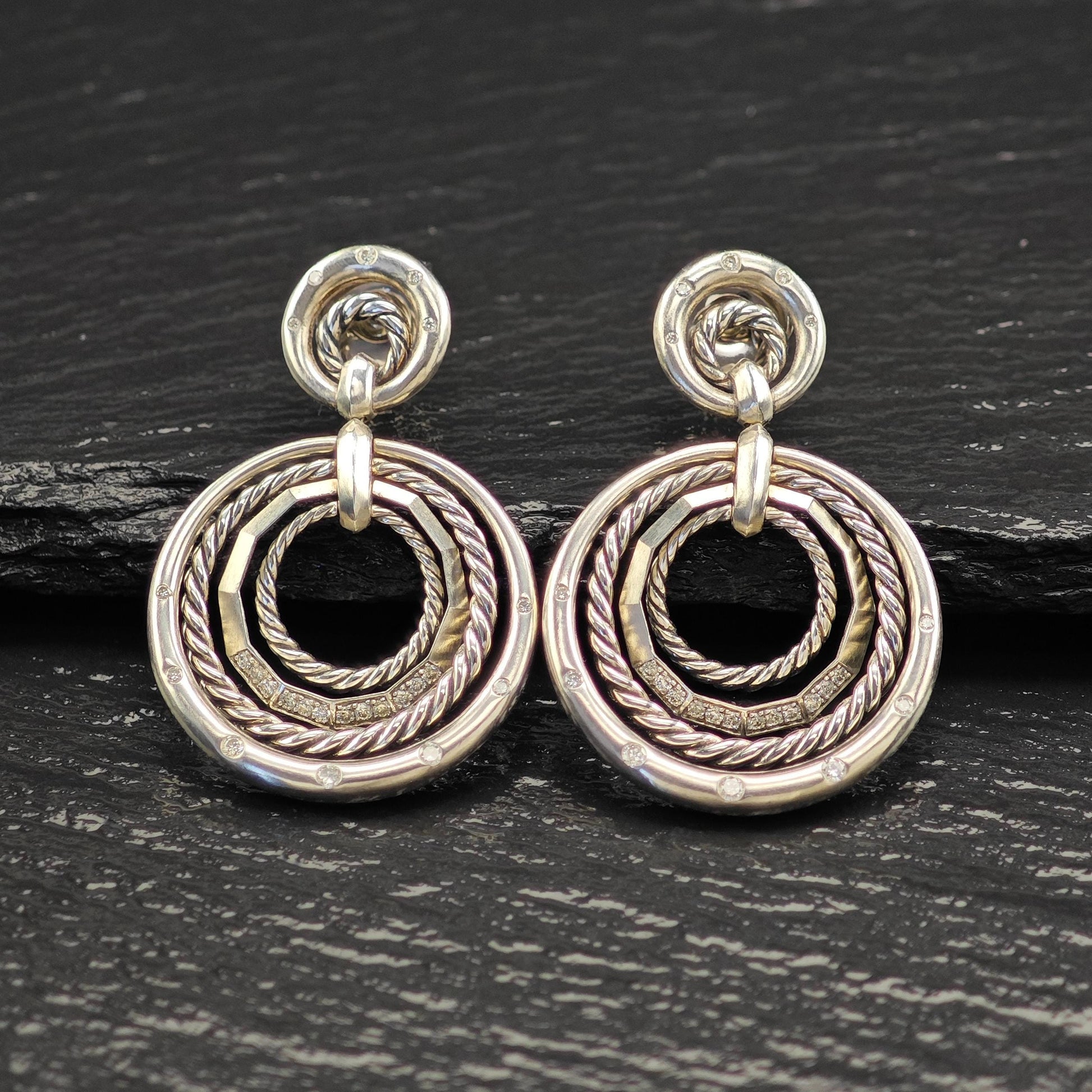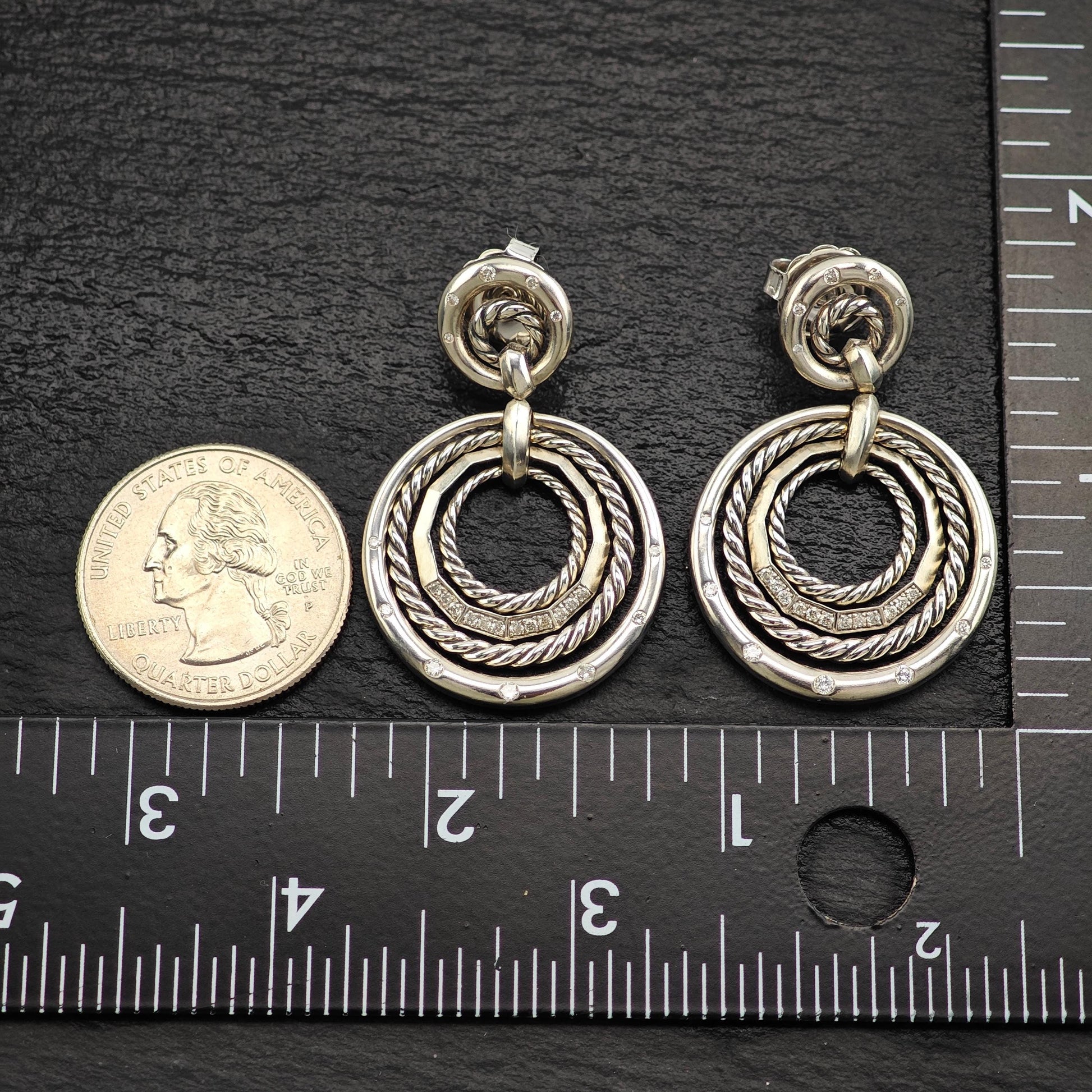 David Yurman Diamonds Stax, 14k Gold Posts Stud/Dangle Earrings Sterling Silver