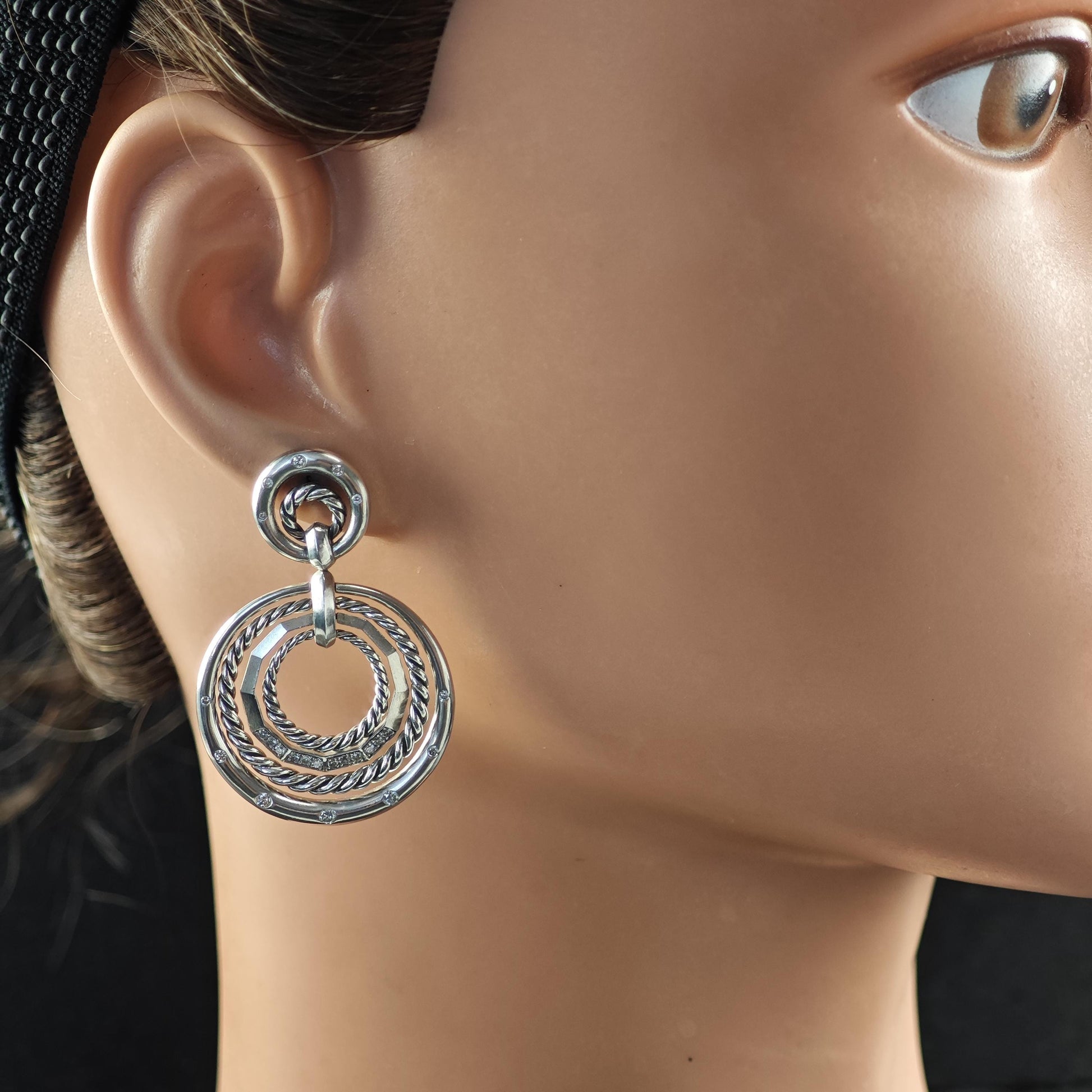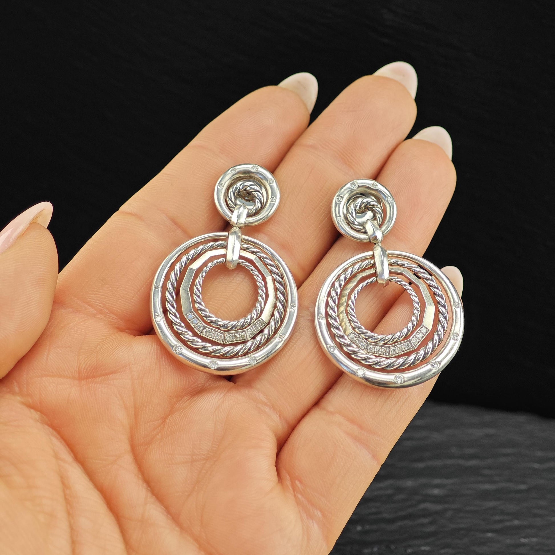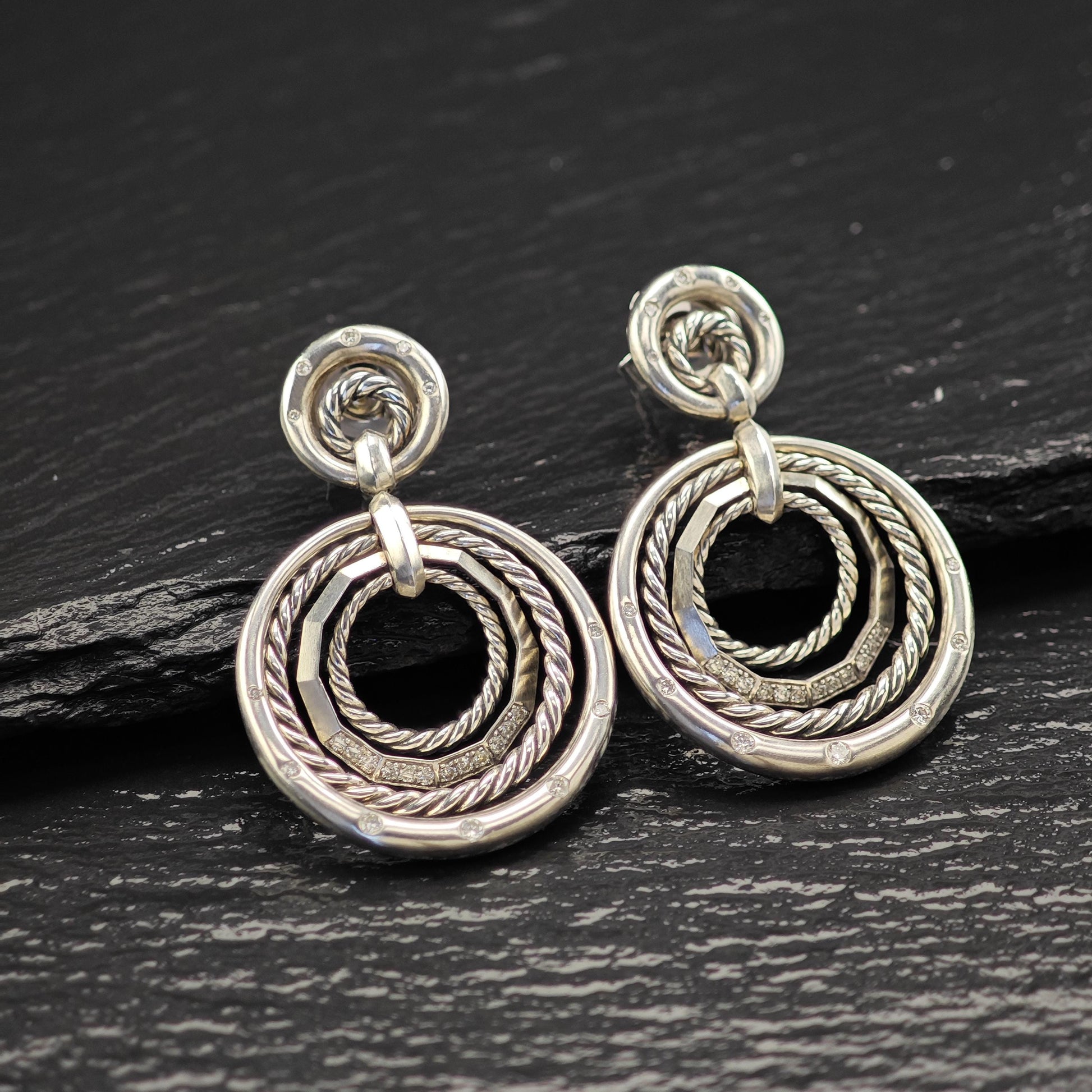 David Yurman Diamonds Stax, 14k Gold Posts Stud/Dangle Earrings Sterling Silver