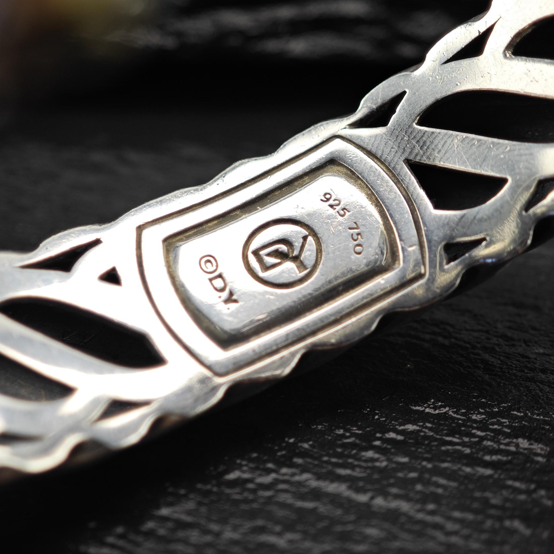 Discover the elegance of the David Yurman Wide Cuff Bracelet, featuring a stunning 15mm design with luxurious 18k gold accents and crafted from high-quality sterling silver. This exquisite piece is stamped with the hallmark symbols 925, 750, and the copyright D.Y., along with the iconic DY overlapped signature, ensuring its authenticity as a David Yurman creation.