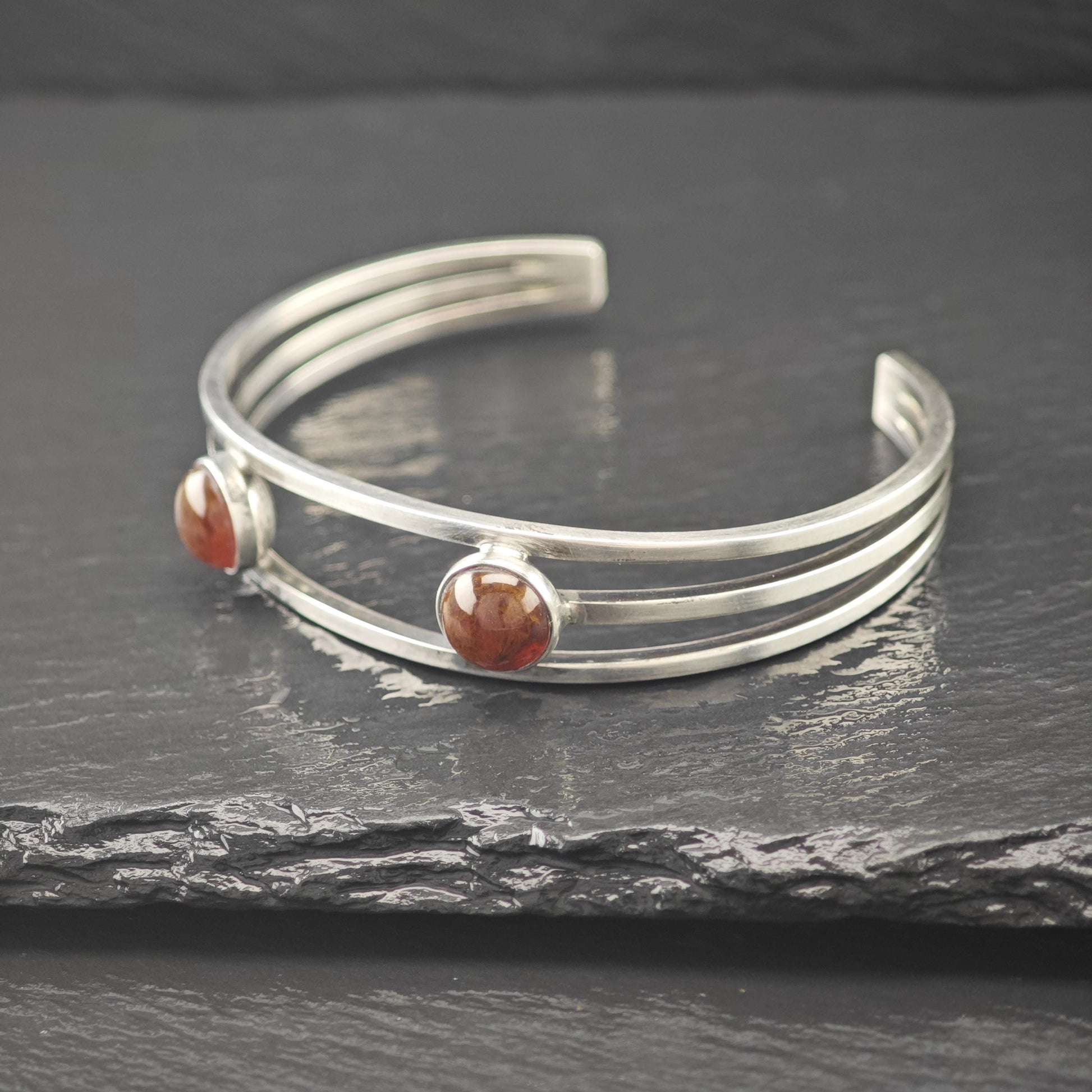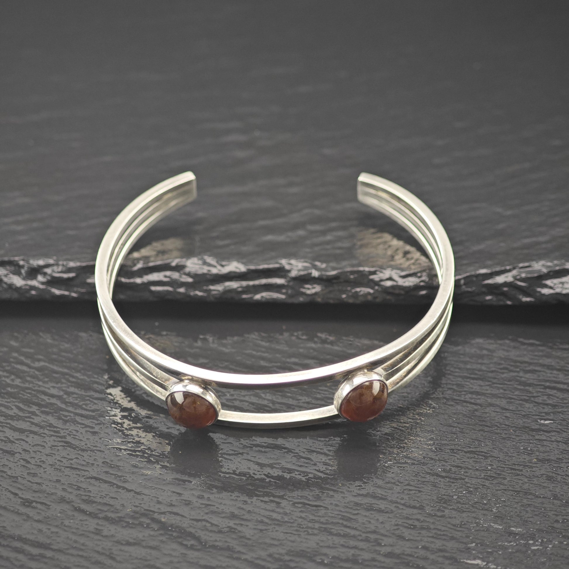Denmark Silver Amber Modernist Cuff Bracelet Sterling N. E From