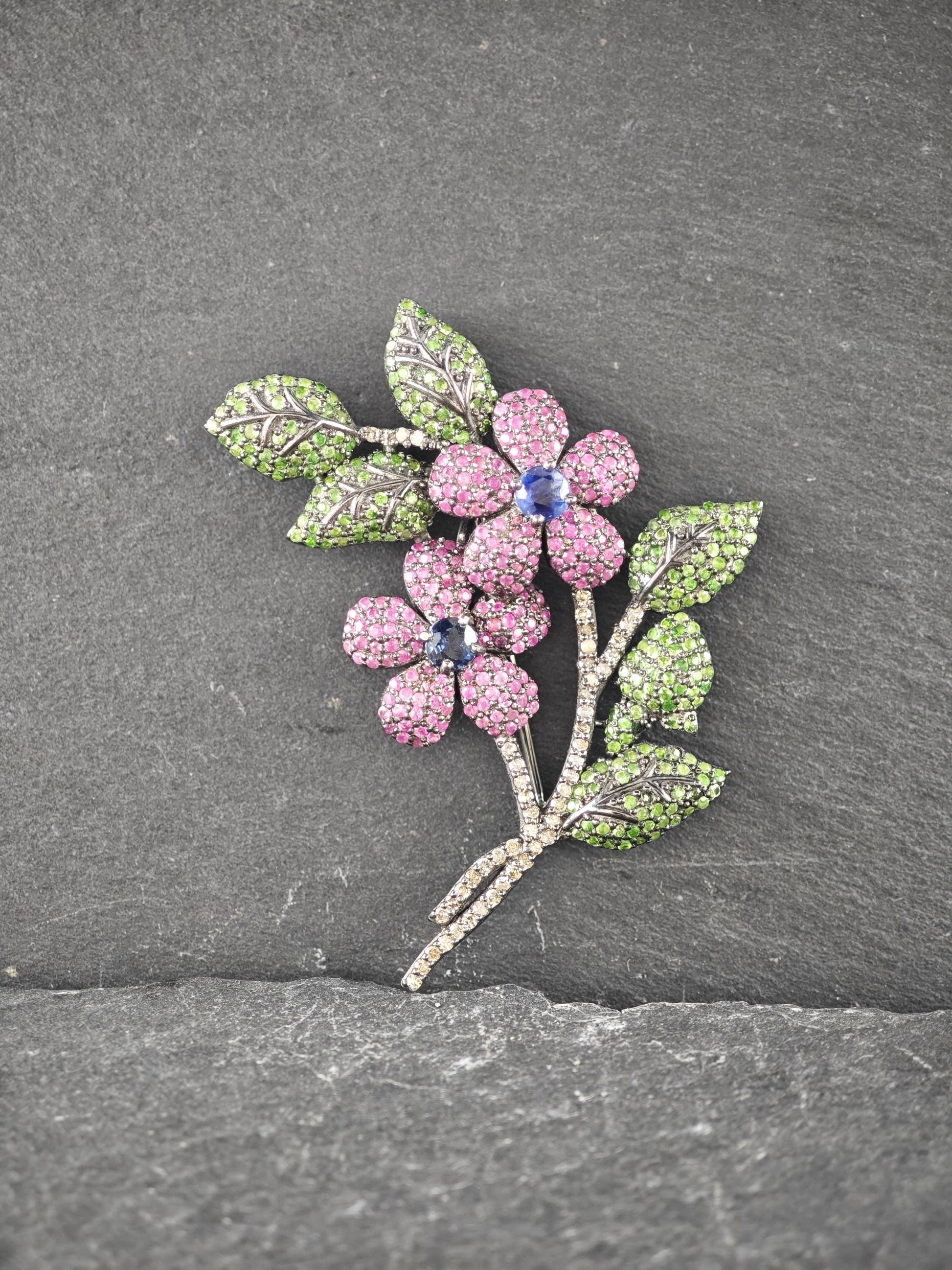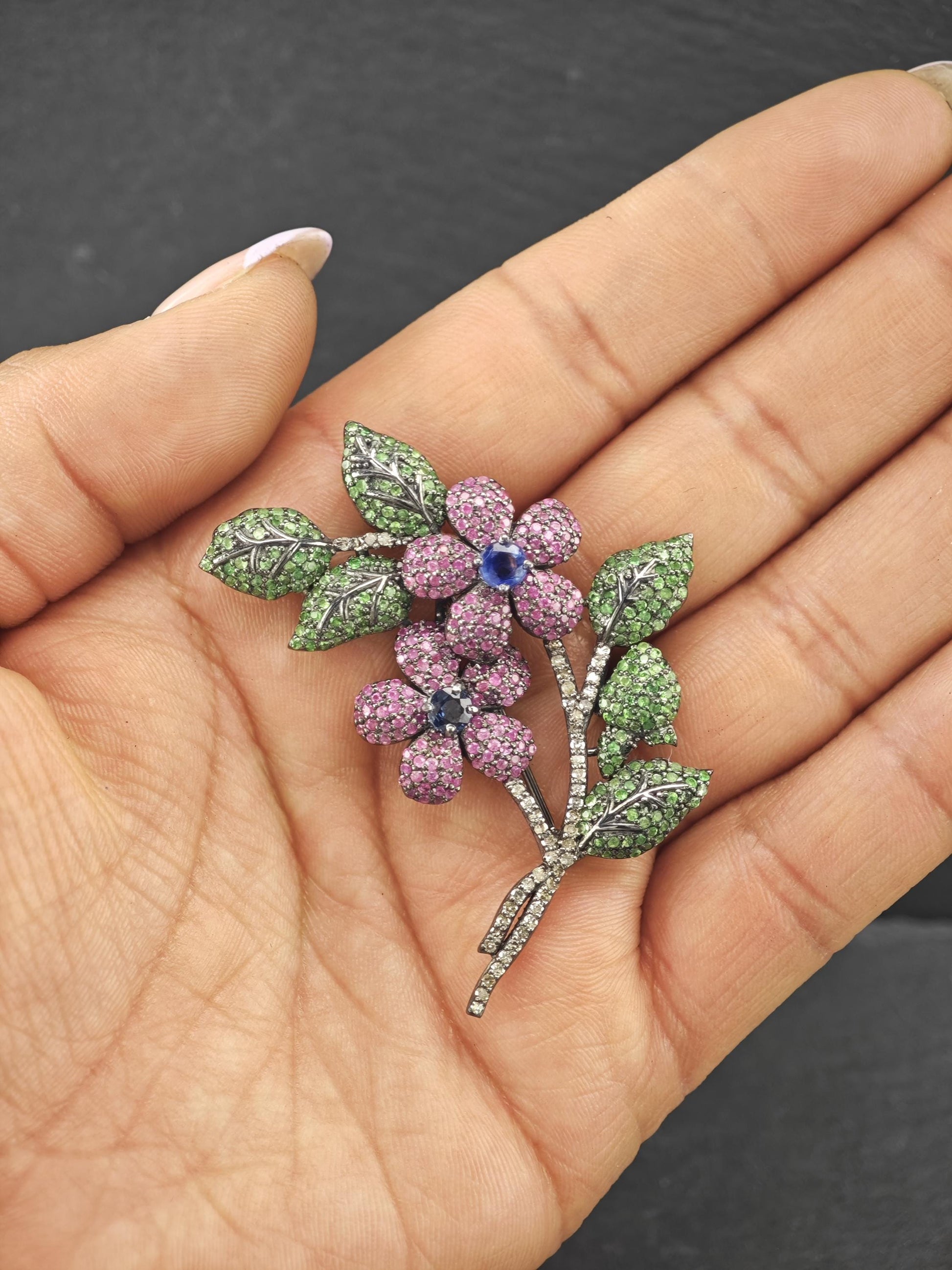 Stone or design featured on this brooch is Diamond, Ruby, Sapphire & Peridot Flowers