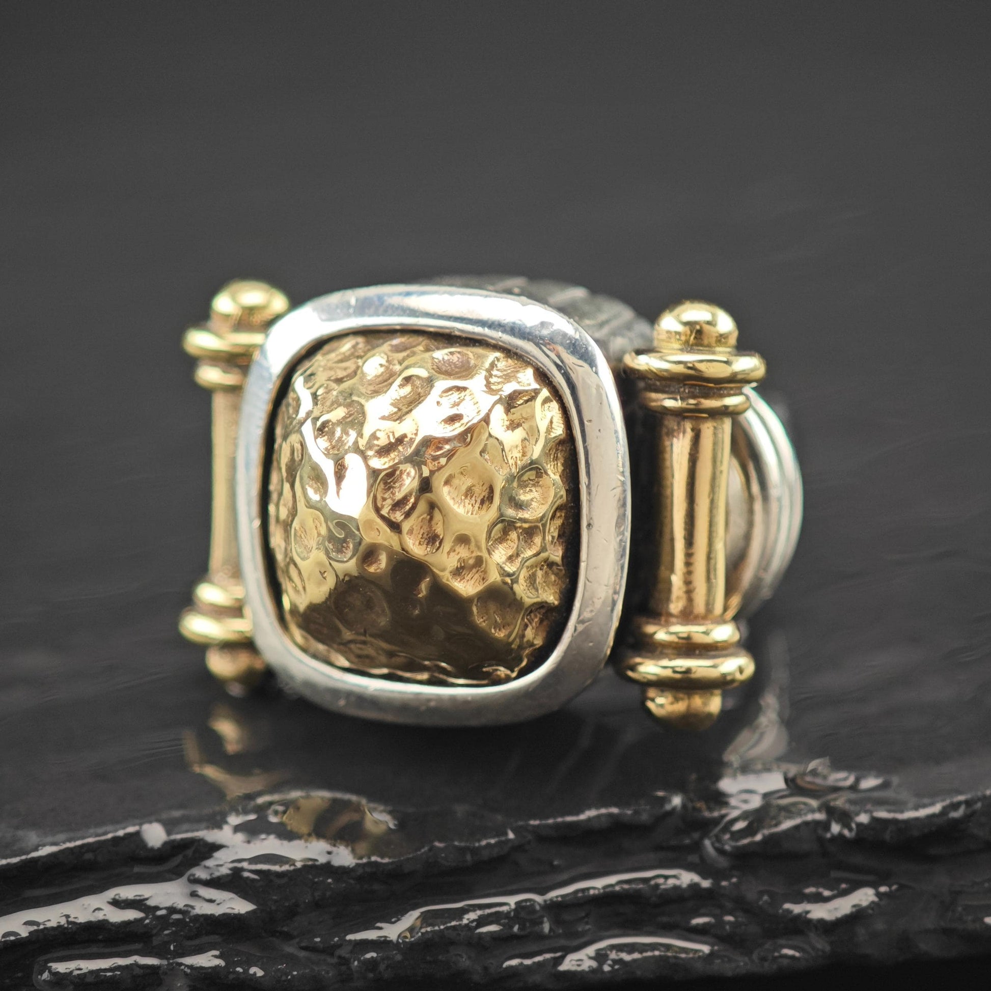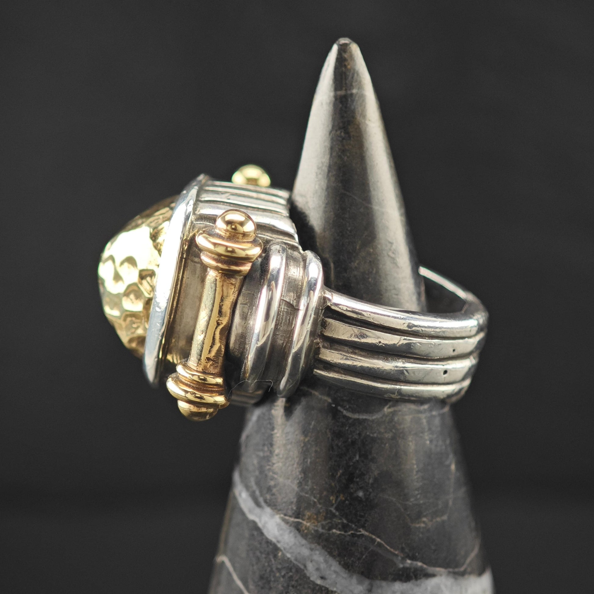Discover the exquisite Dian Malouf Dome Ring, featuring stunning 14K gold accents set in sterling silver. This elegant piece is stamped with DLM, Sterling, 14K, and carries a copyright, ensuring authenticity (tested and guaranteed as marked).